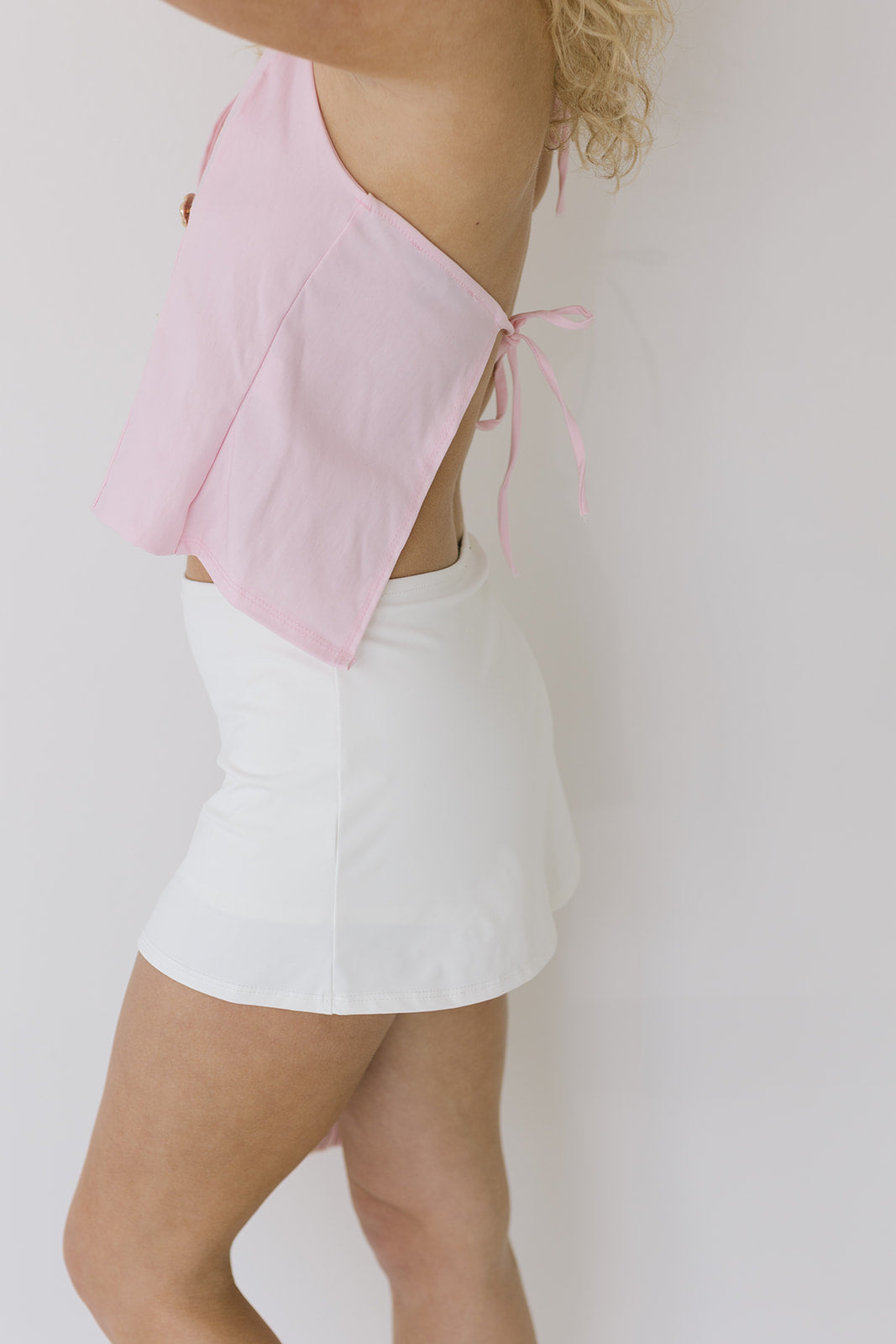 The Mae Micro Mini Skort in Ivory is the perfect combination of bold and flirty. With its mini length and low rise, this skort is designed to show off your curves while keeping you comfortable. Perfect for a night out or a casual day, this skort is a versatile addition to any wardrobe.