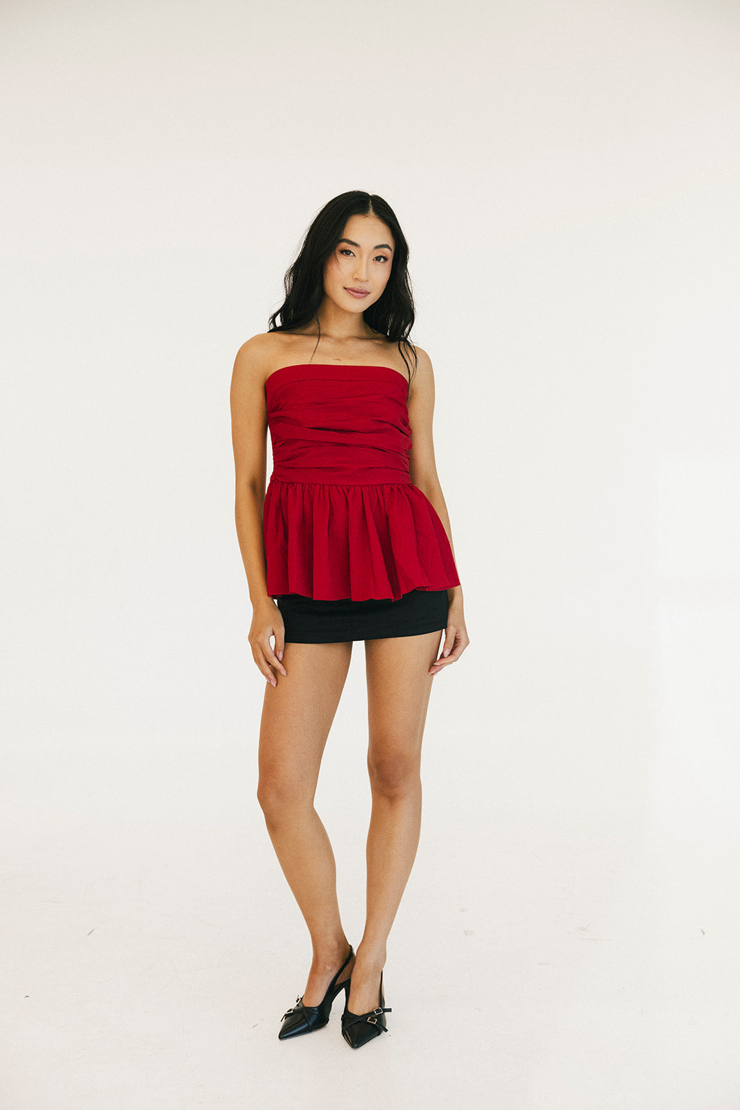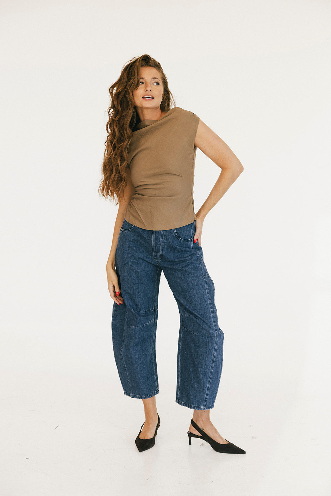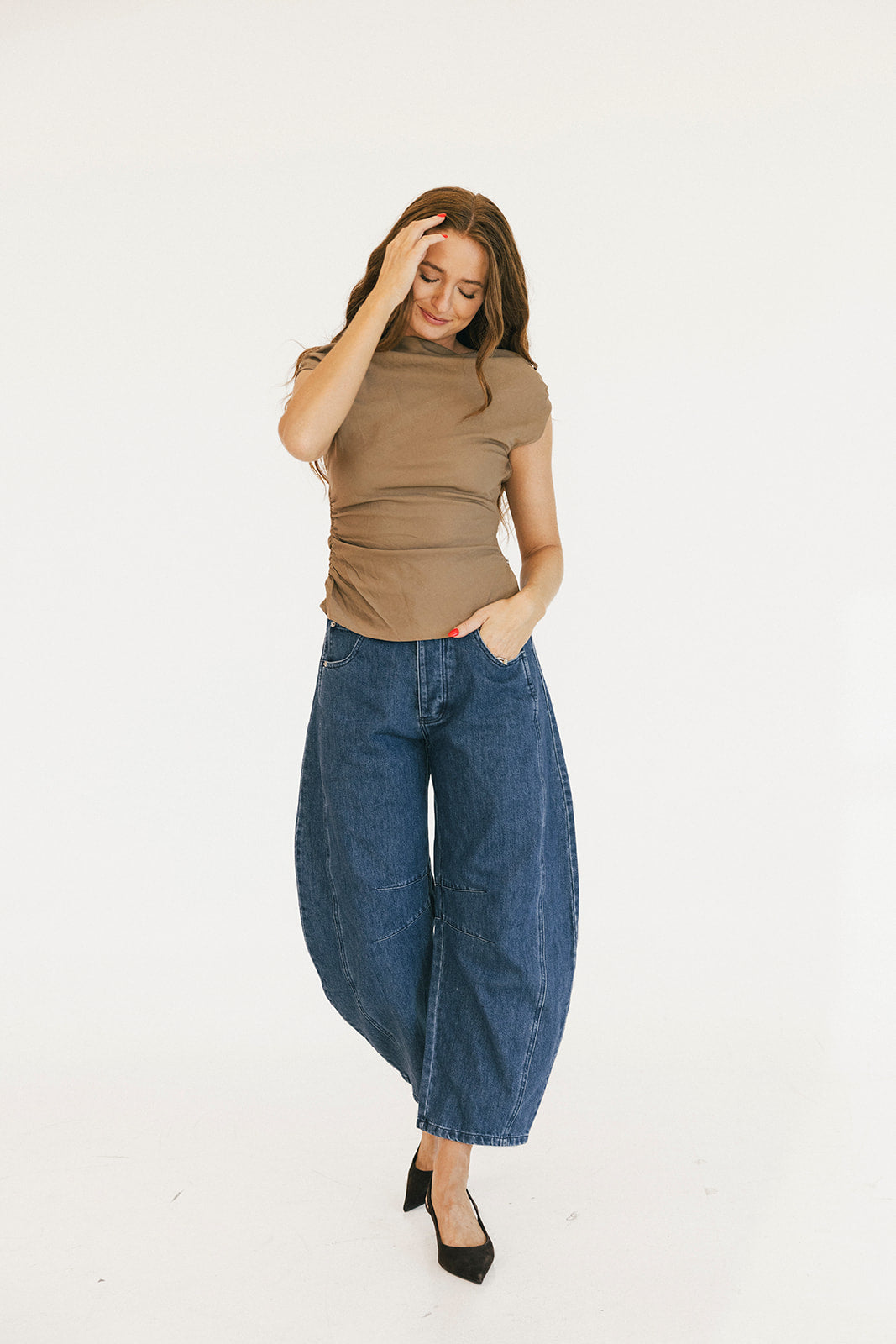 Madalyn Asymetrical Off Shoulder Ruched Top - Mocha