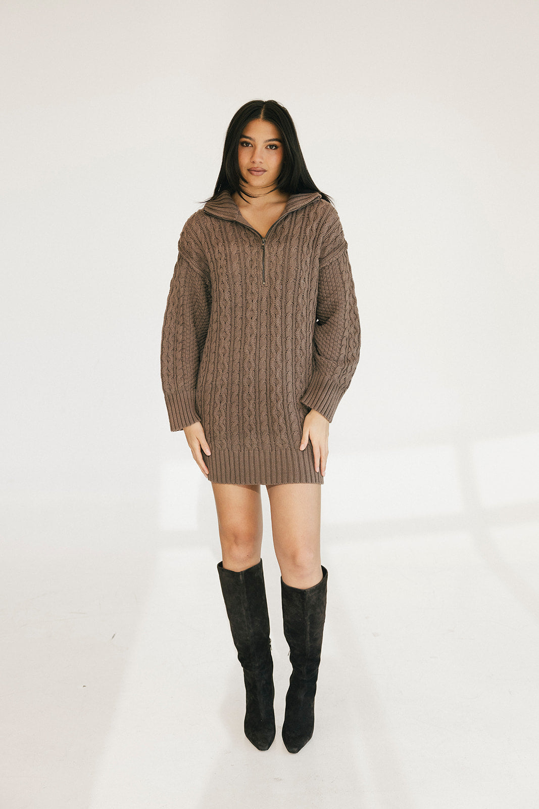 Cami Cable Knit Sweater Mini Dress - Espresso