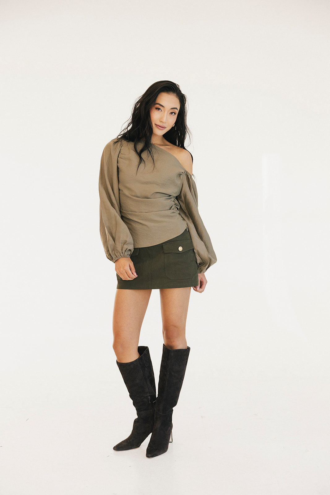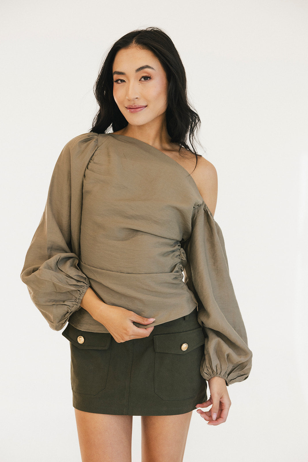 Lexi Asymetrical Off Shoulder Ruched Top - Black