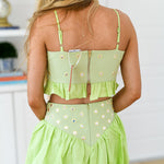 Introducing our Jasmine Skirt Set in olive with stunning mirrored details. This set is designed to make a statement and elevate your wardrobe. Experience the perfect blend of elegance and attitude with this must-have piece.