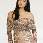 Mckayle Off The Shoulder Maxi Dress - Taupe Animal