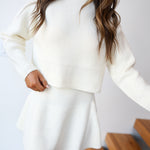The Stormie Knitted Sweater and Skirt Set in cream offers cozy comfort with a stylish silhouette. Its long sleeve sweater provides warmth and softness, while the coordinating flare skirt adds a flattering shape that moves with you. Perfect for cooler days, this set blends effortless style with easy wear, making it a versatile addition to your wardrobe.