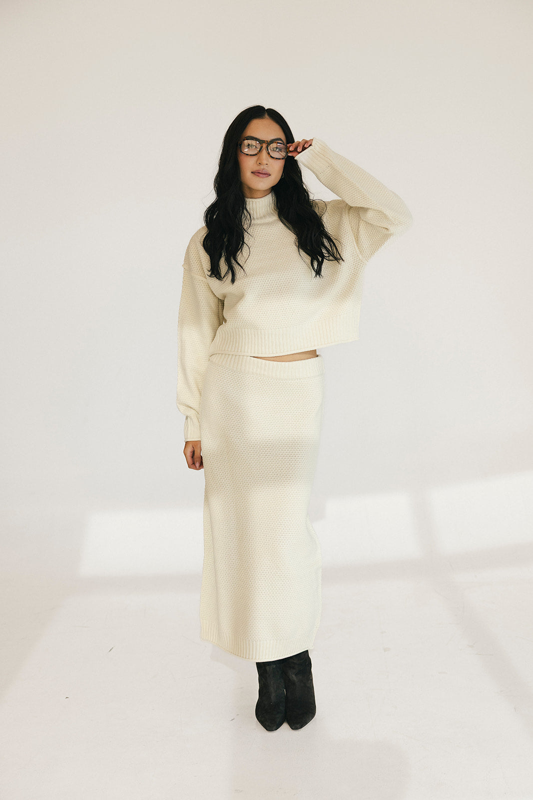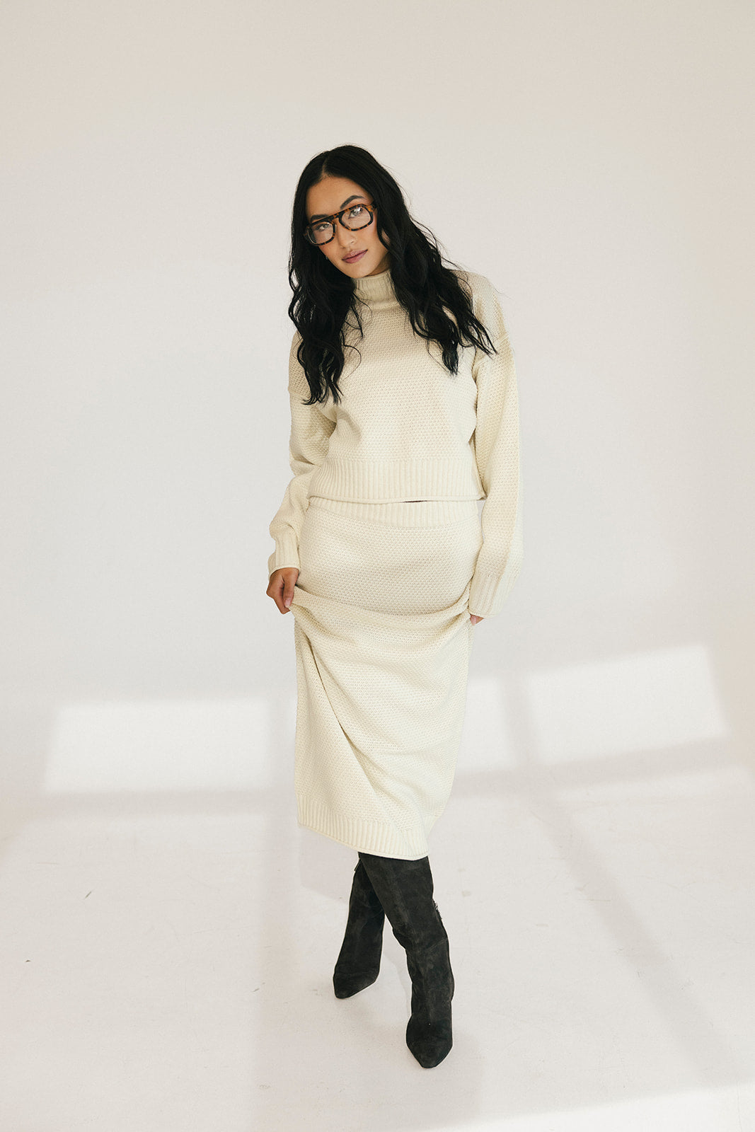 Lainey High Neck Sweater Skirt Set - Cream