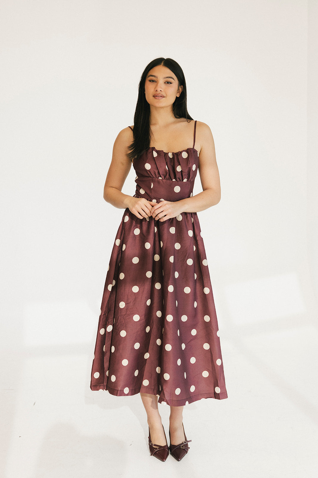 Marah Polka Dot Midi Dress - Burgundy