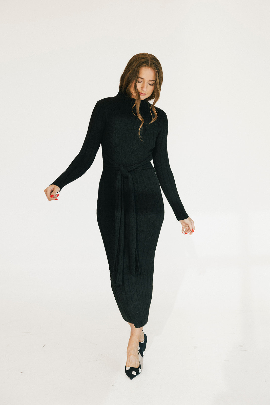 Brittany Polka Dot Midi Dress - Black