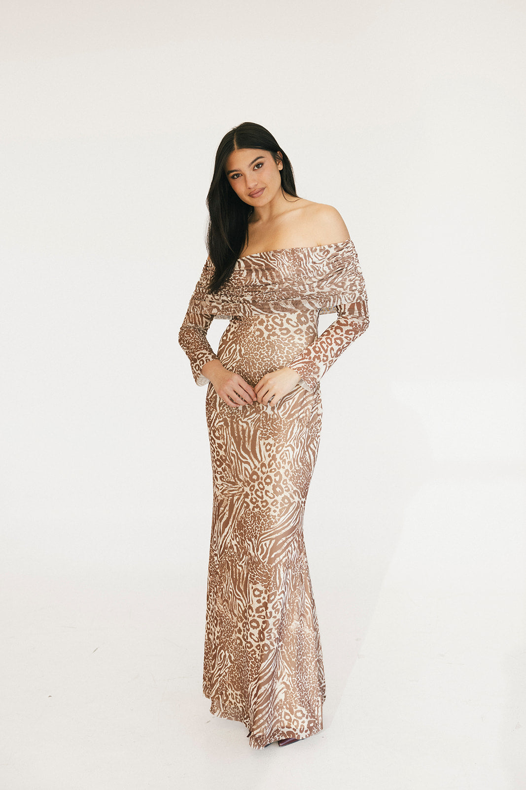 Mckayle Off The Shoulder Maxi Dress - Taupe Animal