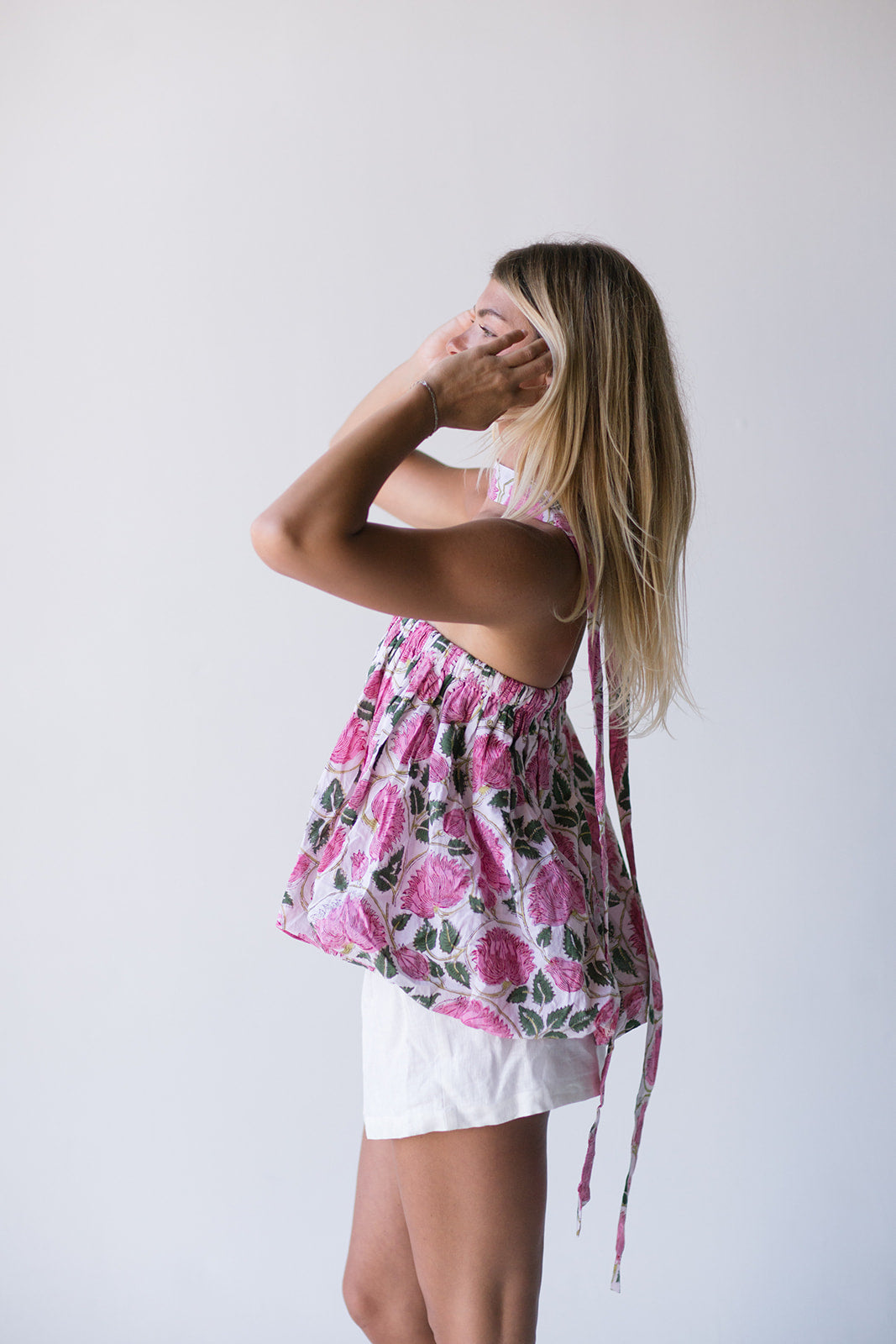Aislinn Smocked Mini Dress - White/Pink Floral