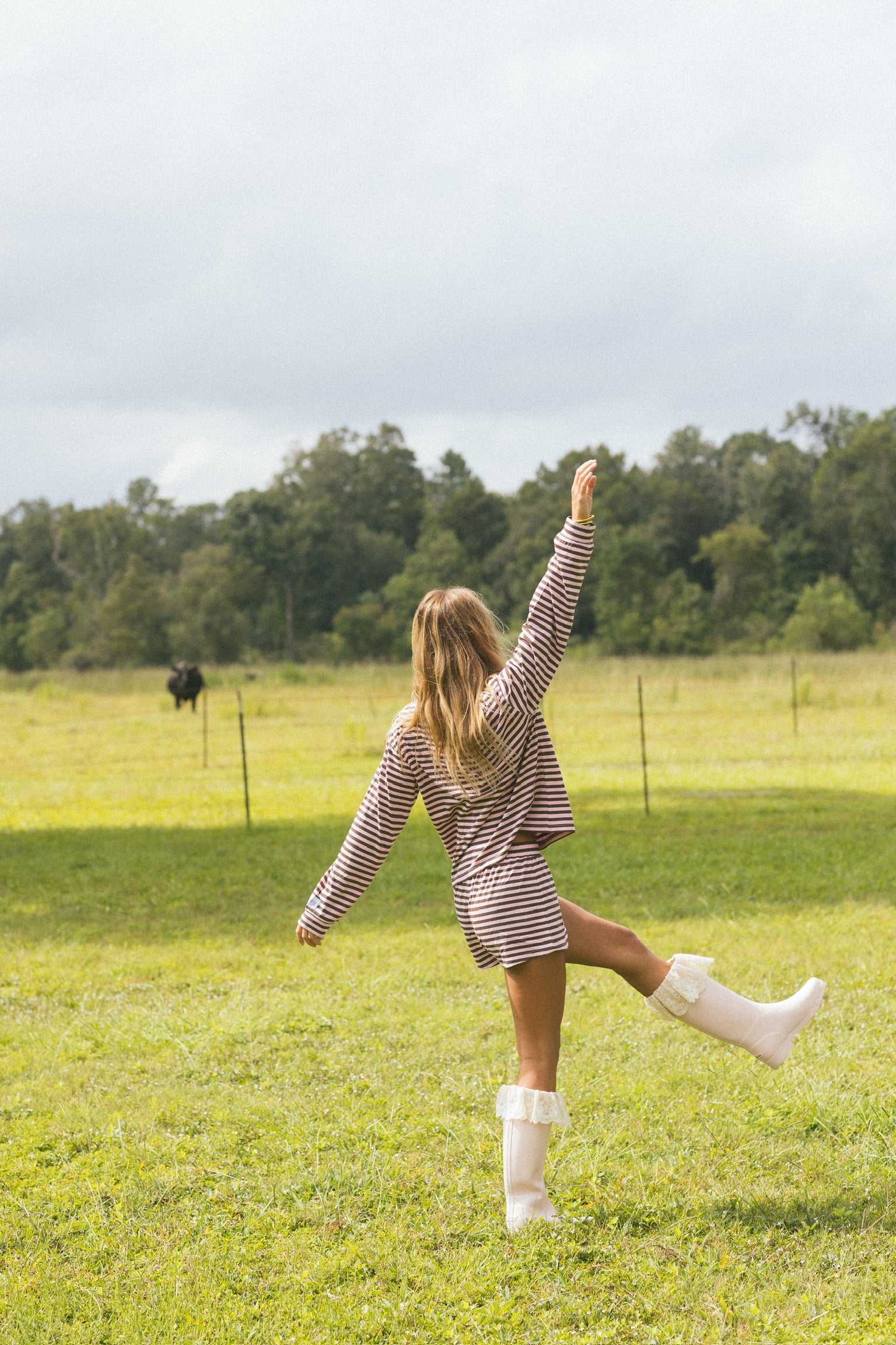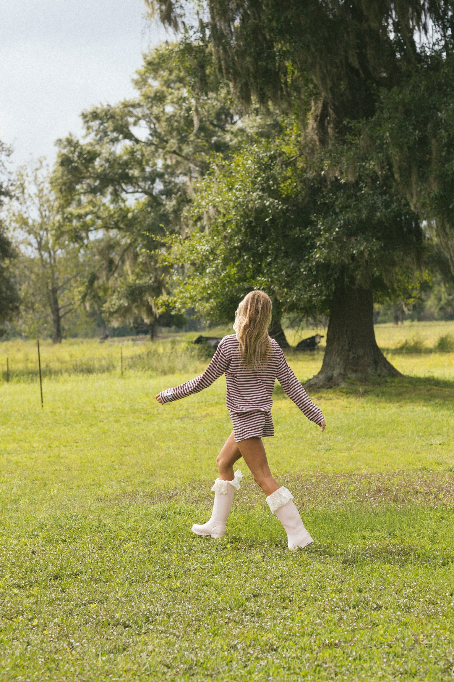 These striped shorts bring all the fall vibes with seasonal tones and a comfy, relaxed fit. Designed to pair perfectly with our matching top, they’re your new favorite for laid-back days and cozy moments.