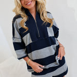 Riley Striped Zip Up Oversized Set - Navy Combo
