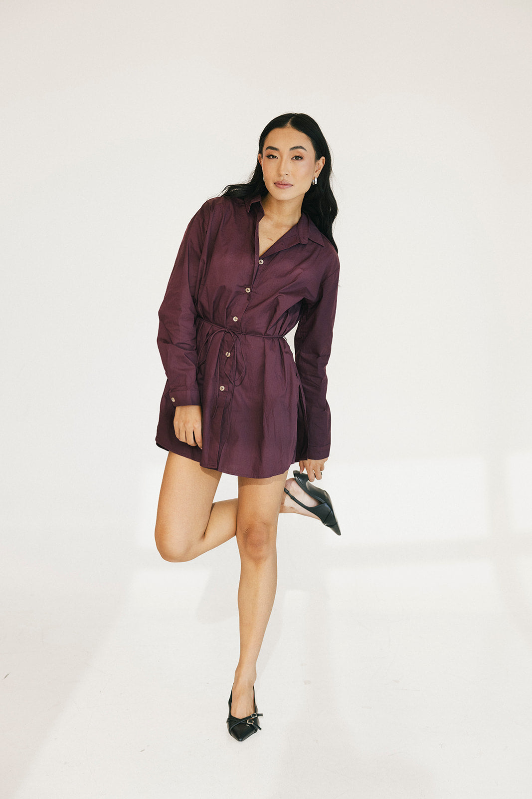 Callie Button Down Romper - Burgundy