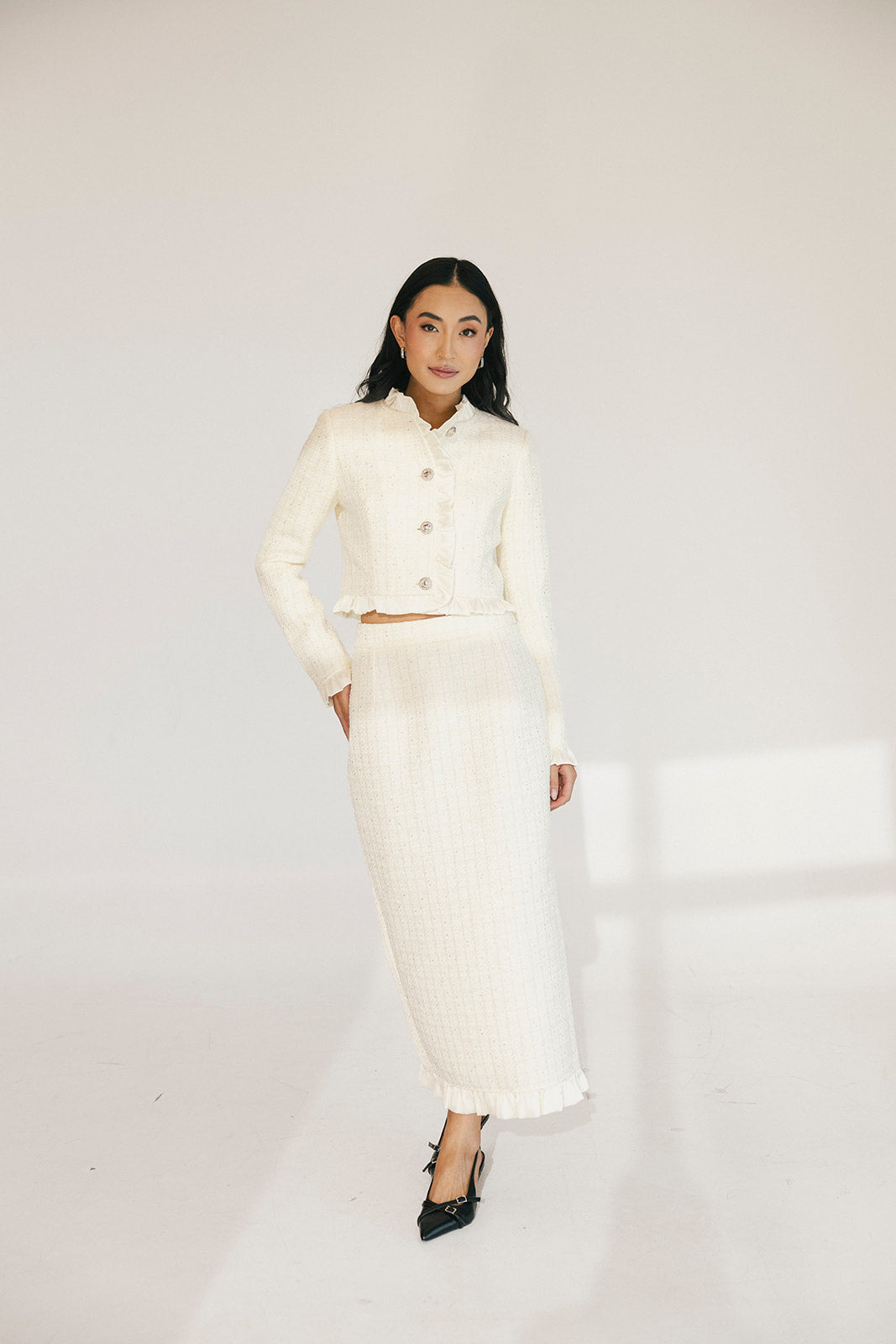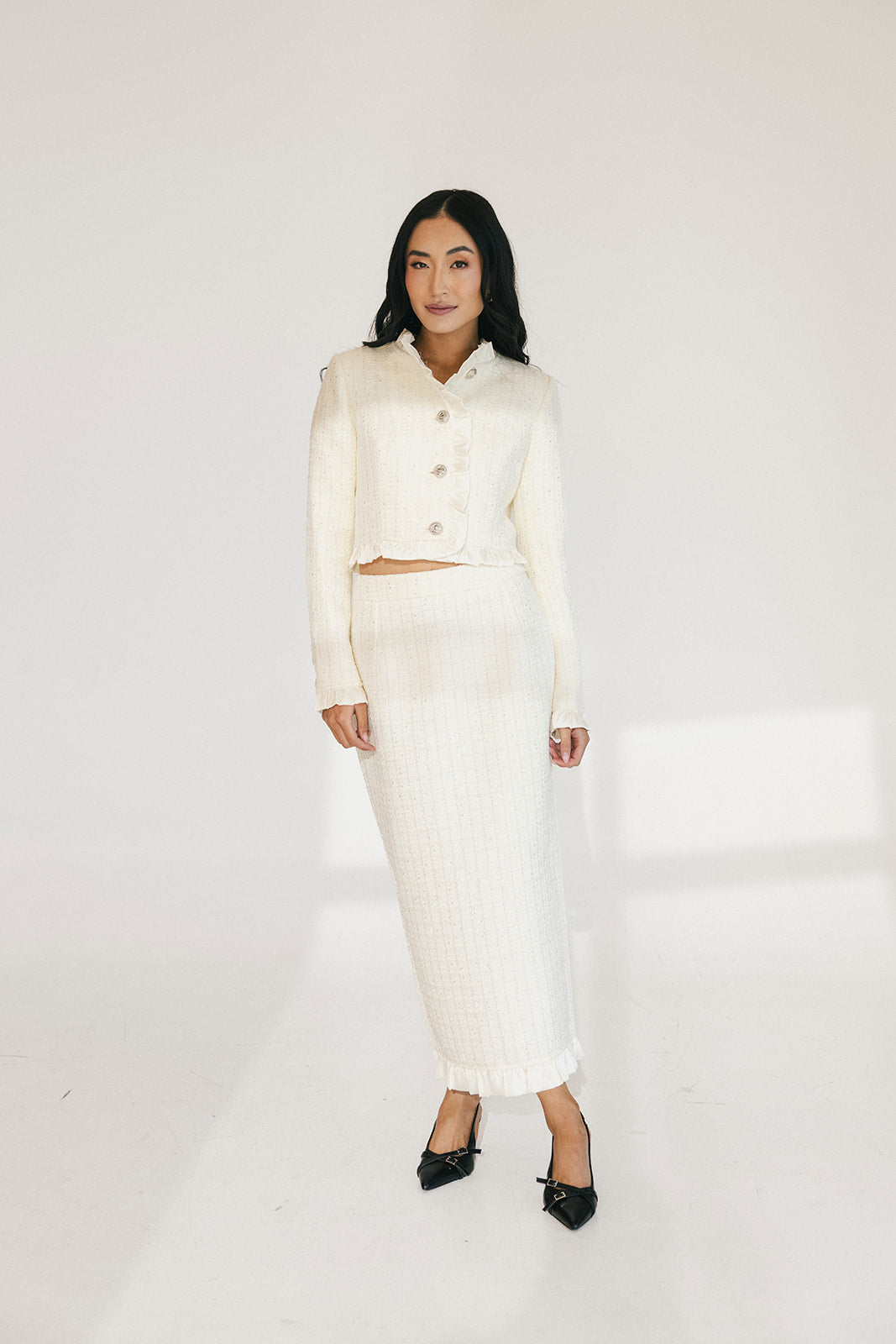 Chloe Tweed Skirt Set - Cream
