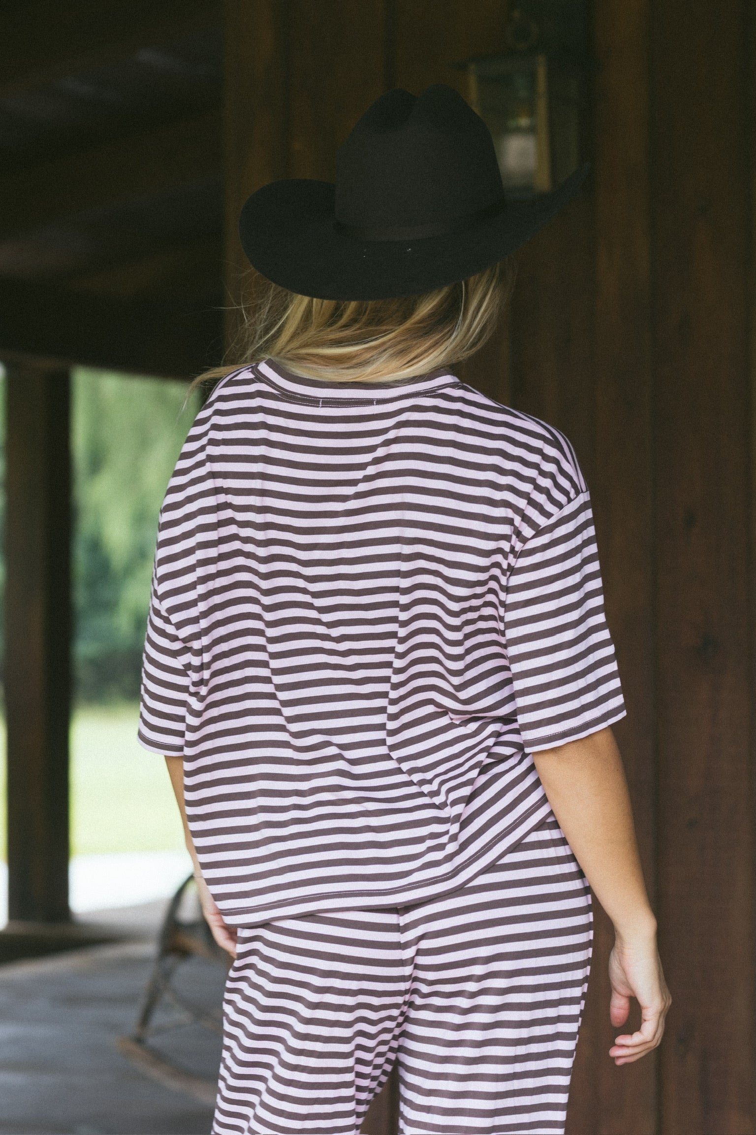This short sleeve striped top features warm fall tones and a oversized fit, making it an easy go-to for the season. Pair it with our matching pants or shorts for a cozy, coordinated look you’ll wear on repeat.