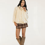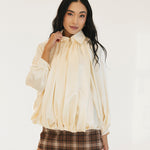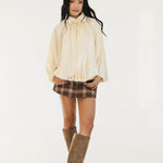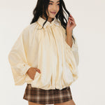 Bev Solid Puffed Bomber Loose Jacket - Beige