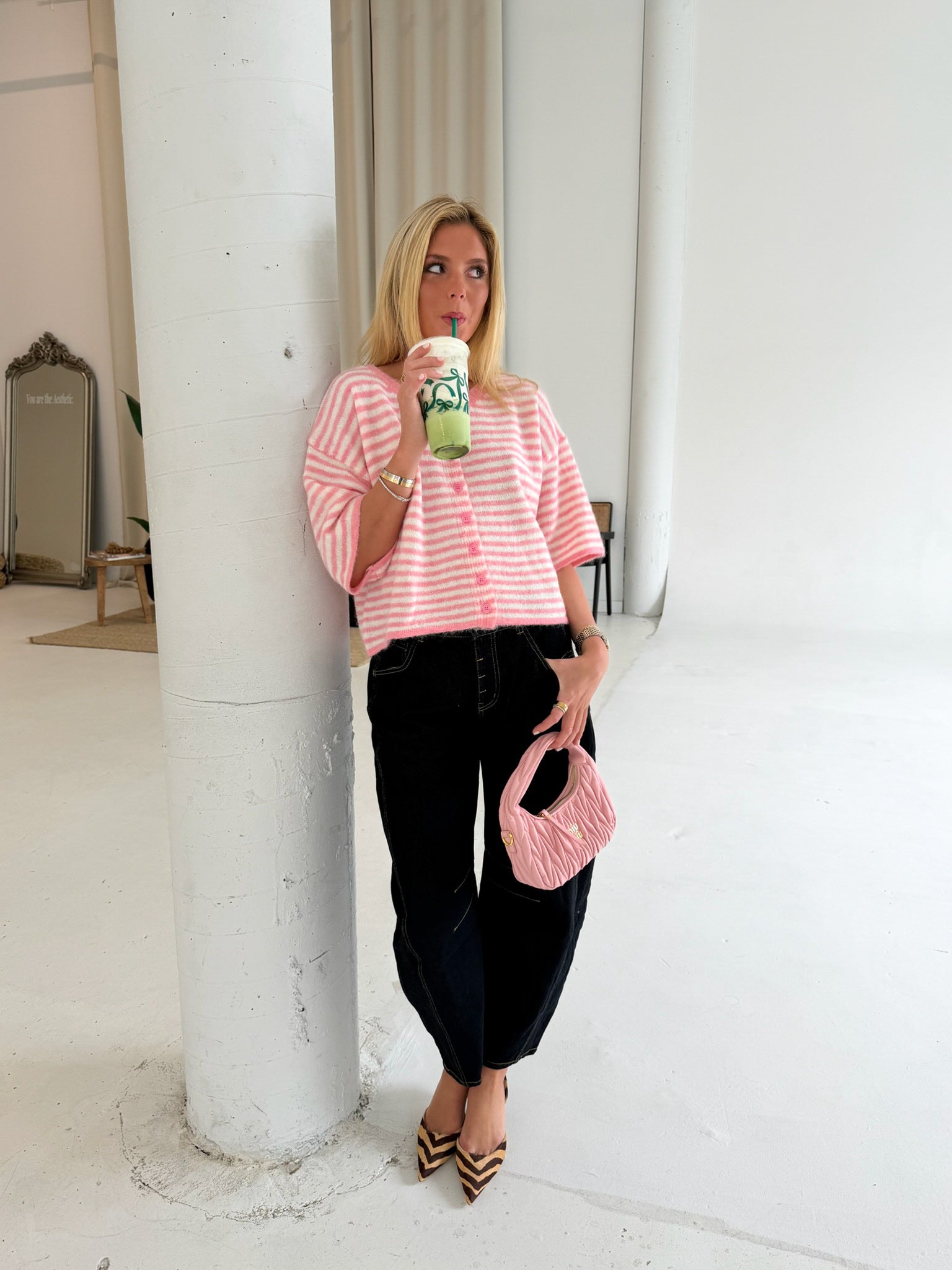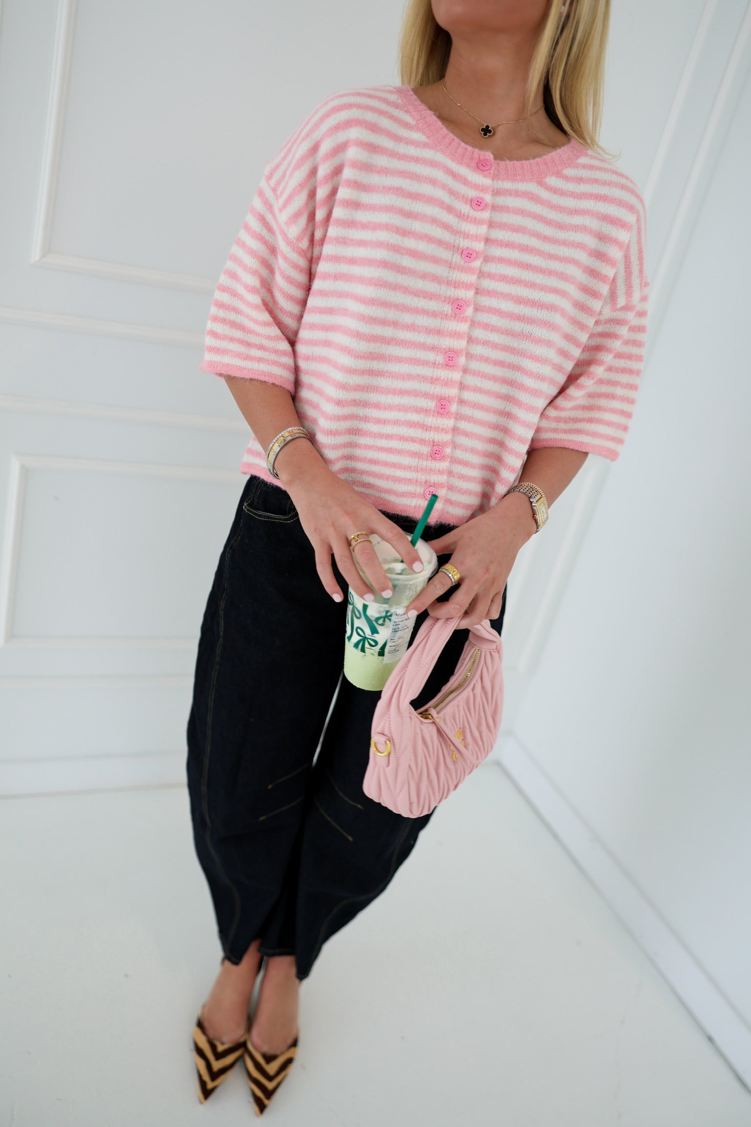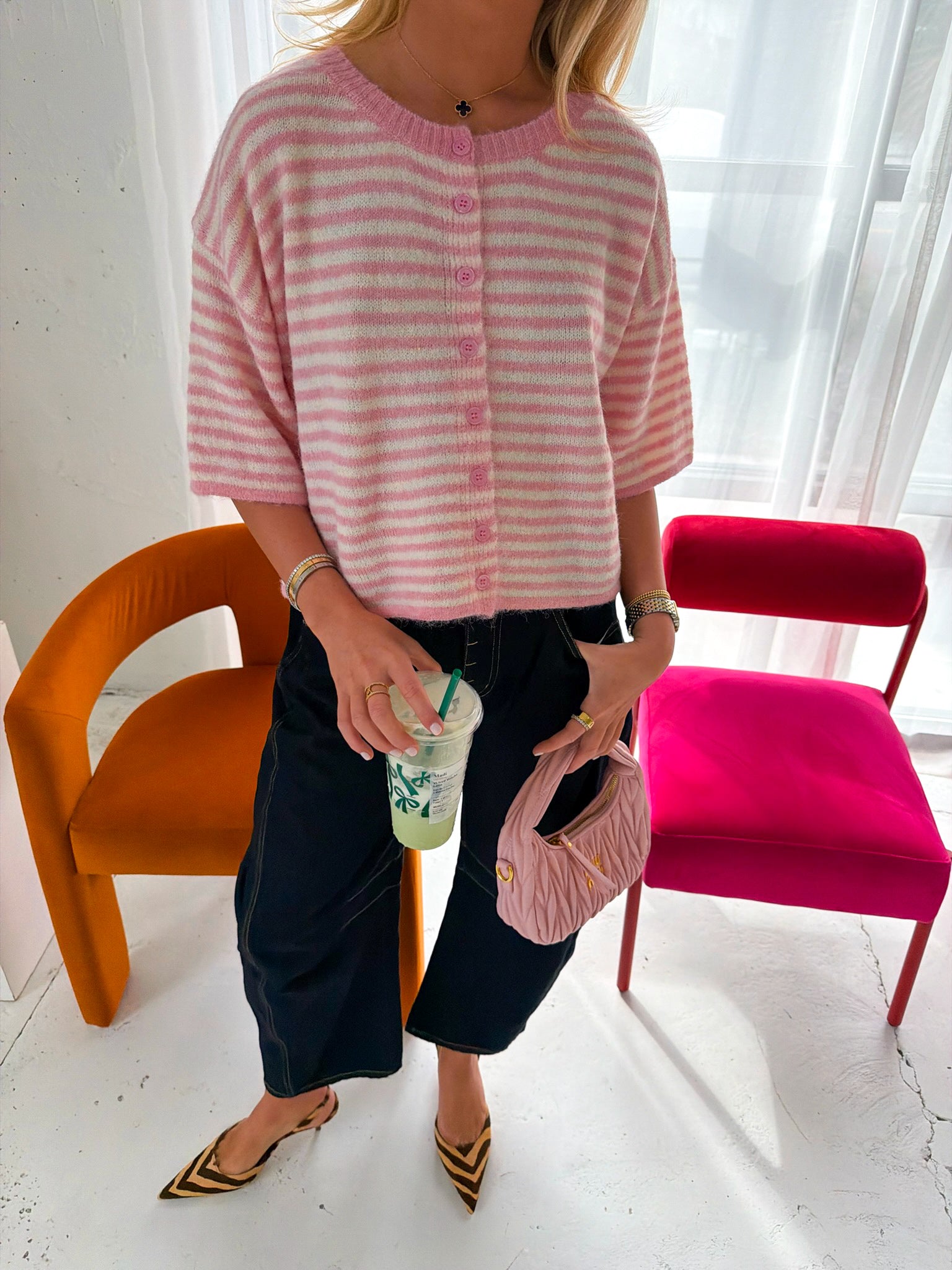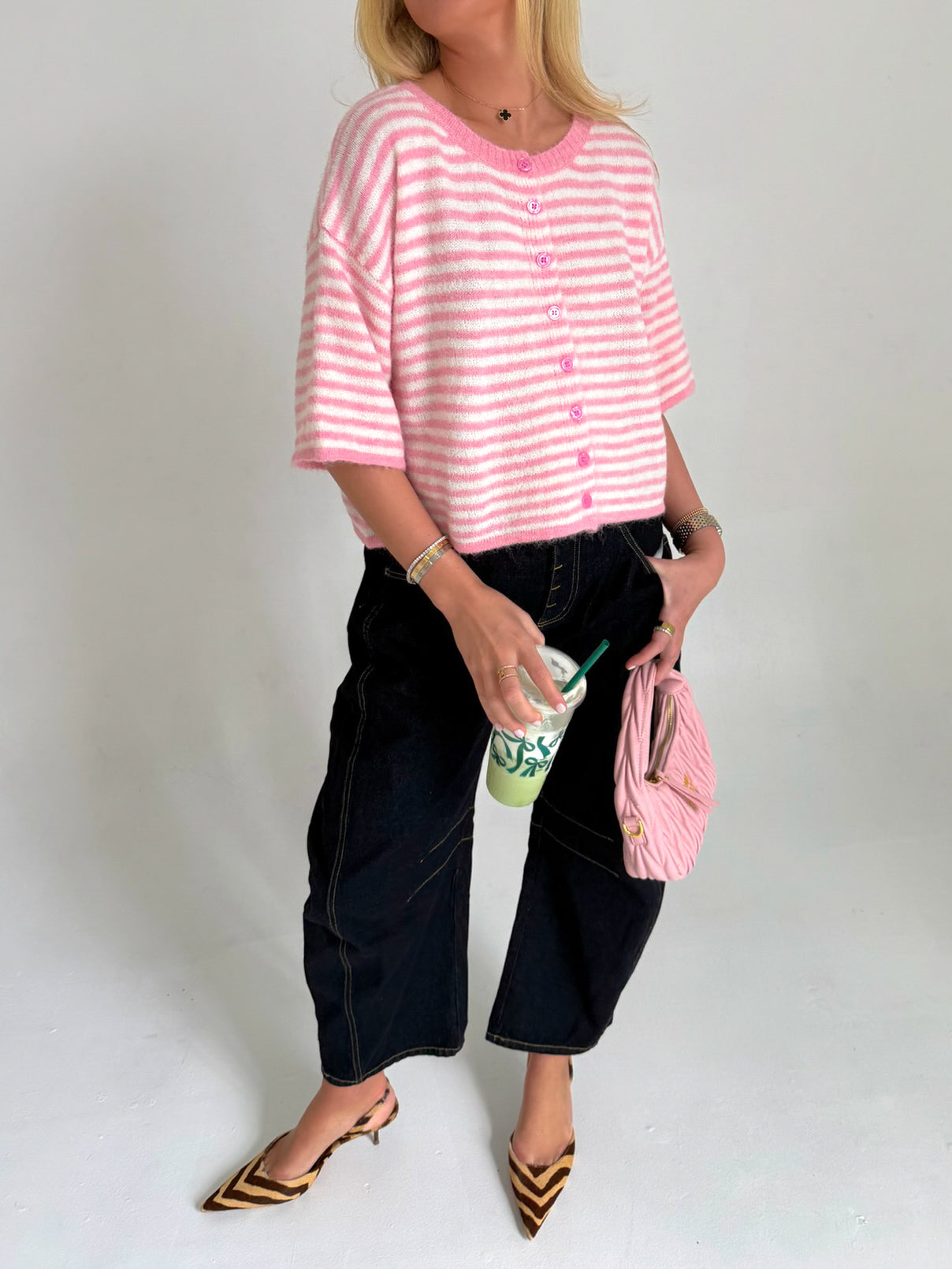 Courtney Knit Cardigan - Pink/Ivory