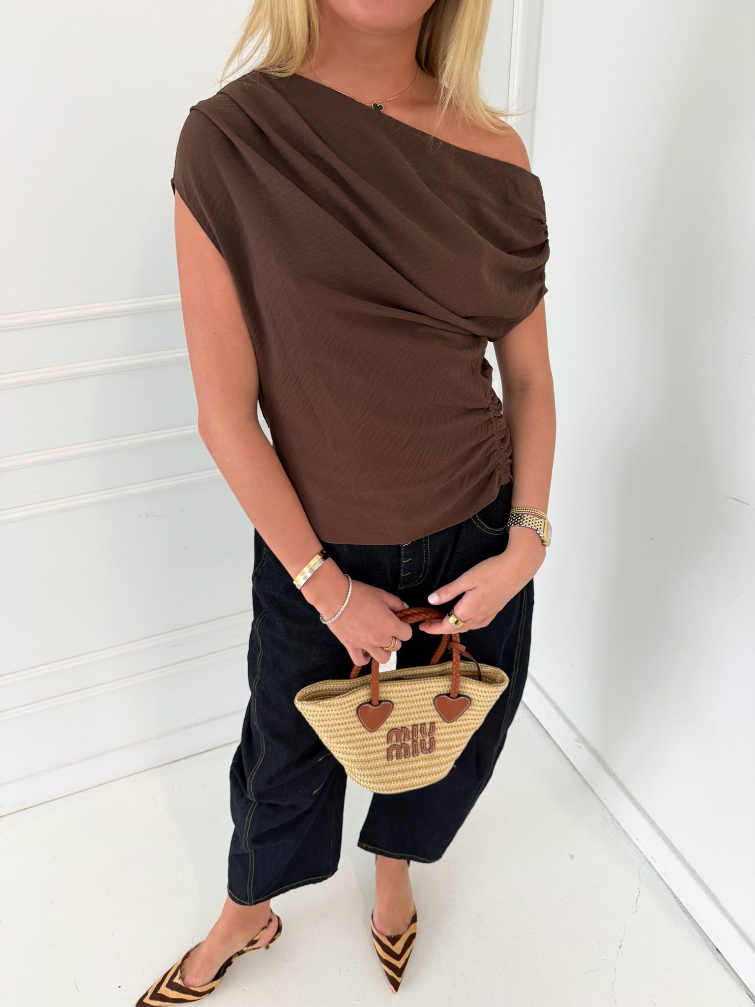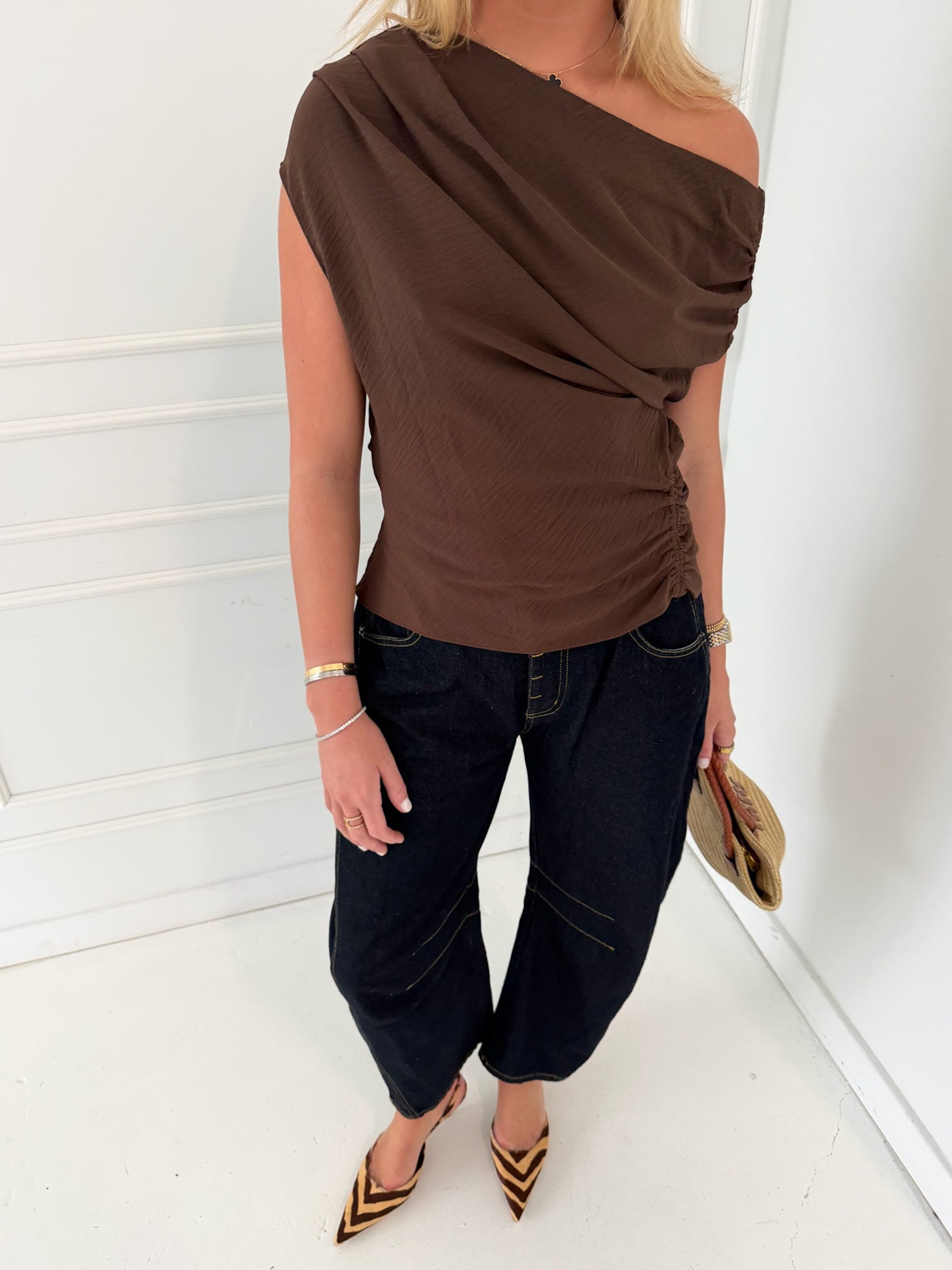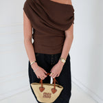 Ella Asymmetric One Shoulder Draped Top - Chocolate Brown