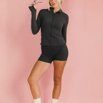 Elevate your workout wardrobe with the Fancy Fit Flow Front Zip Jacket. This versatile layer is the perfect companion to your athletic set, offering effortless style and functionality. Crafted with breathable fabric, it keeps you comfortable whether you're heading to the gym, running errands, or relaxing at home. The convenient front zip allows for easy temperature control, making it ideal for layering through every season. Supportive comfort meets contemporary design in this essential piece.
