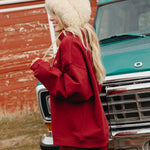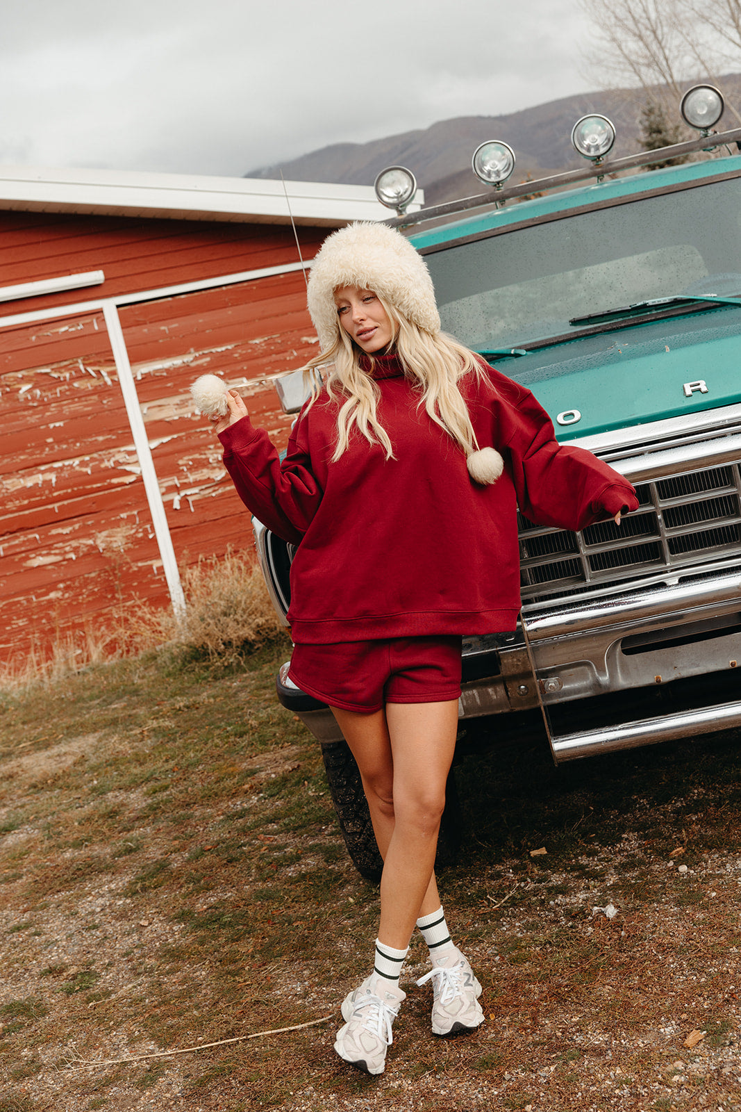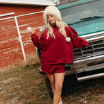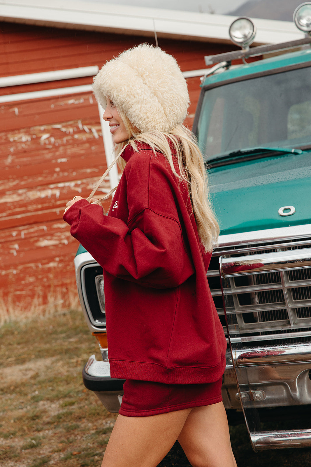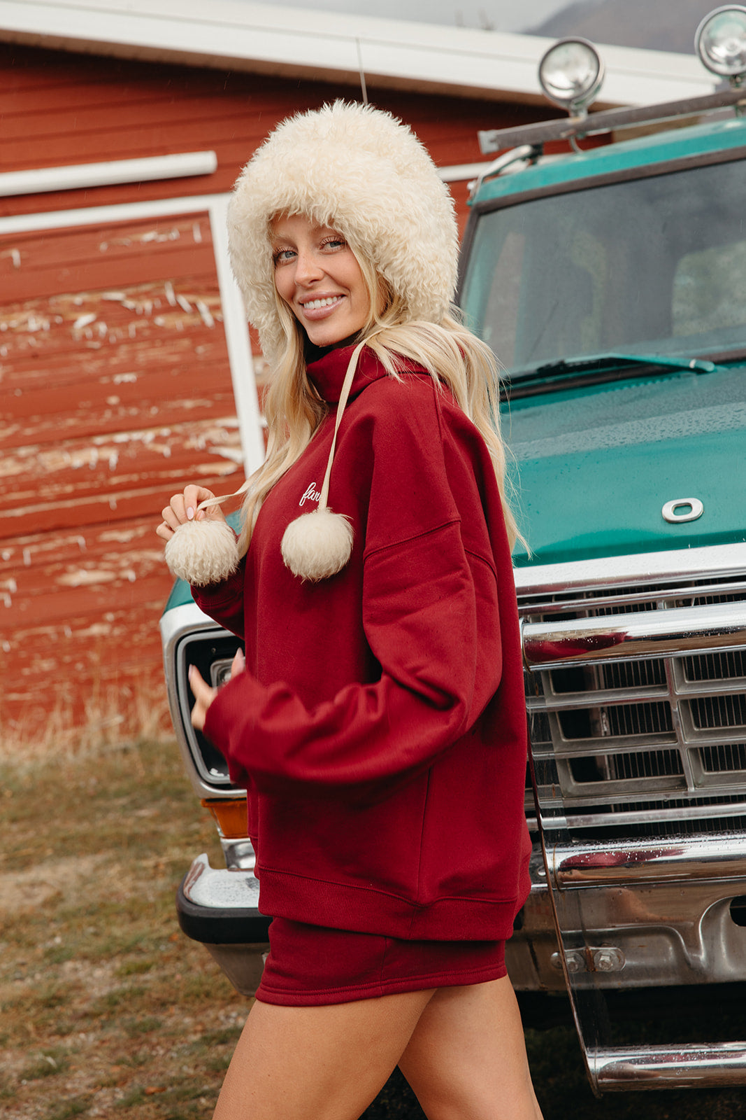 Fancy Oversized Fleece Embroidered Rolled Neck - Rich Burgundy