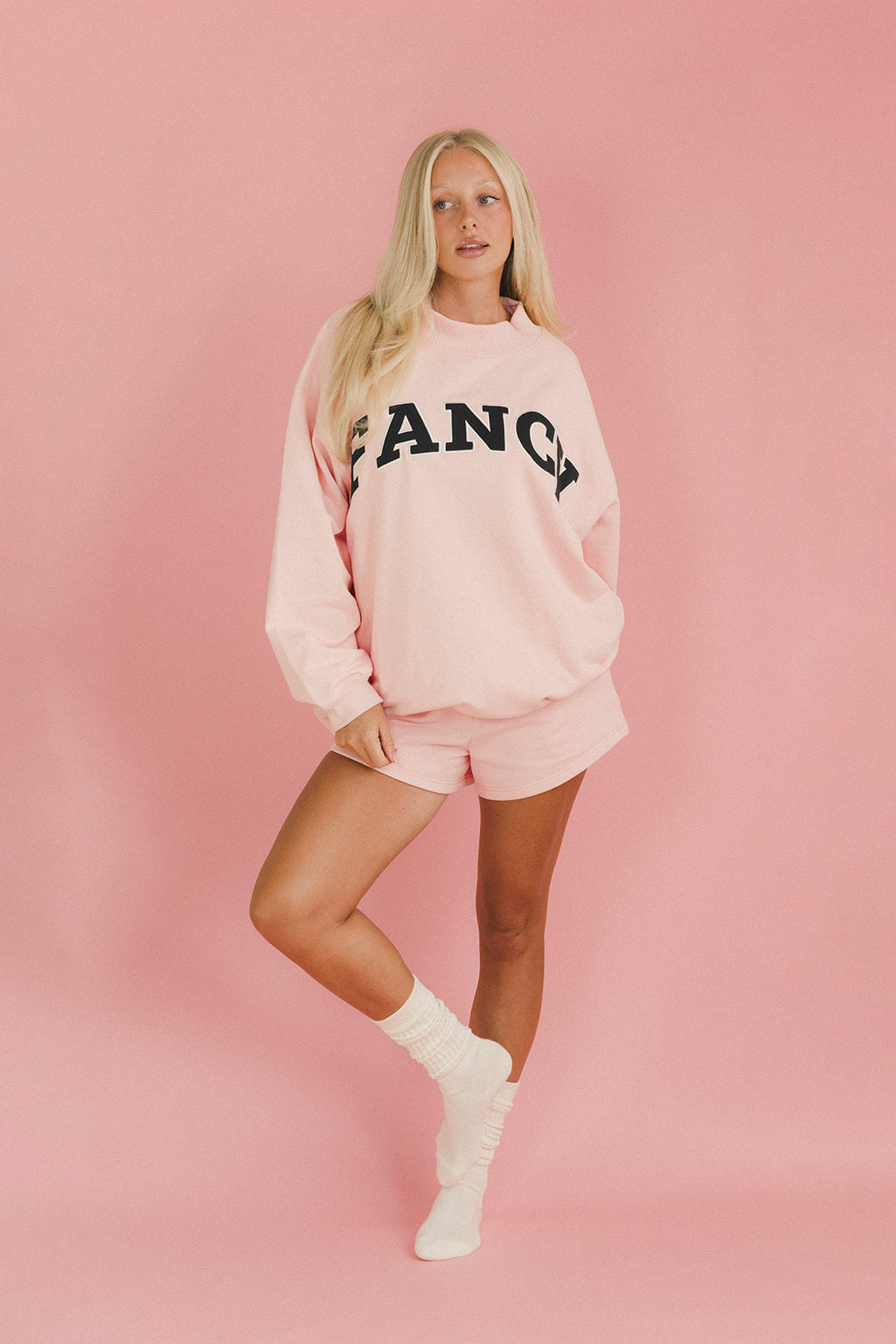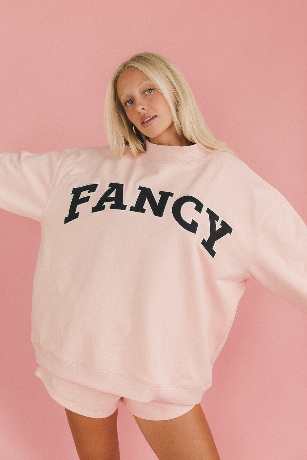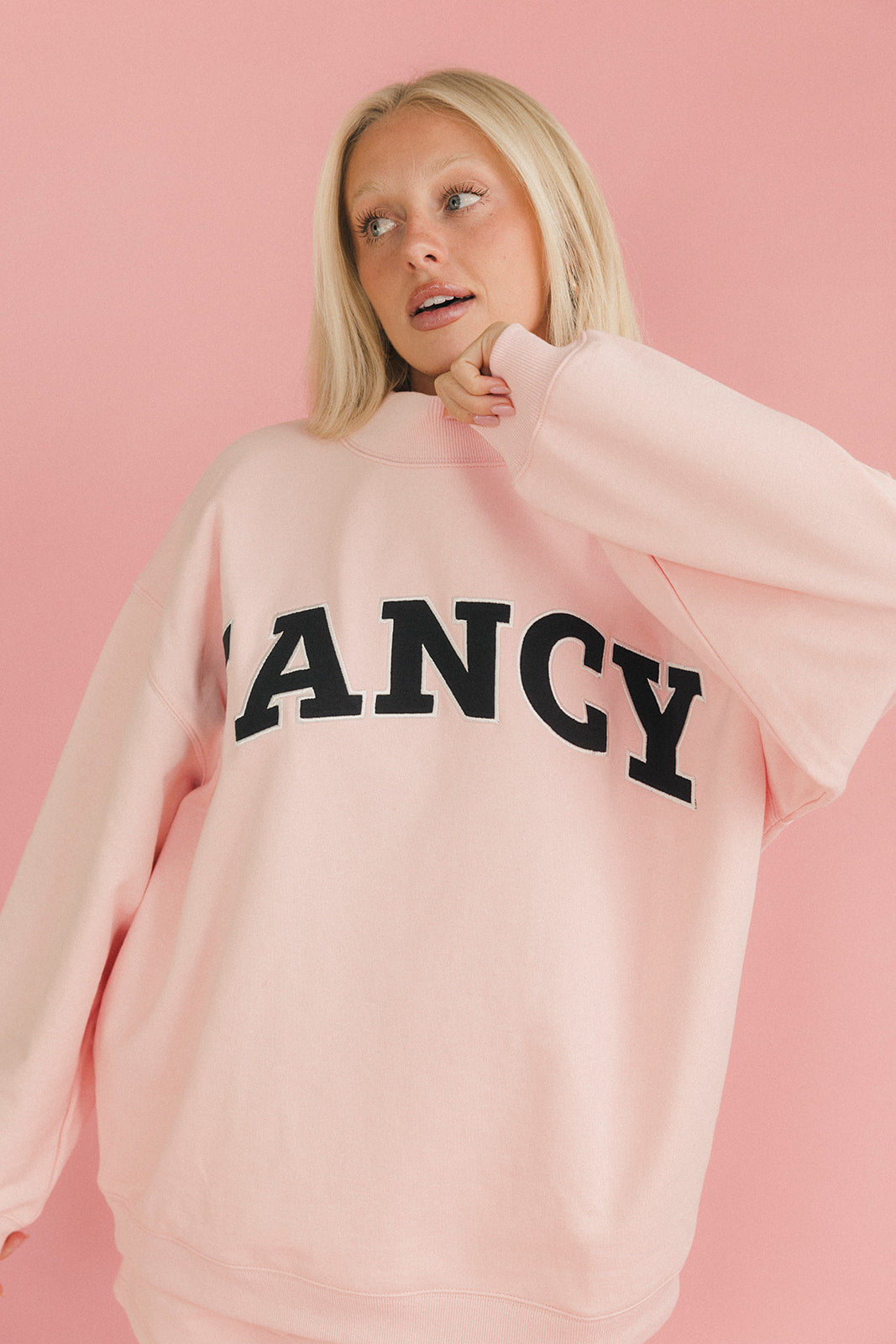 Fancy Oversized Fleece Mockneck - Blush Pink
