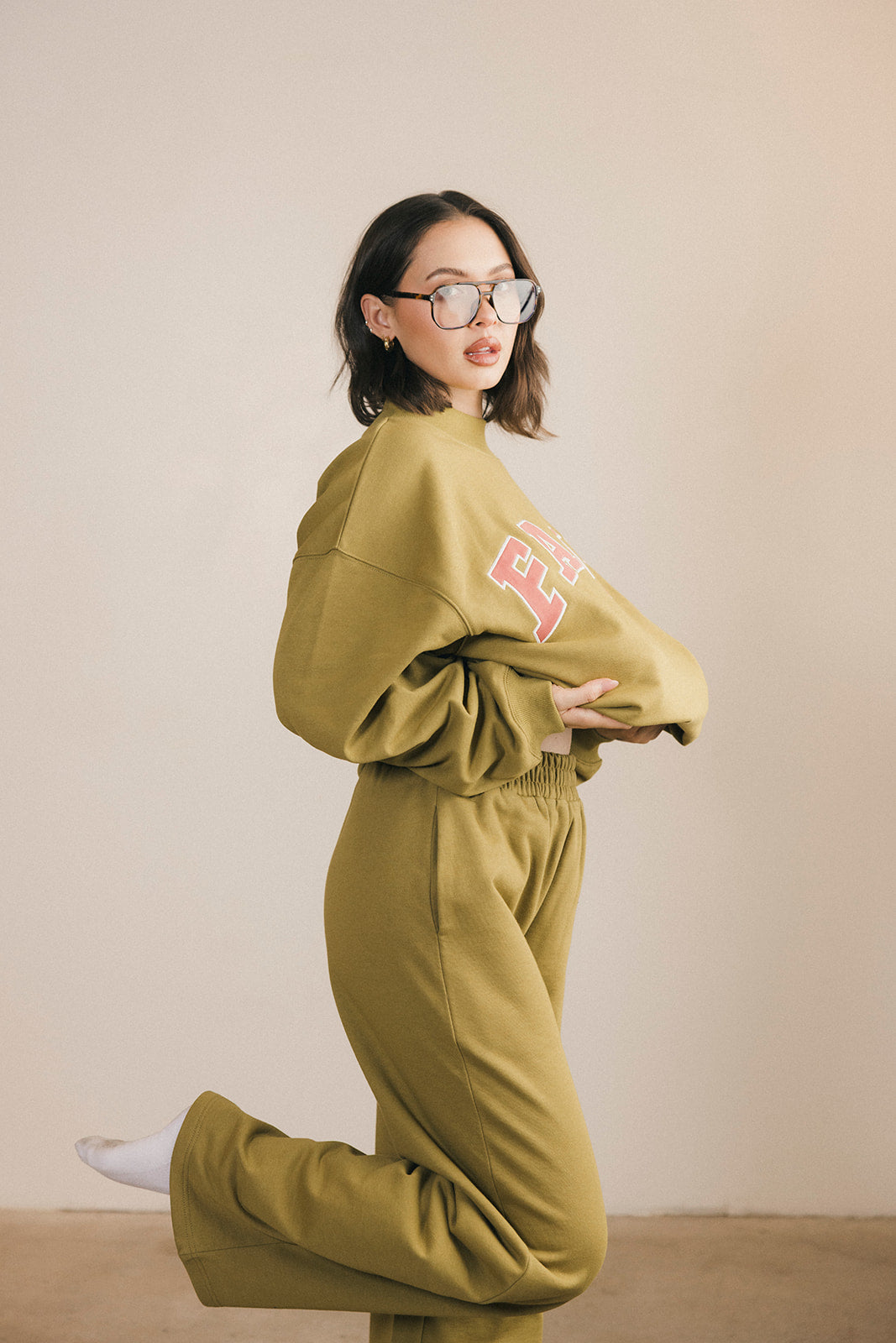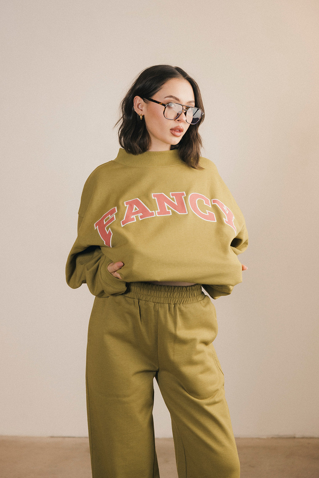 Fancy Oversized Fleece Mockneck - Green Matcha