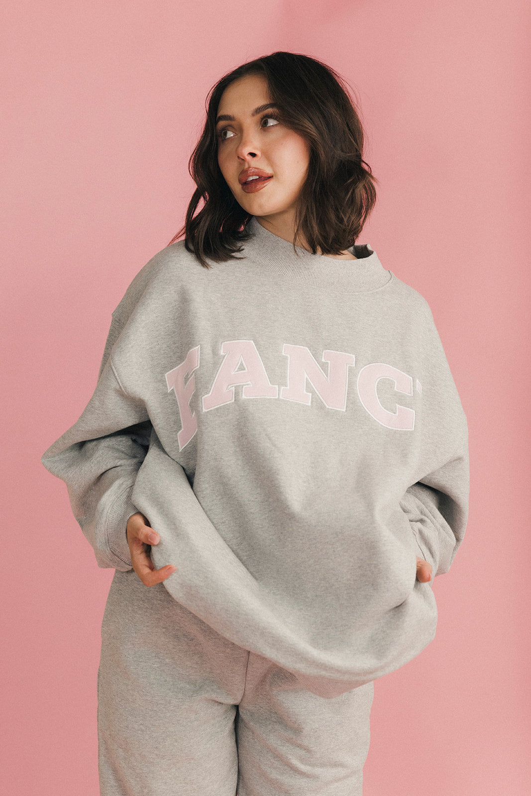 Fancy Oversized Fleece Mockneck - Light Grey Heather