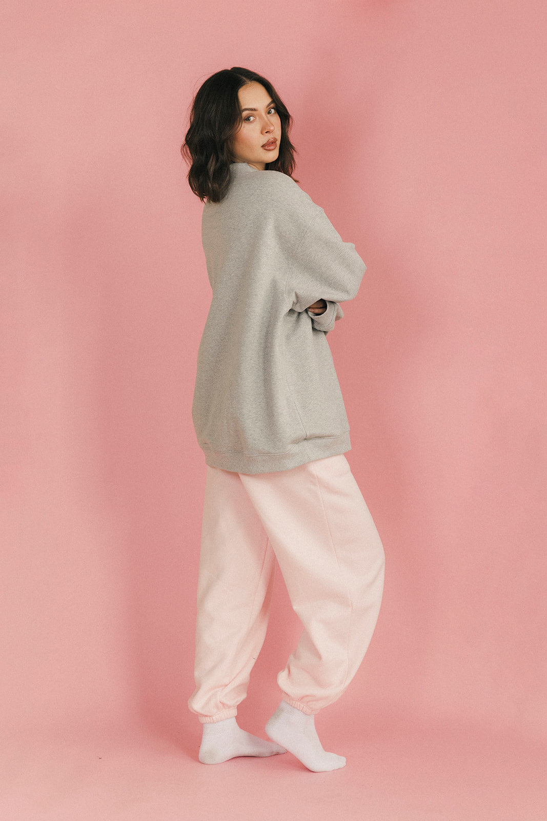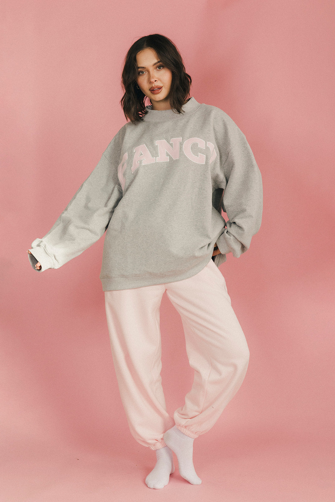 This fleece lined mock neck features an oversized fit for a relaxed, cozy vibe. Crafted with soft, lightweight fleece, it's perfect for lounging, study days, or casual coffee runs, ideal for easing into colder weather.