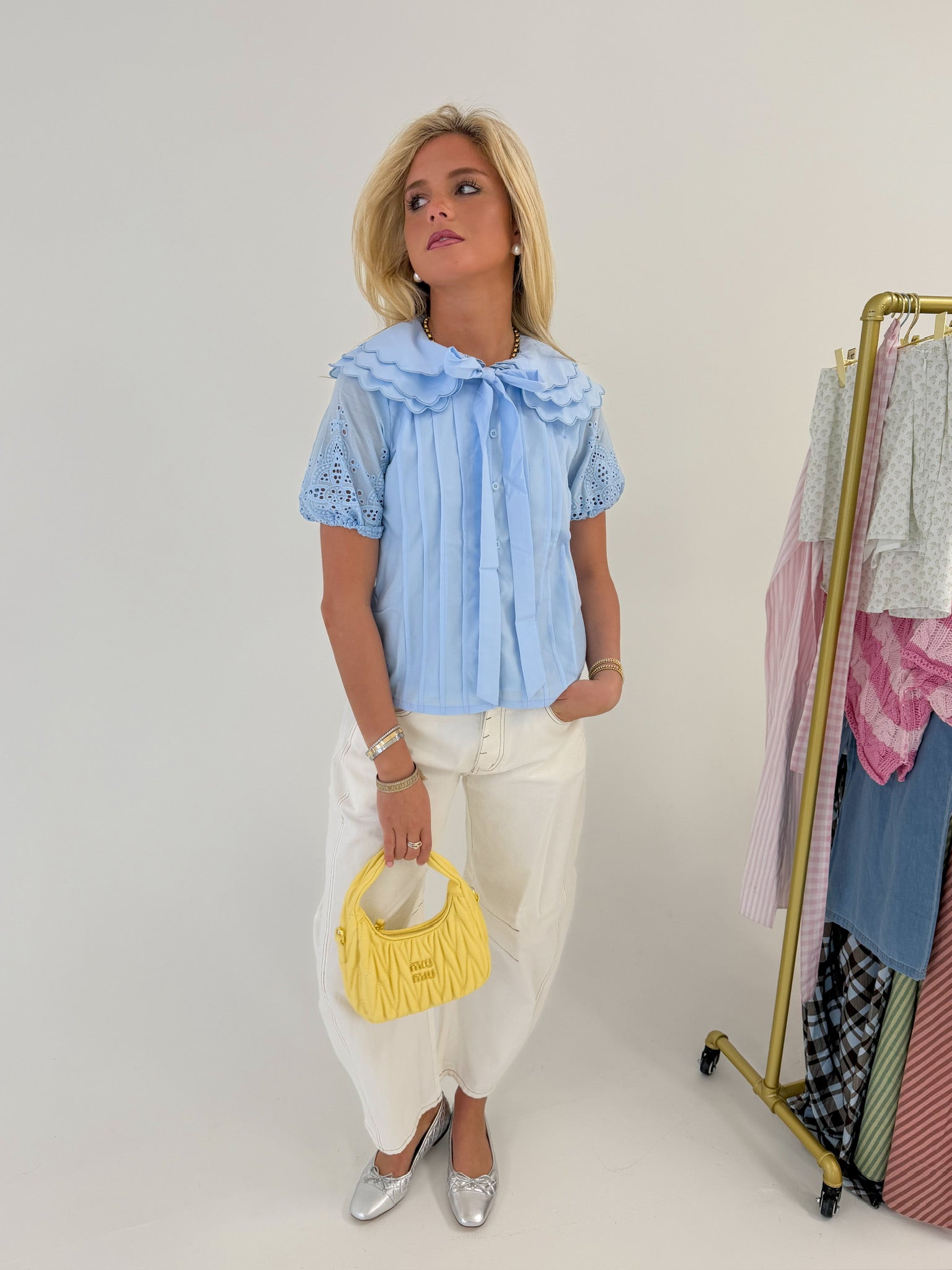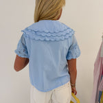 Mallory Collar Button Down Top - Baby Blue
