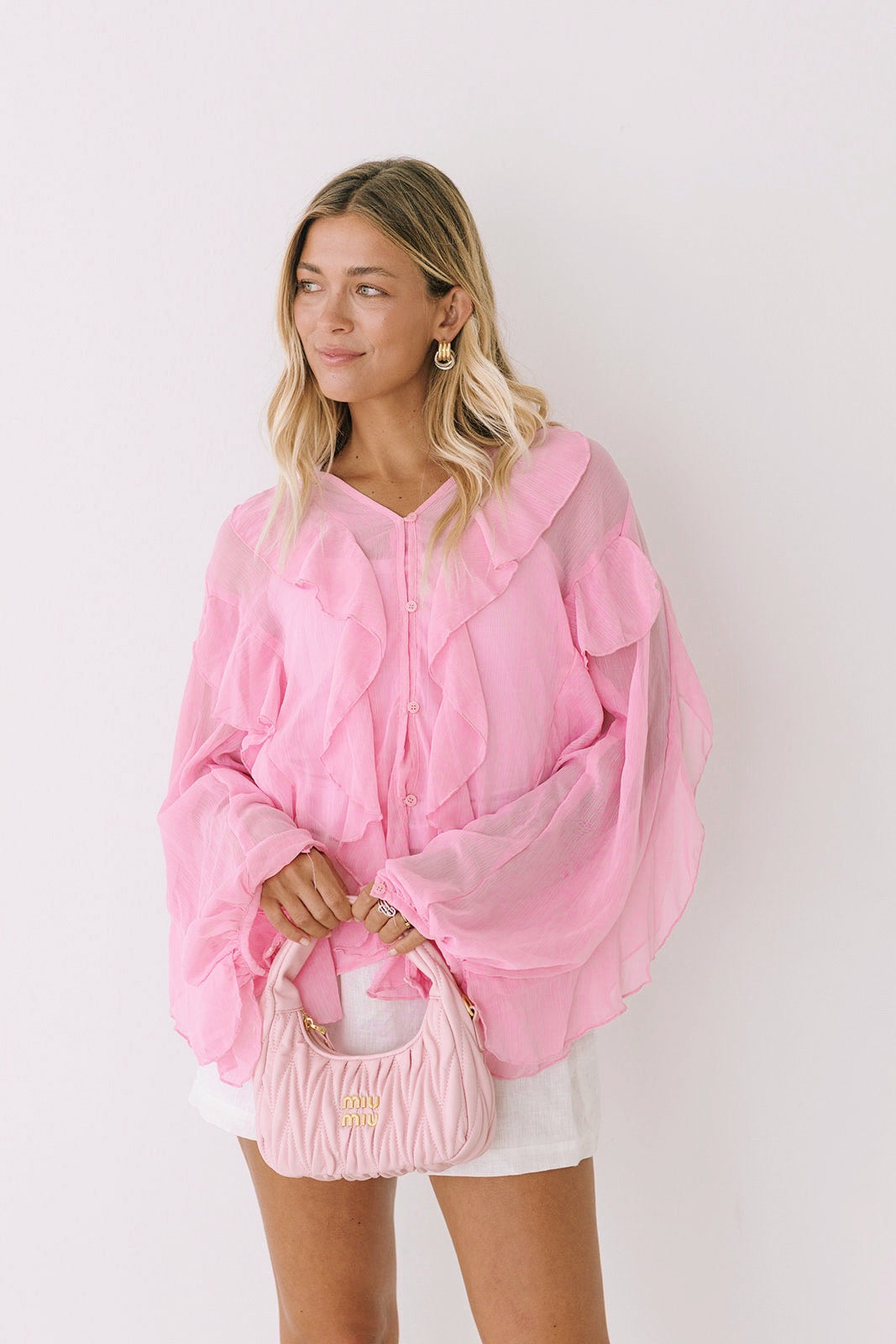 Lowen Long Sleeve Ruffle Top -Light Pink