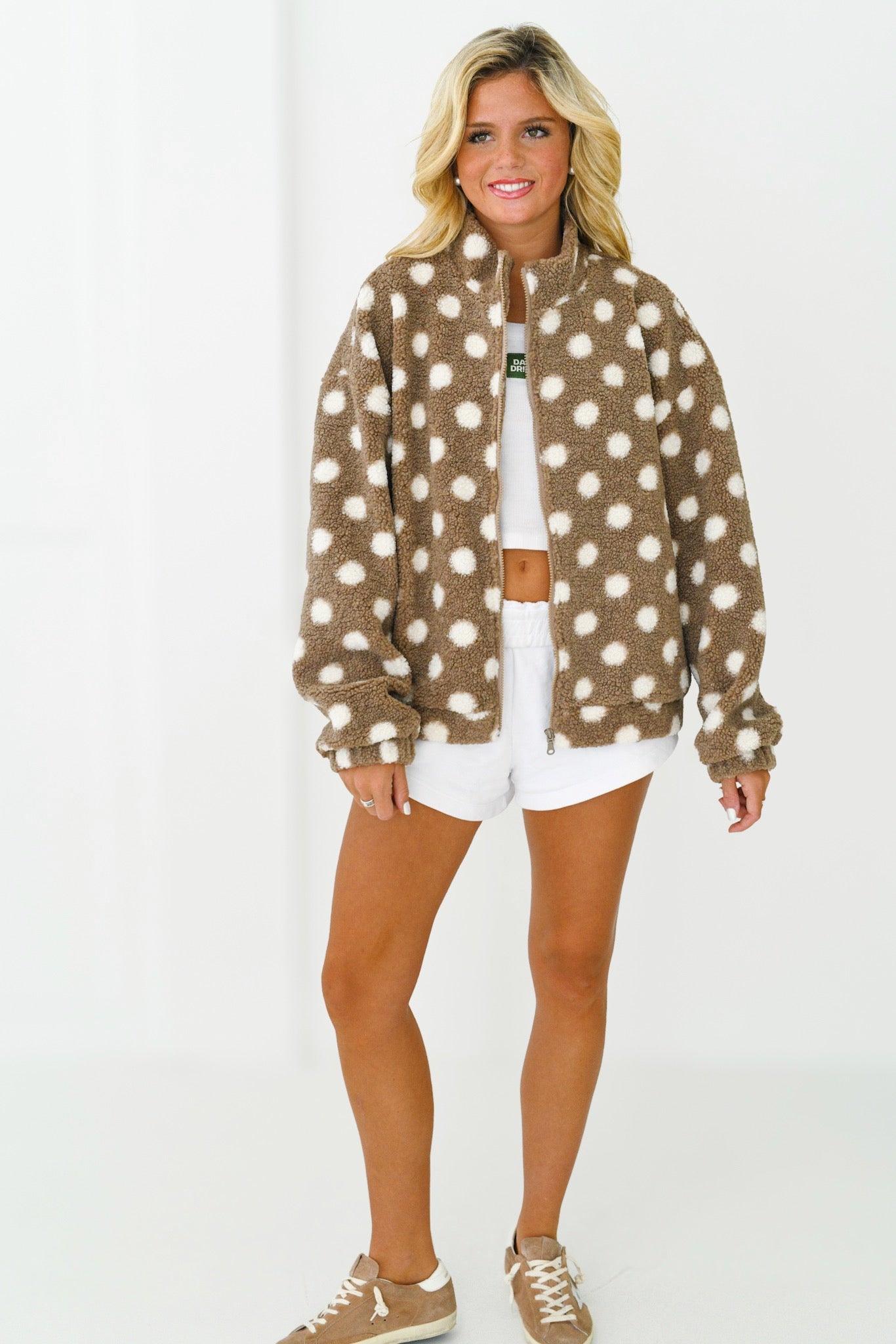 Stacie Polka Dot Teddy Bear Jacket-Taupe