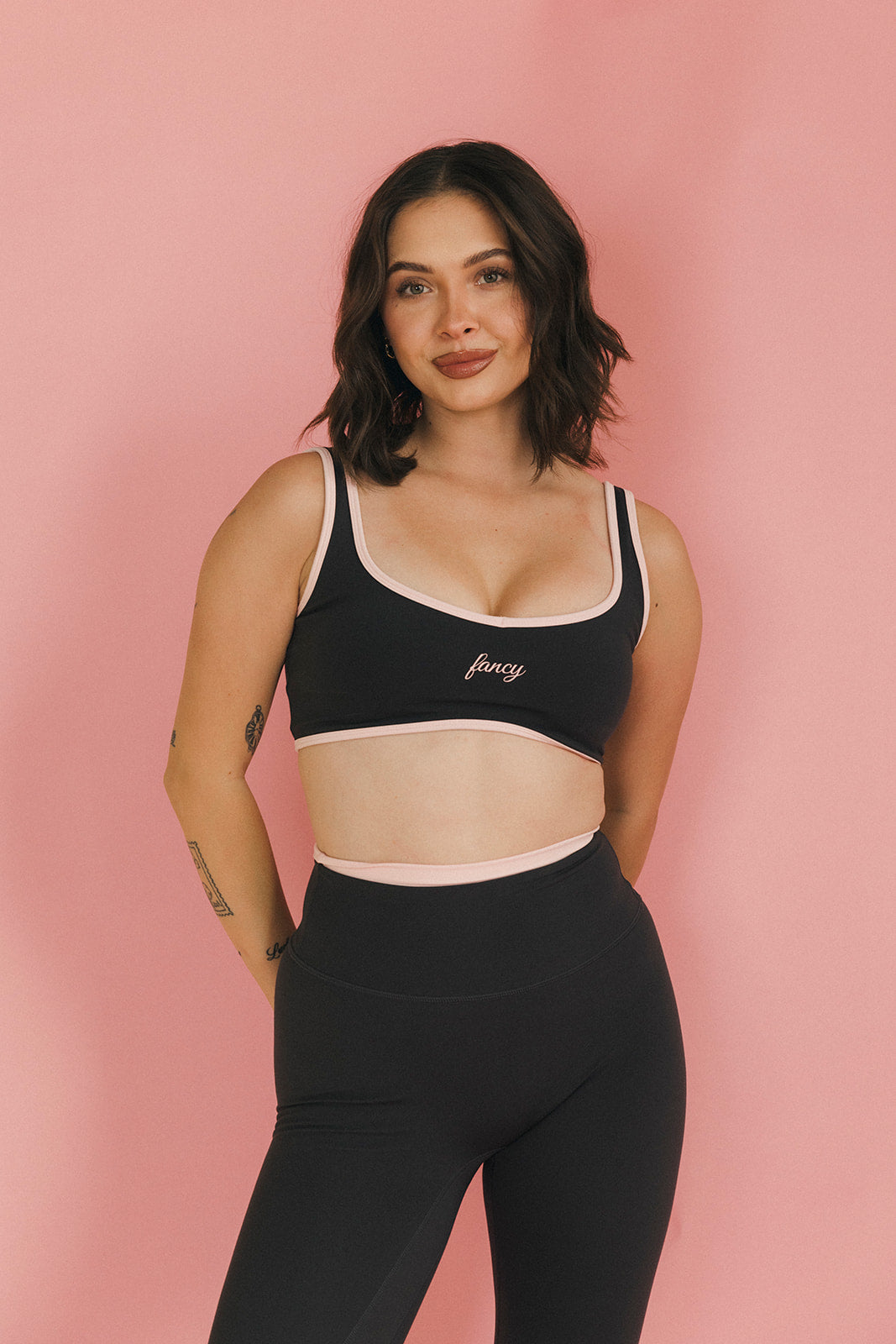 Fancy FitFlow Core Bra - Charcoal Gray/Blush Pink