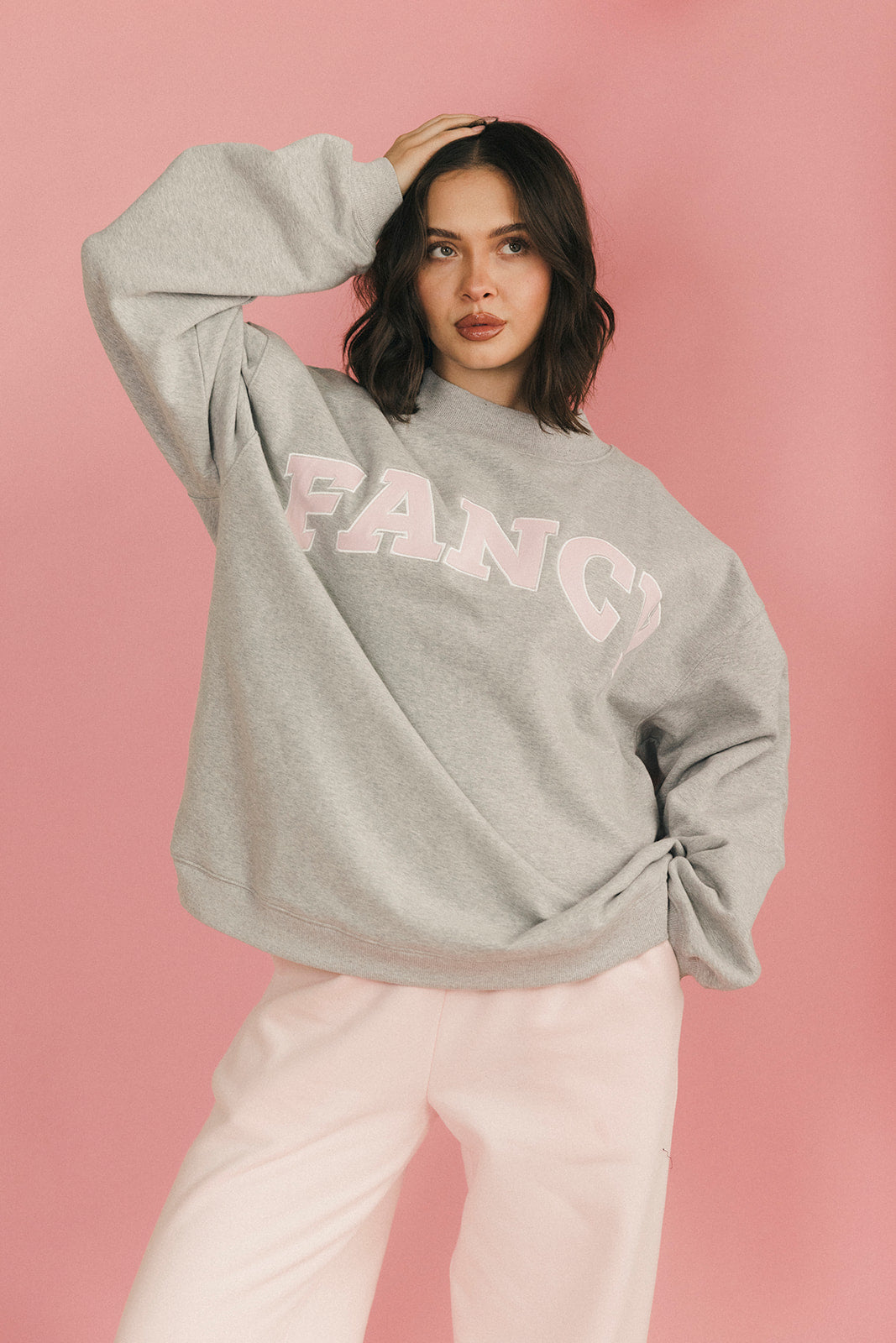 Fancy Oversized Fleece Embroidered Rolled Neck - Light Grey Heather