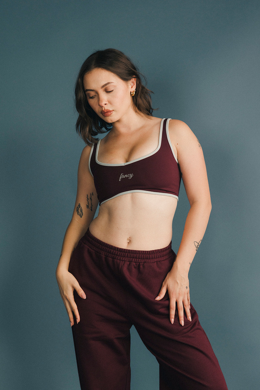 Fancy FitFlow Core Bra - Merlot/Mint Green