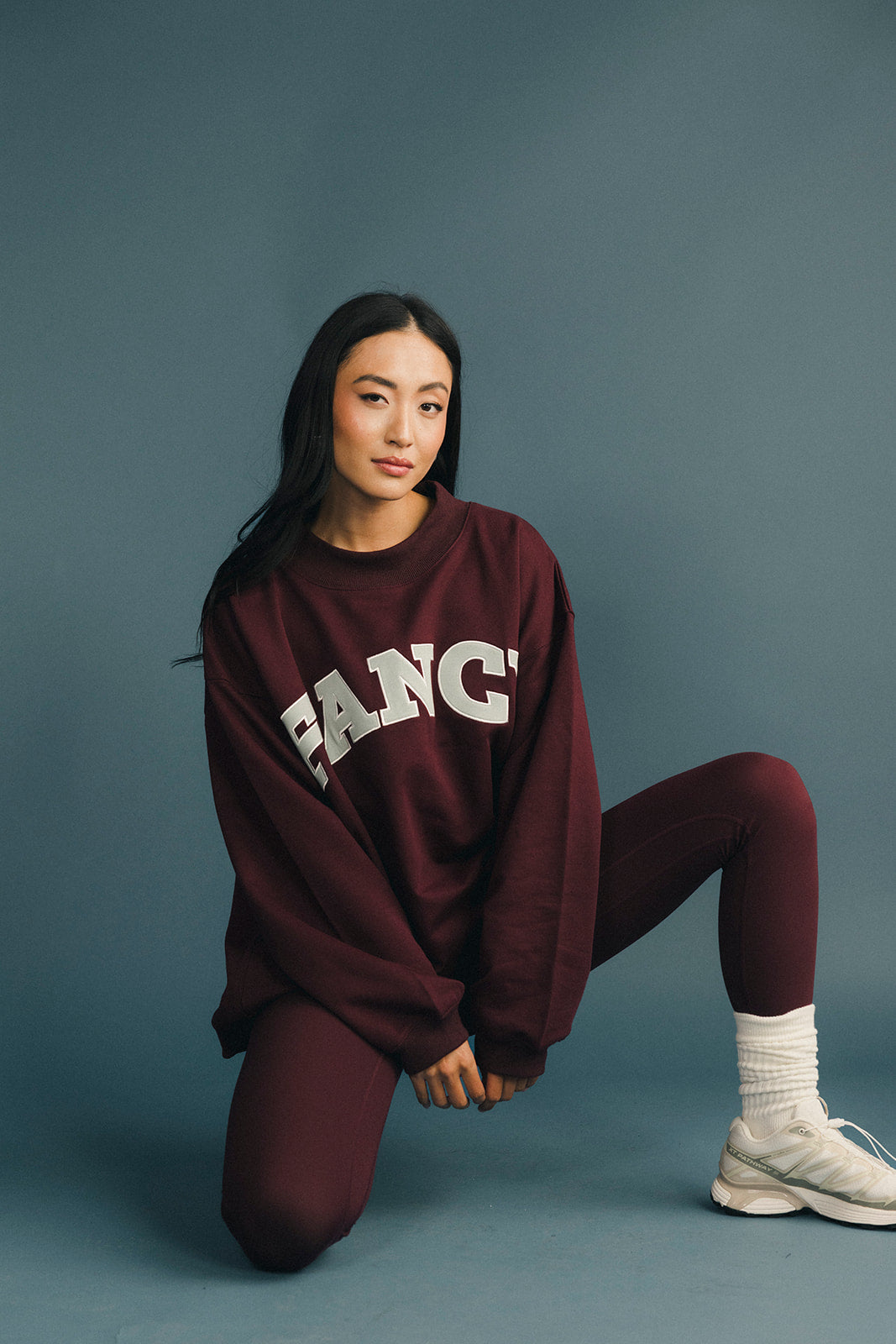 Fancy Oversized Fleece Varsity Mockneck - Jolly Berry