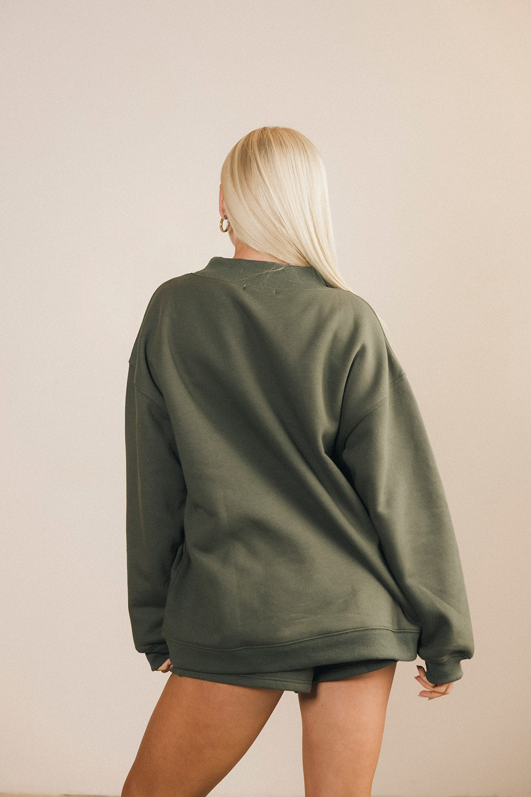 Fancy Oversized Fleece Mockneck - Hunter Green