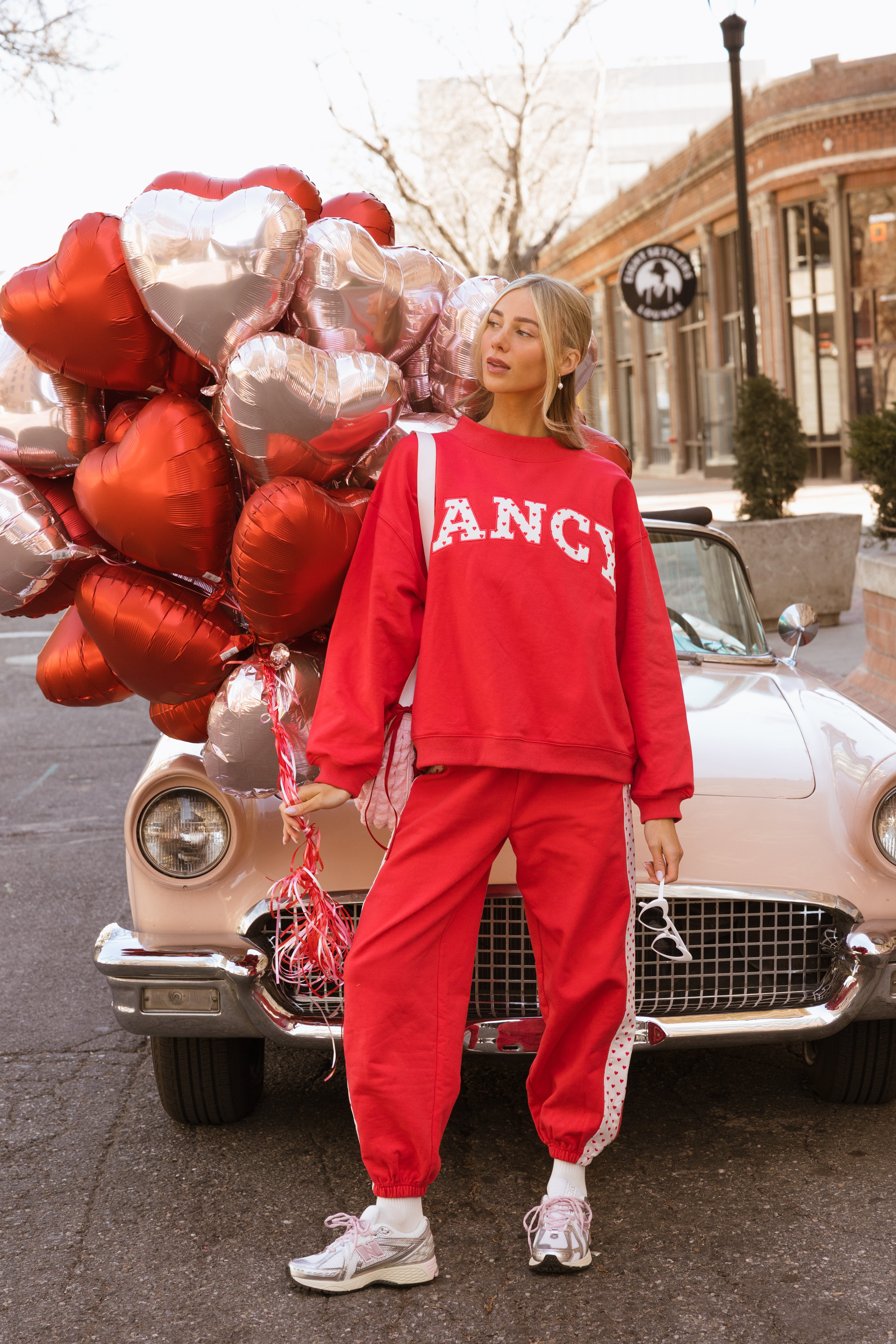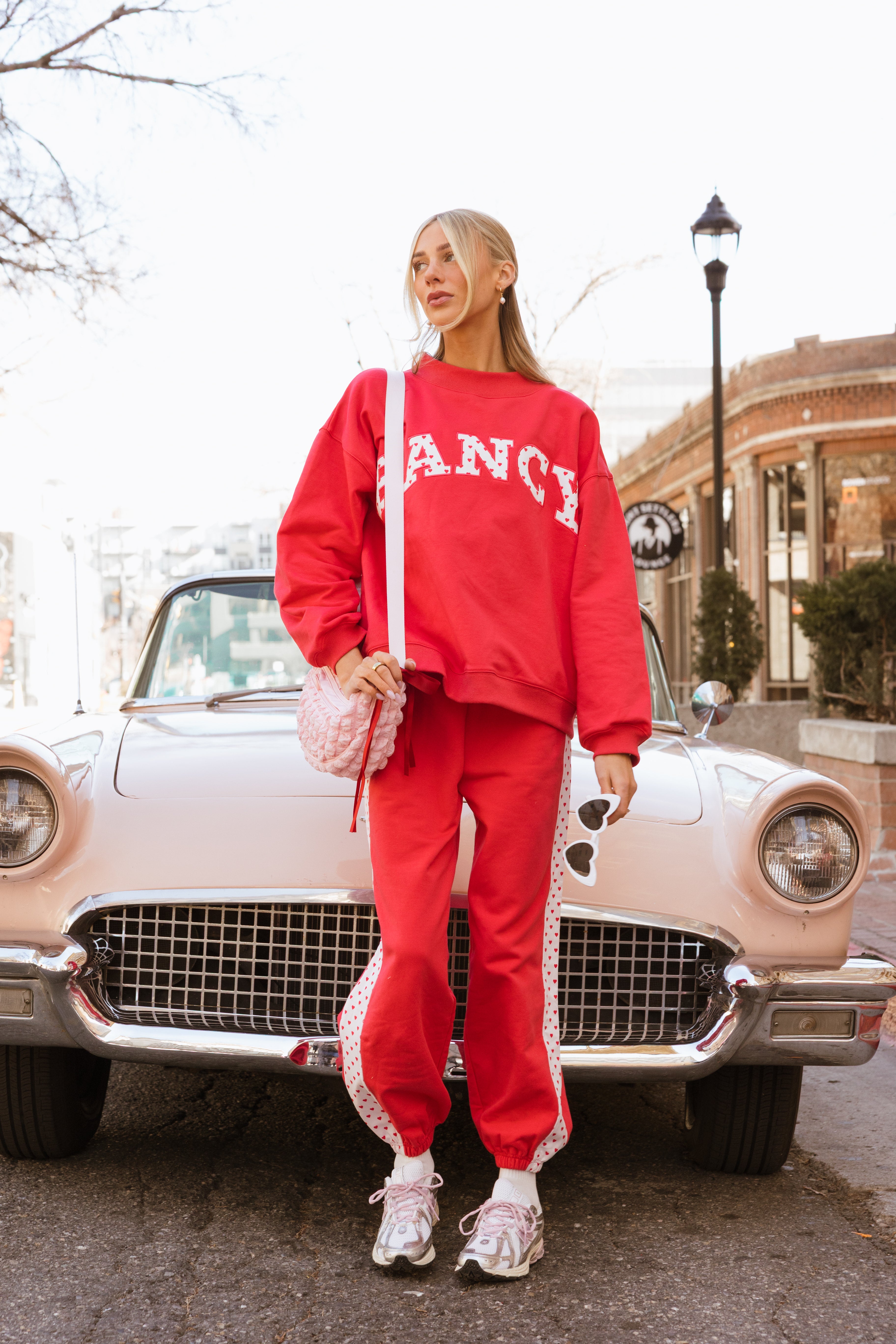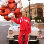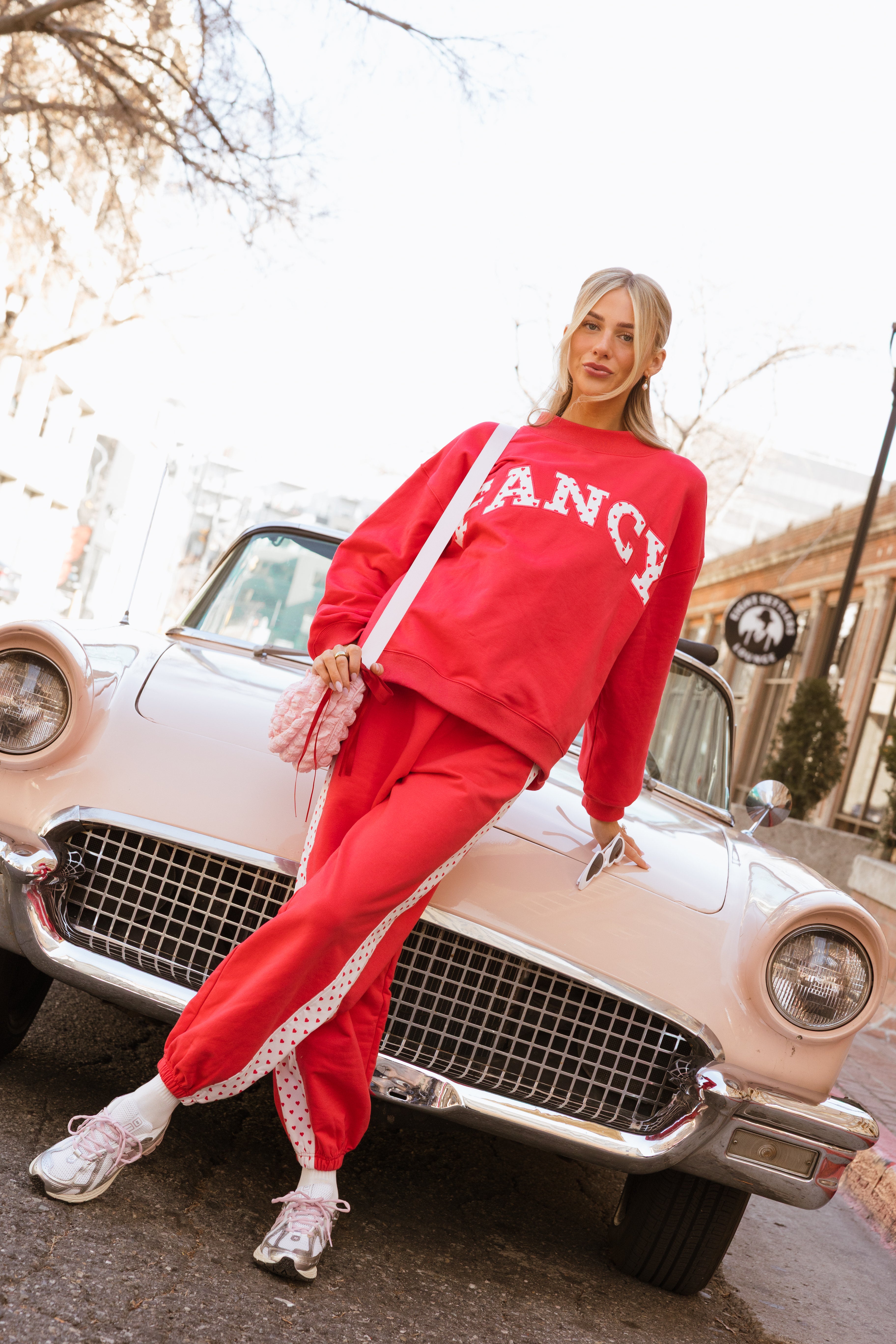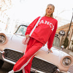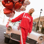 Fancy Fleece Heartline Cuffed Leg Sweatpants are made for cozy comfort with a playful, Valentine-ready twist. Designed in an ultra-soft fabric with an easy drape, these wide-leg sweatpants feature a relaxed fit that feels as good as it looks. A subtle heart detail runs down the side, adding a touch of charm to your everyday style. Perfect for lounging, layering, or stepping out, and finished in a fresh pop of color to carry you seamlessly from winter into spring.