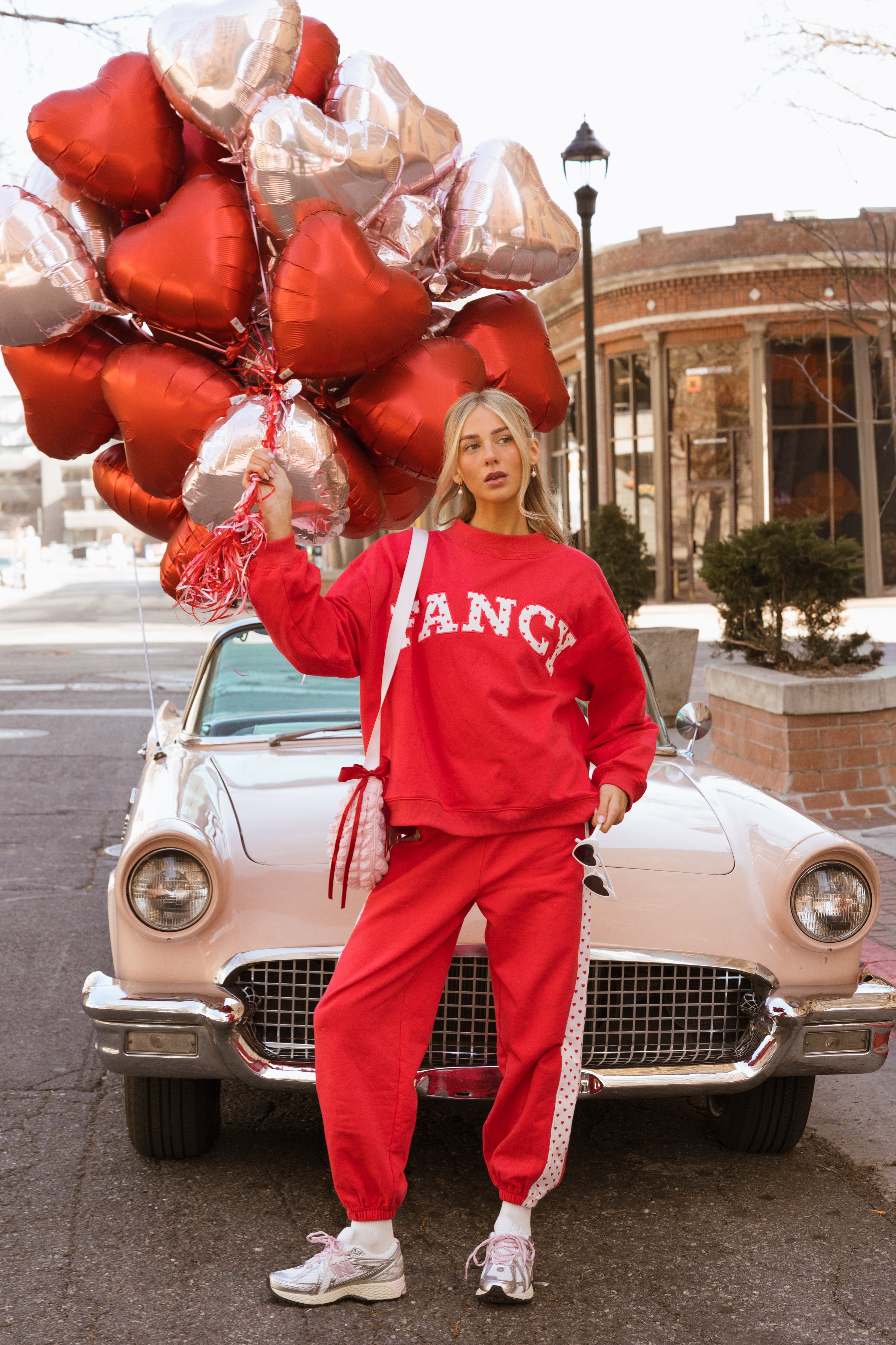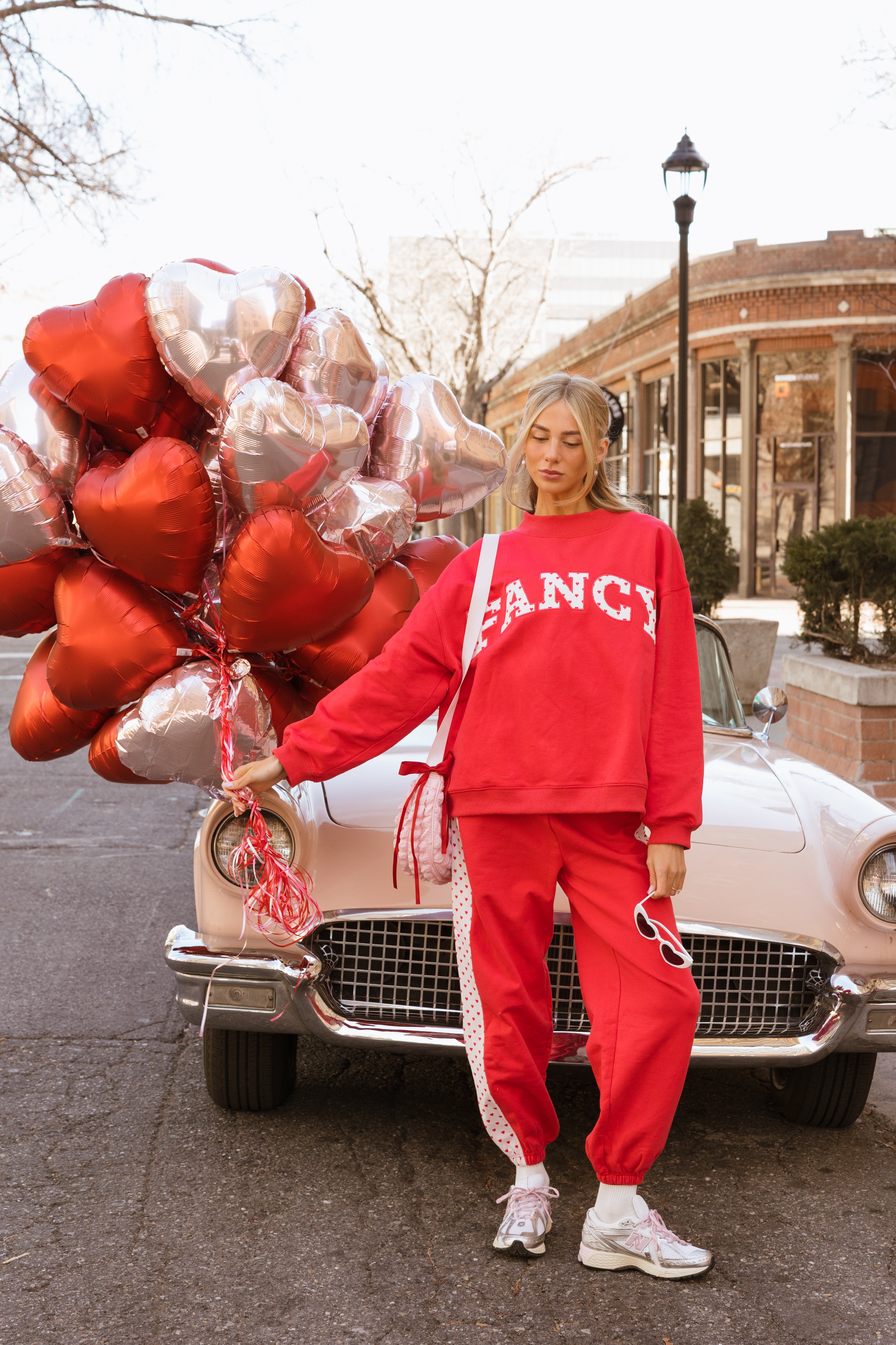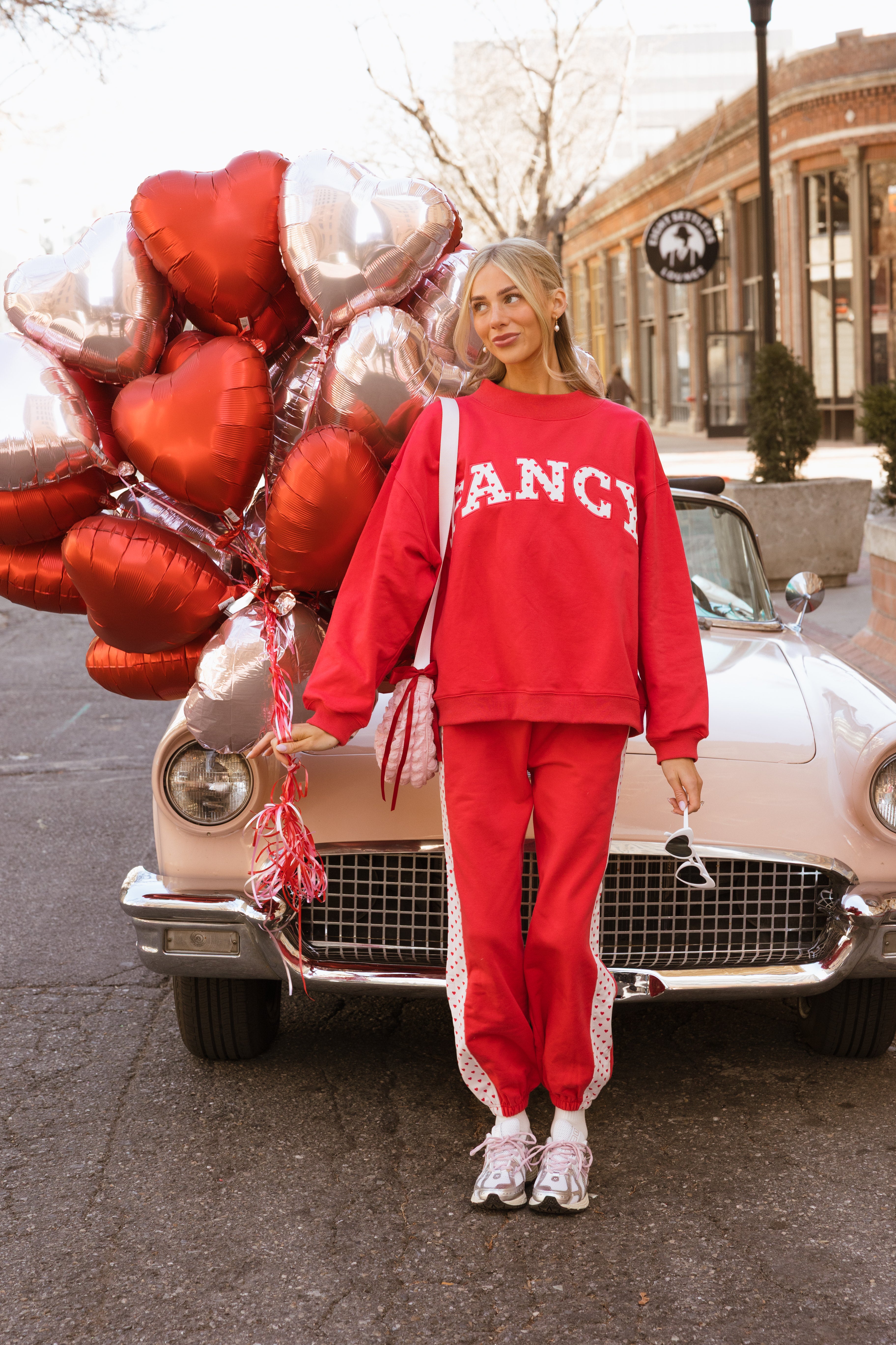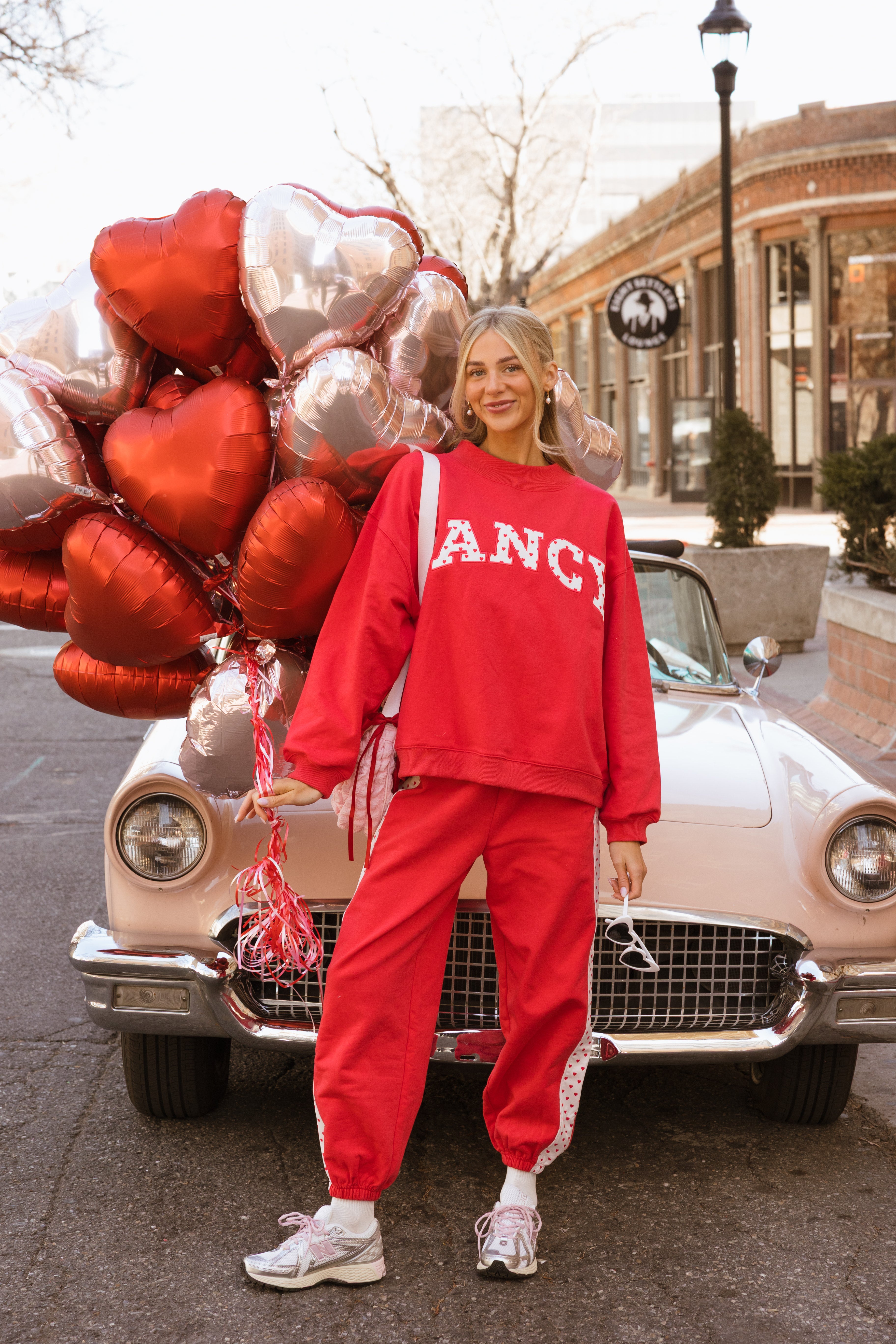 Fancy Fleece Heartline Cuffed Leg Sweatpants are made for cozy comfort with a playful, Valentine-ready twist. Designed in an ultra-soft fabric with an easy drape, these wide-leg sweatpants feature a relaxed fit that feels as good as it looks. A subtle heart detail runs down the side, adding a touch of charm to your everyday style. Perfect for lounging, layering, or stepping out, and finished in a fresh pop of color to carry you seamlessly from winter into spring.