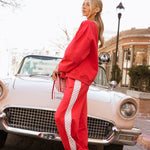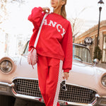 Fancy Fleece Heartline Cuffed Leg Sweatpants – Ruby Red