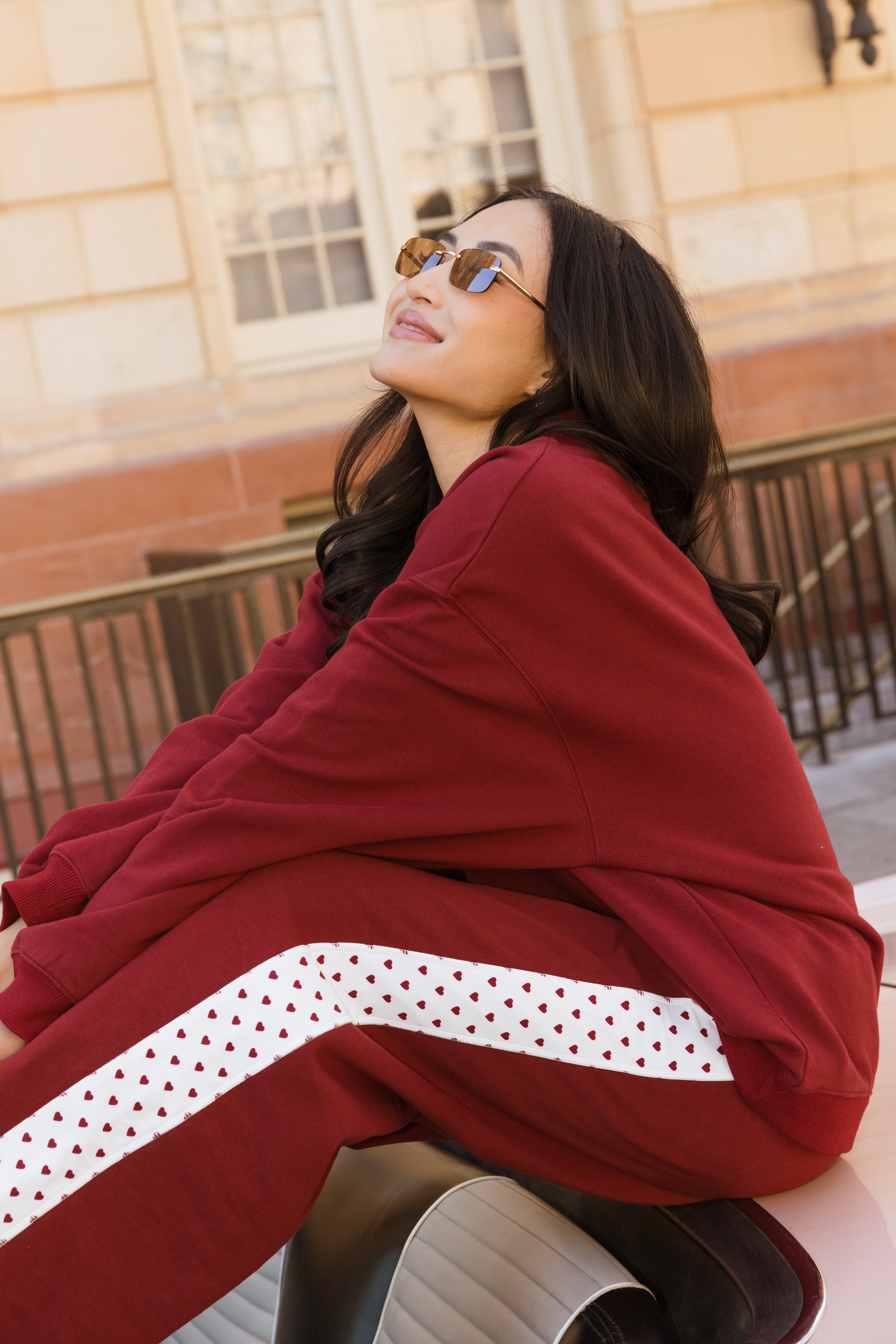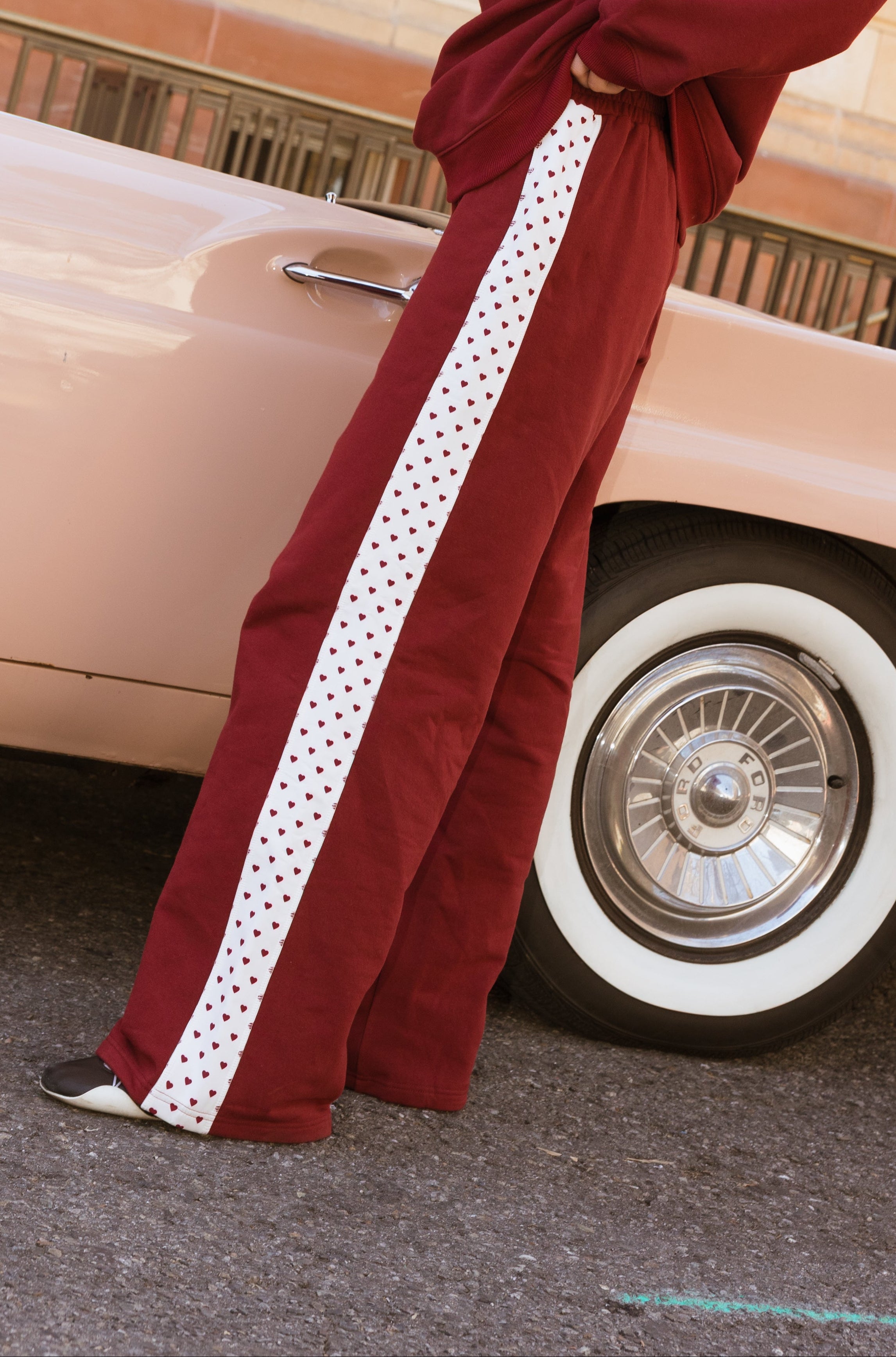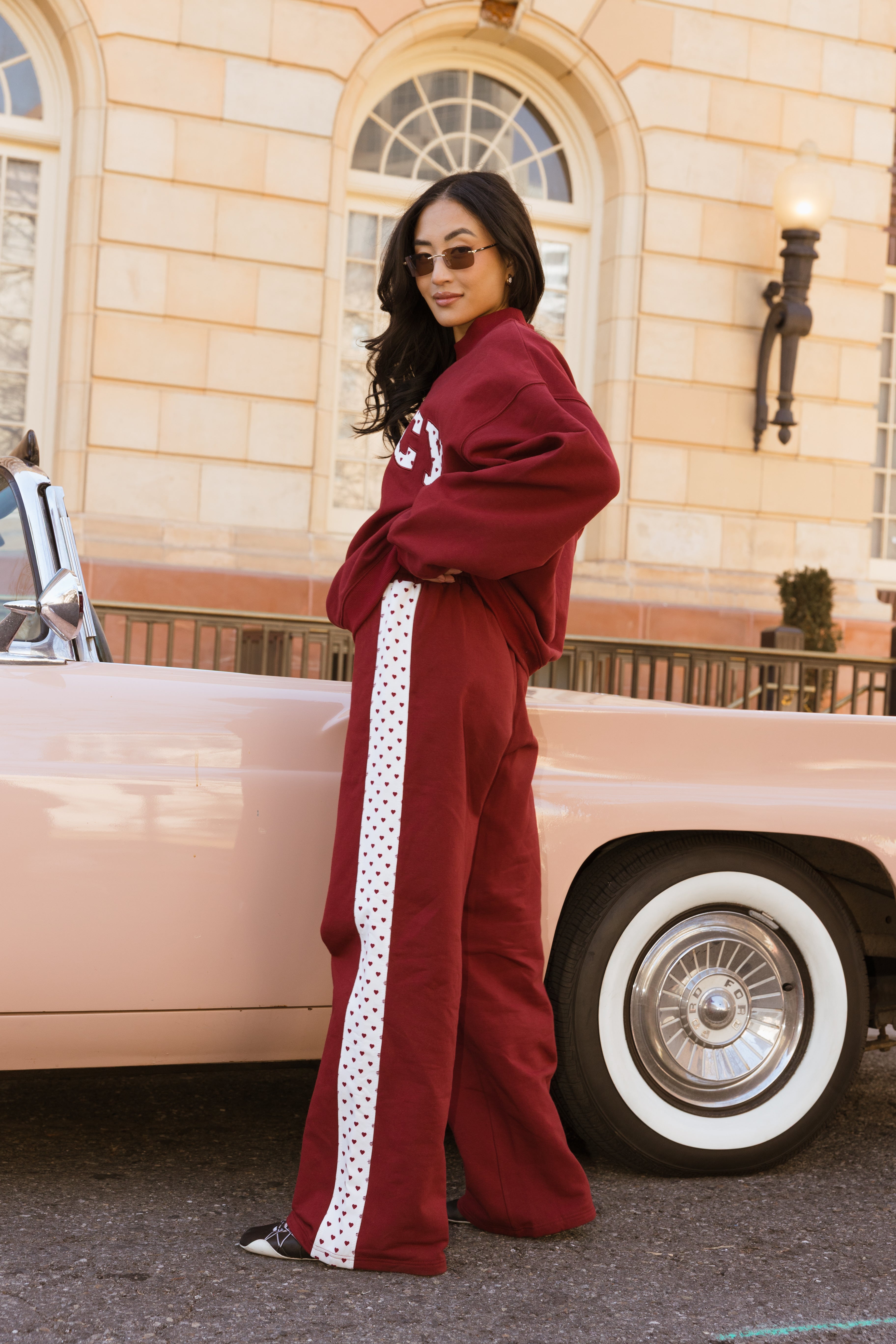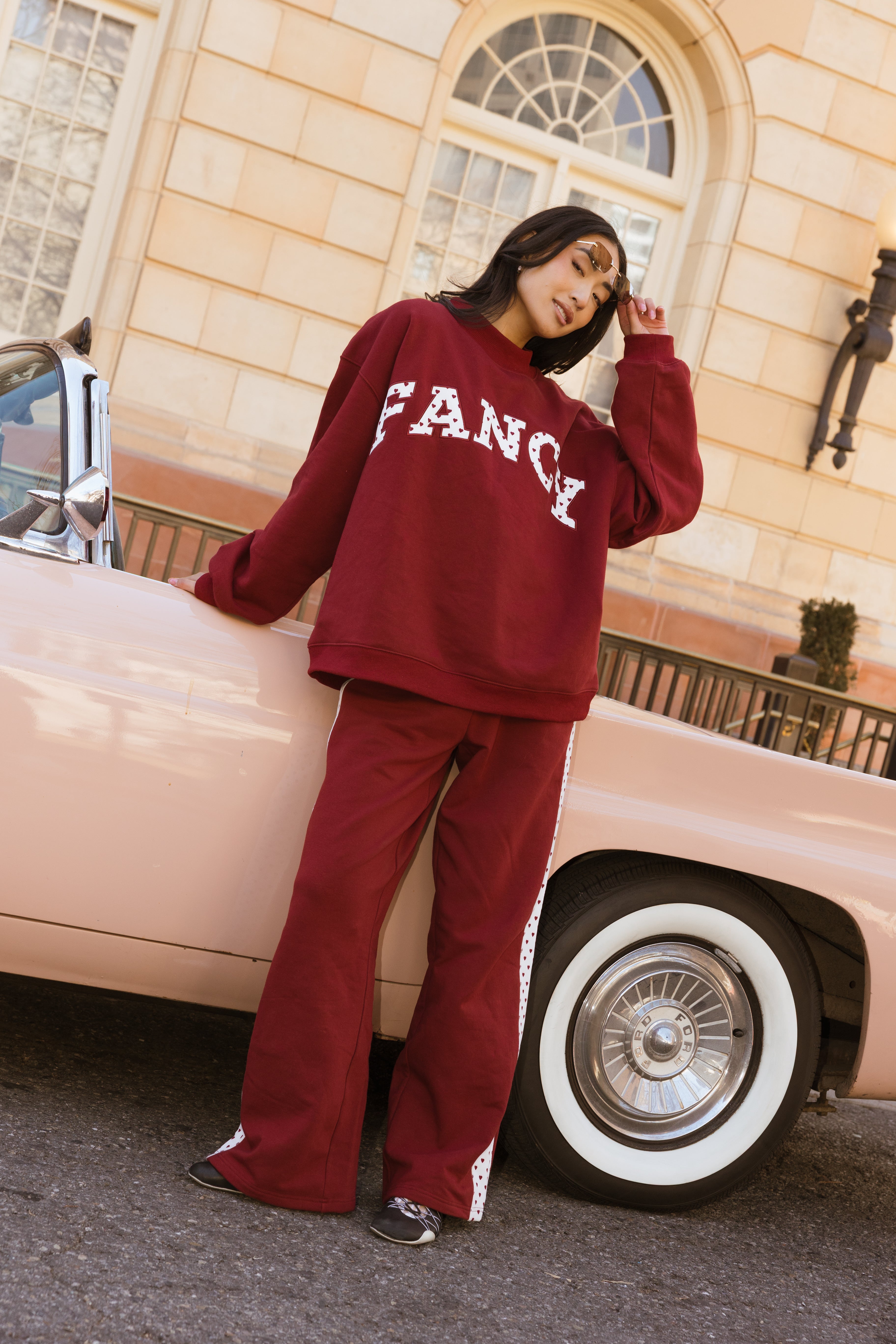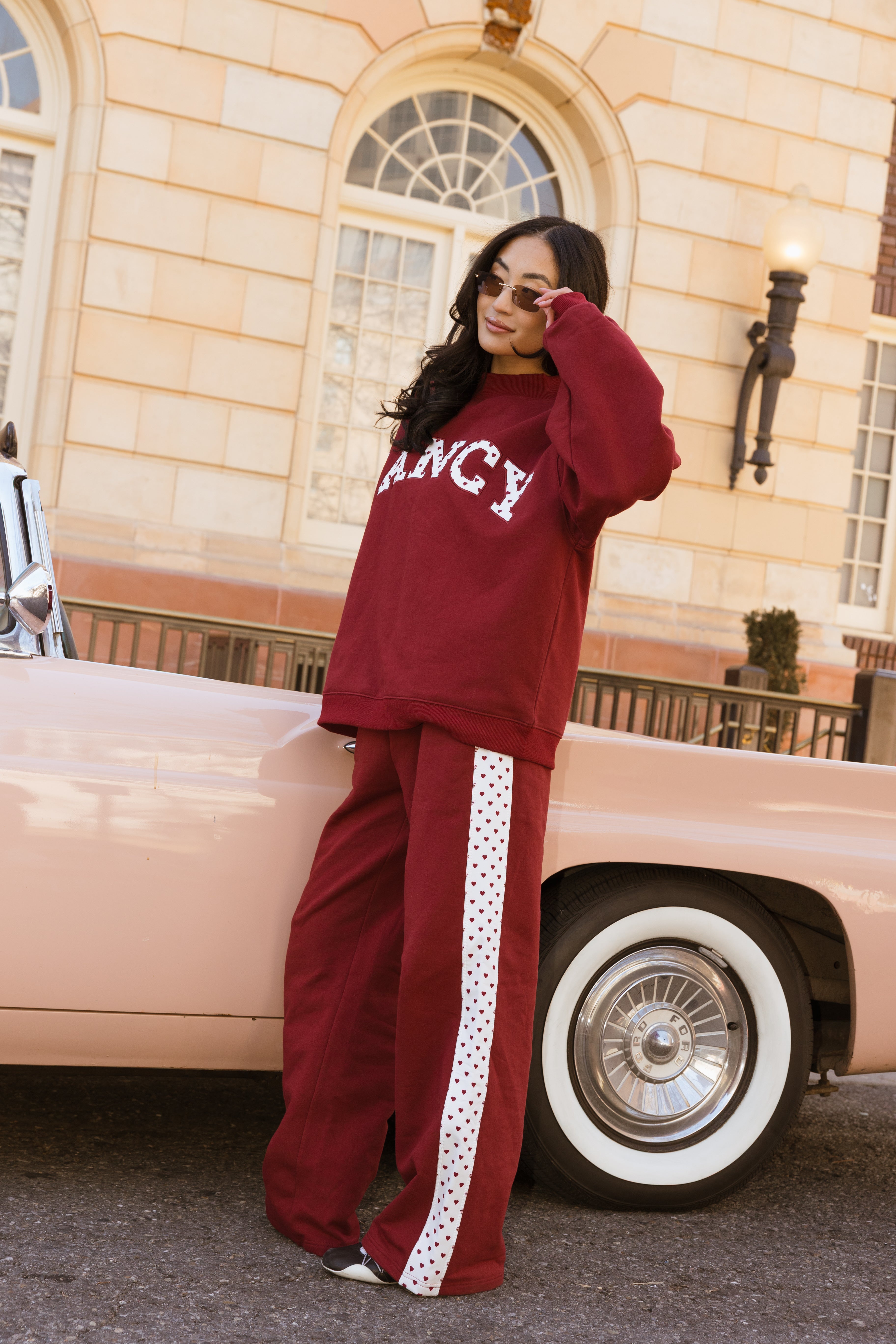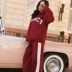 Fancy Fleece Heartline Wide Leg Sweatpants – Black Cherry
