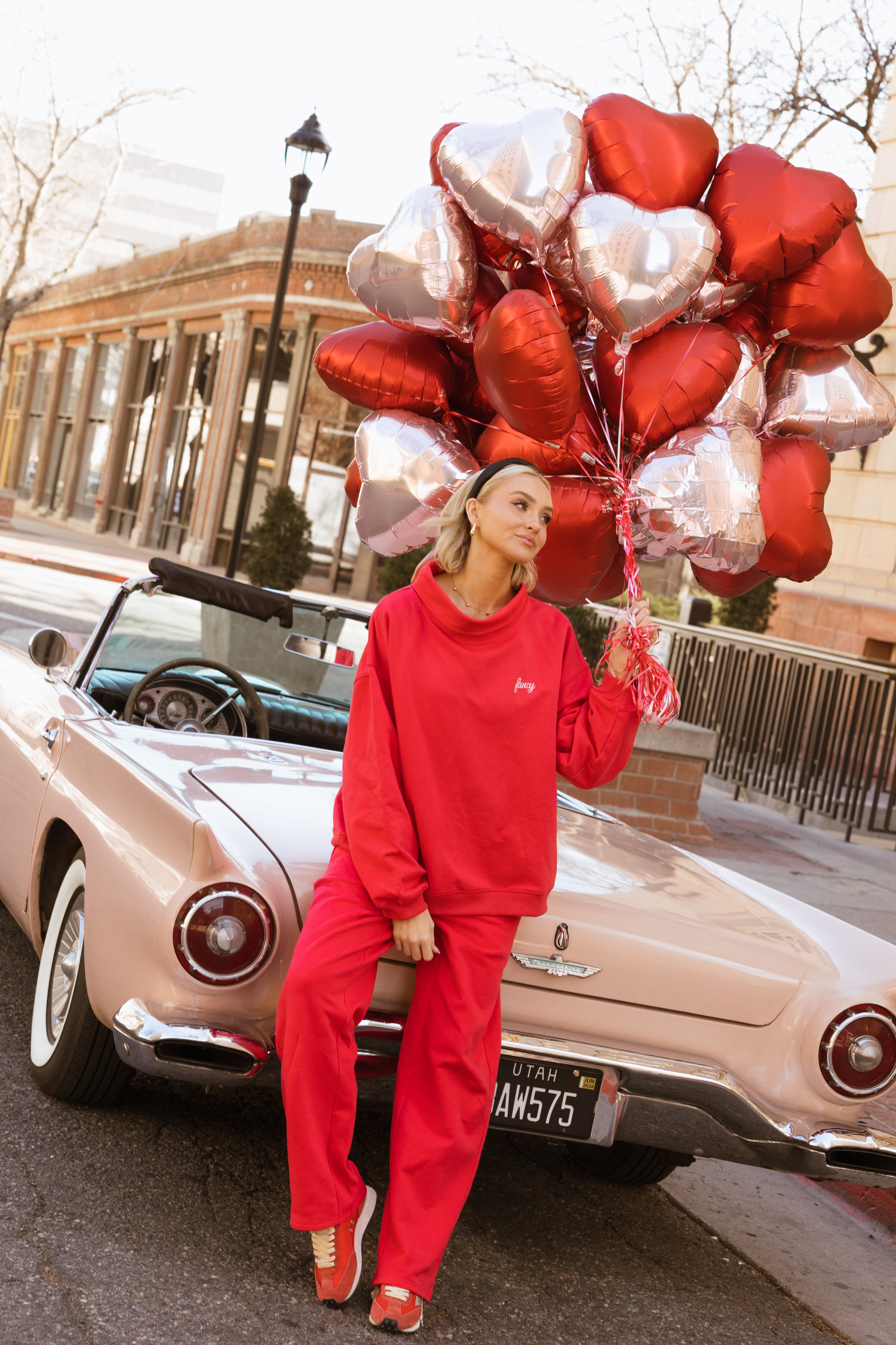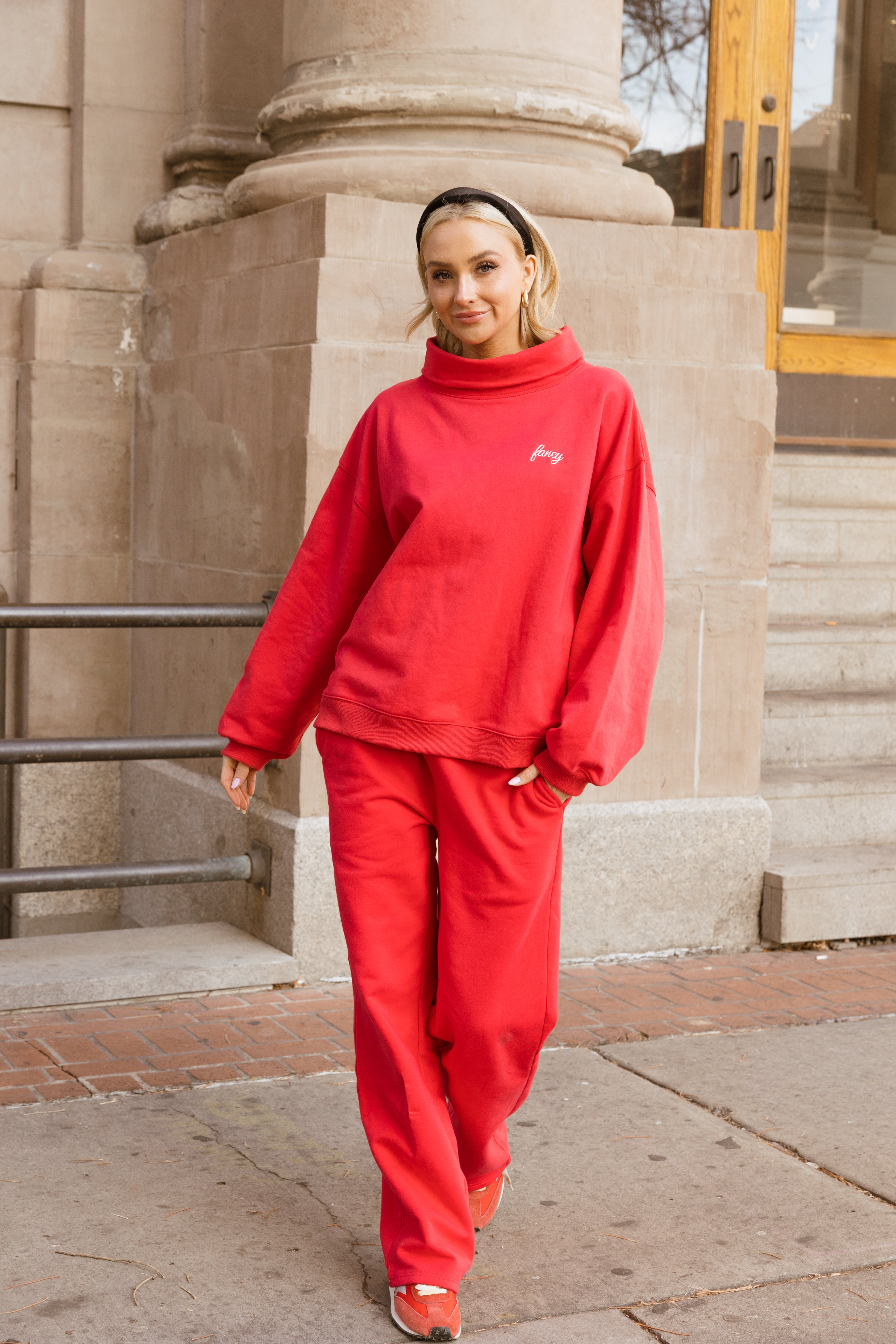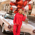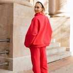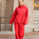 Fancy Fleece Straight Leg Drawstring Pants - Ruby Red