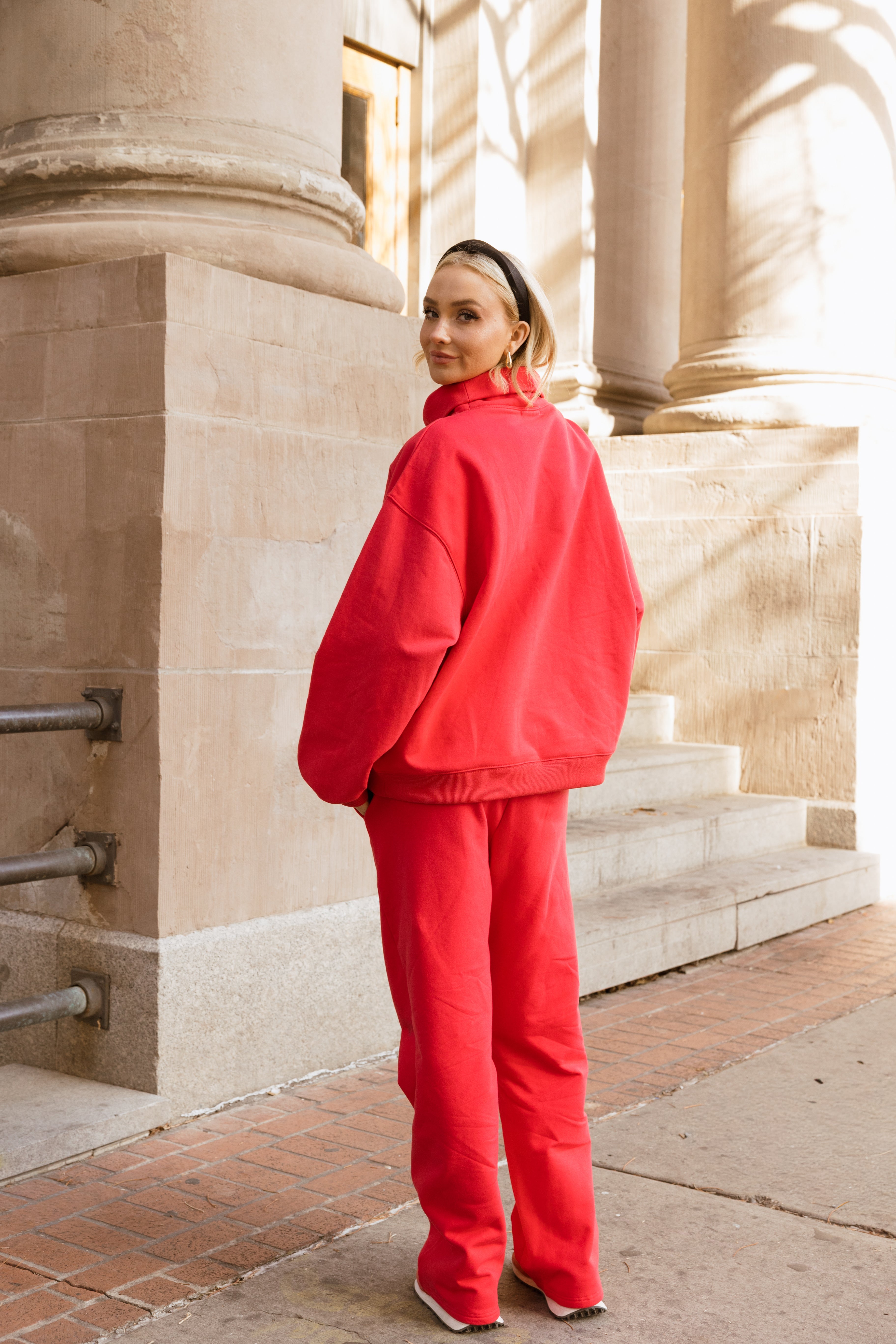 Model is wearing a XS/S Mockneck and XS/S pants.