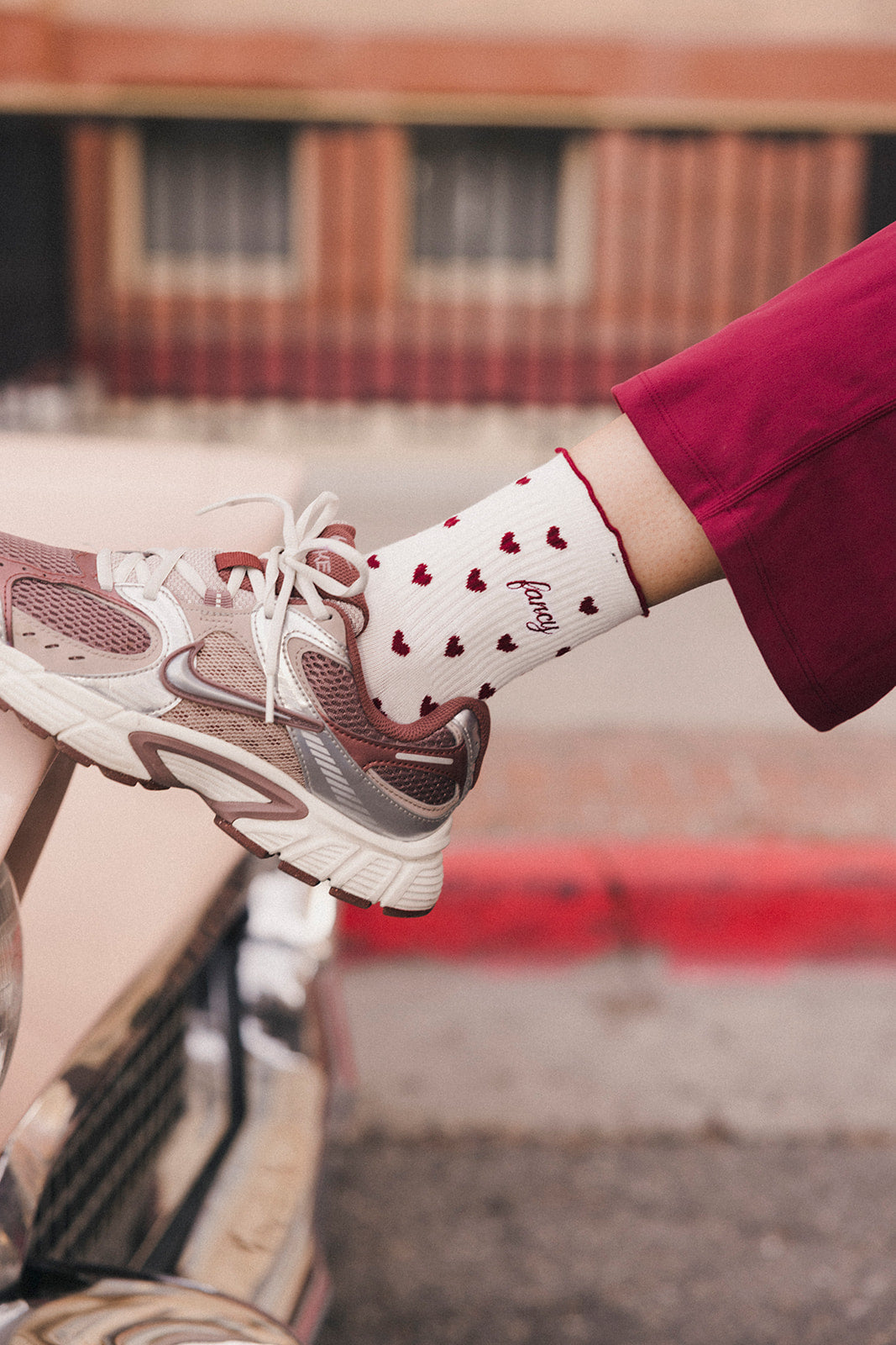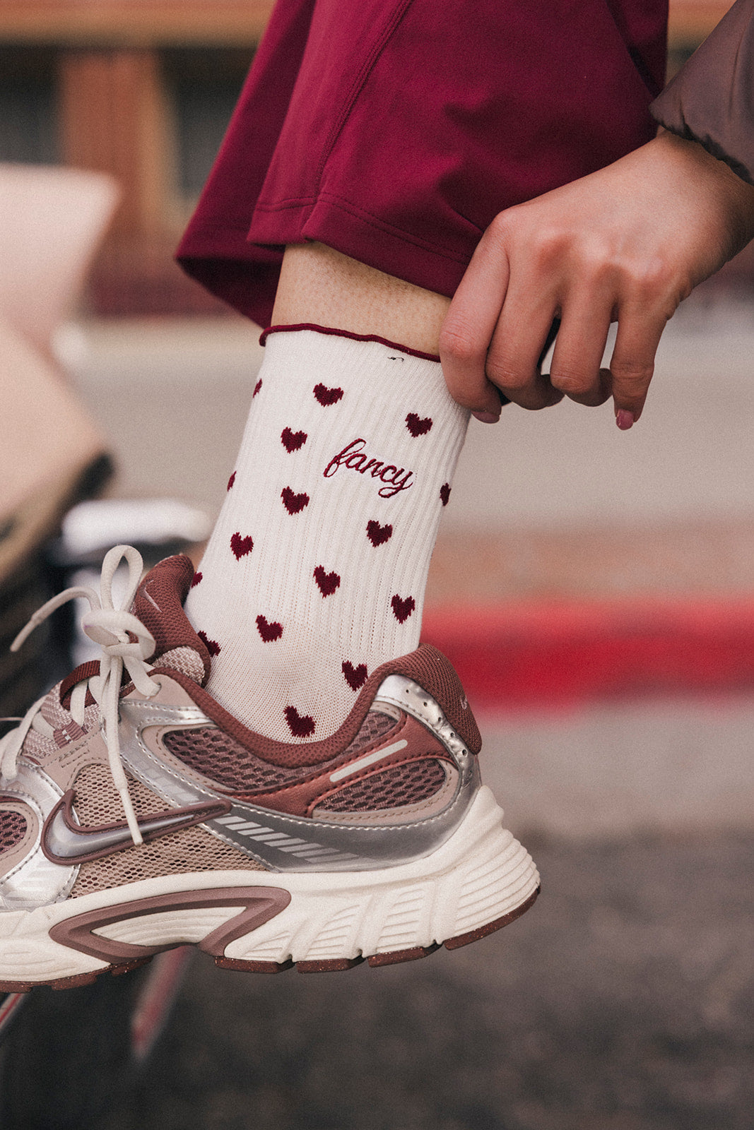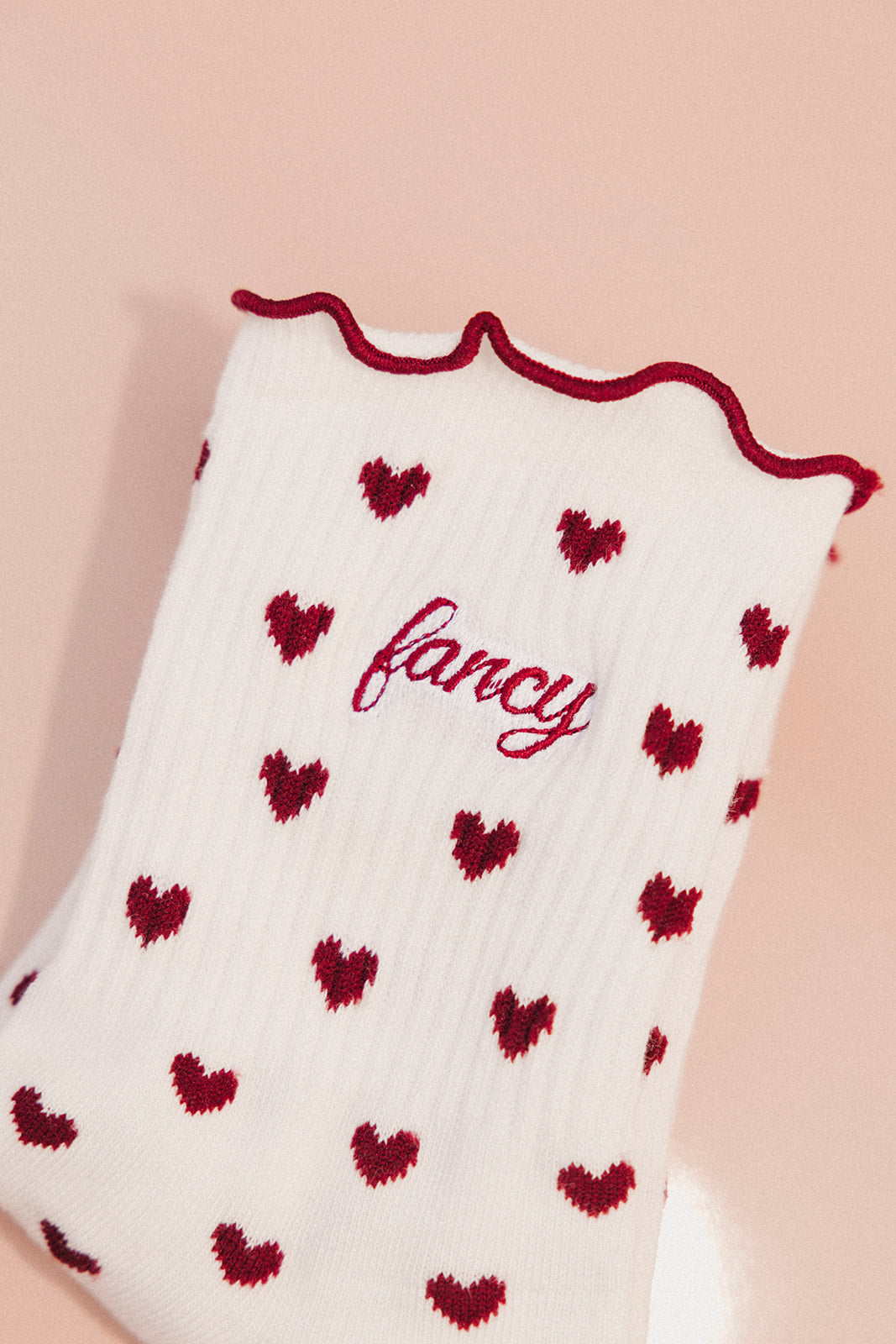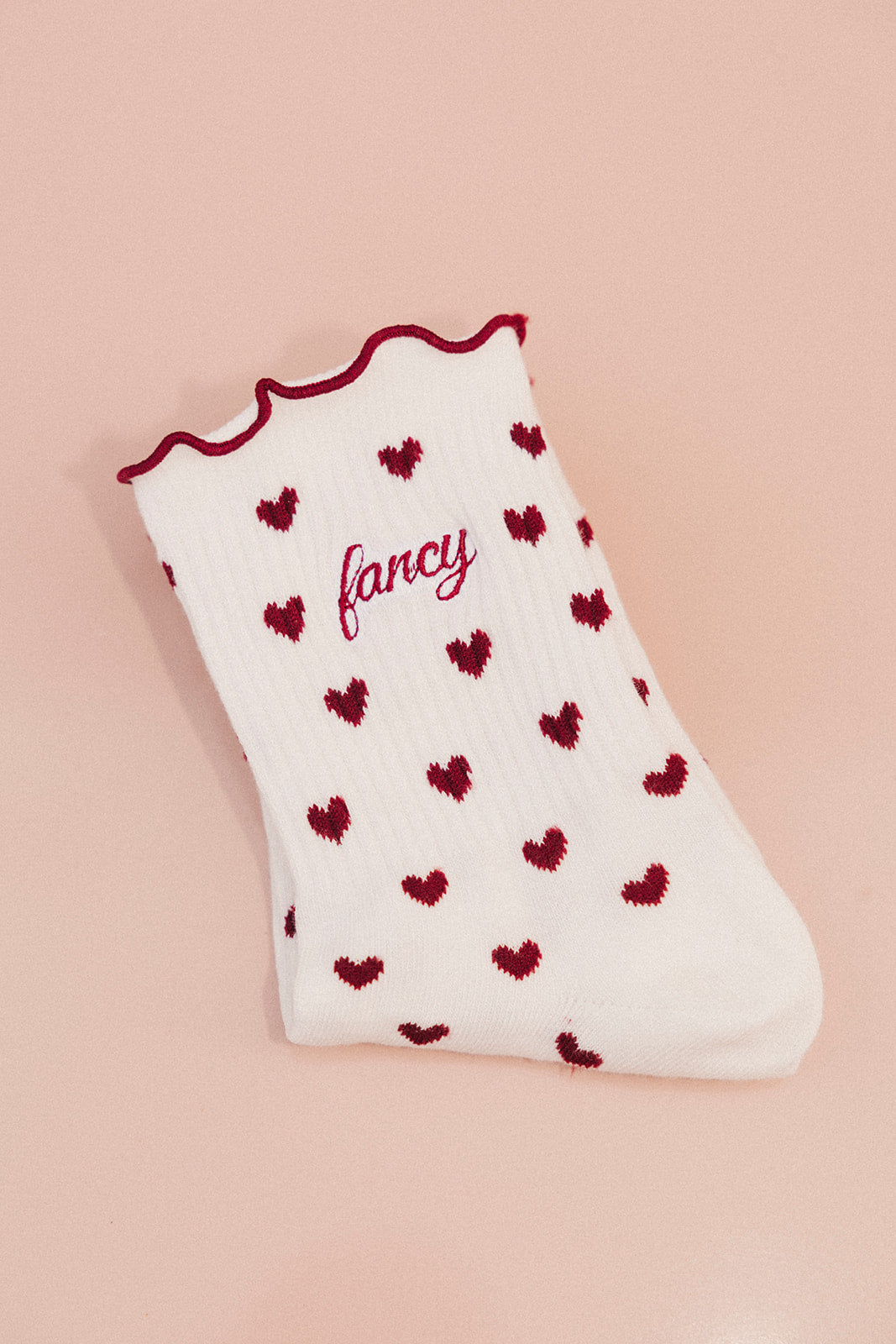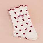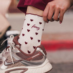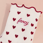 Fancy Heart Ruffle Socks- Black Cherry