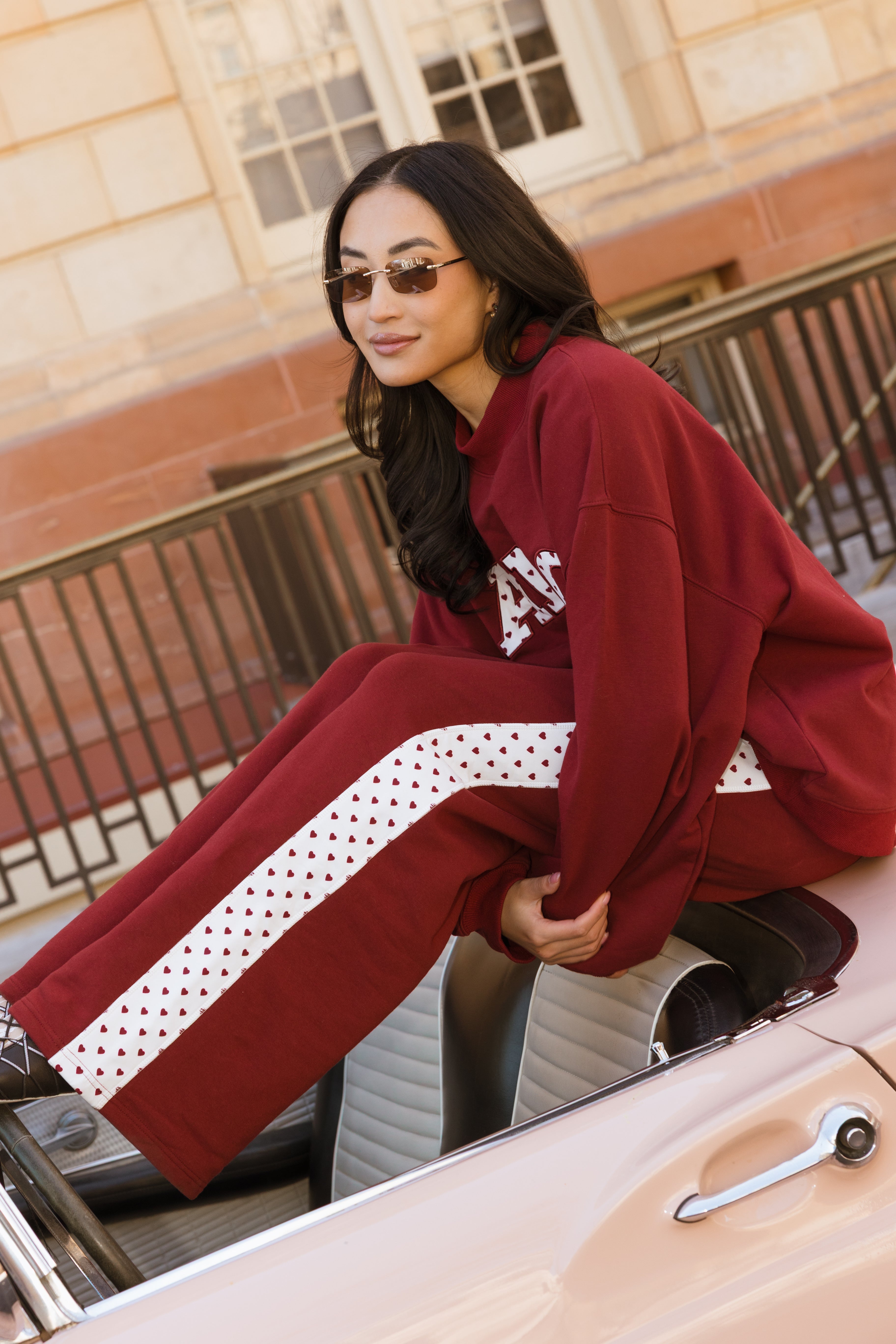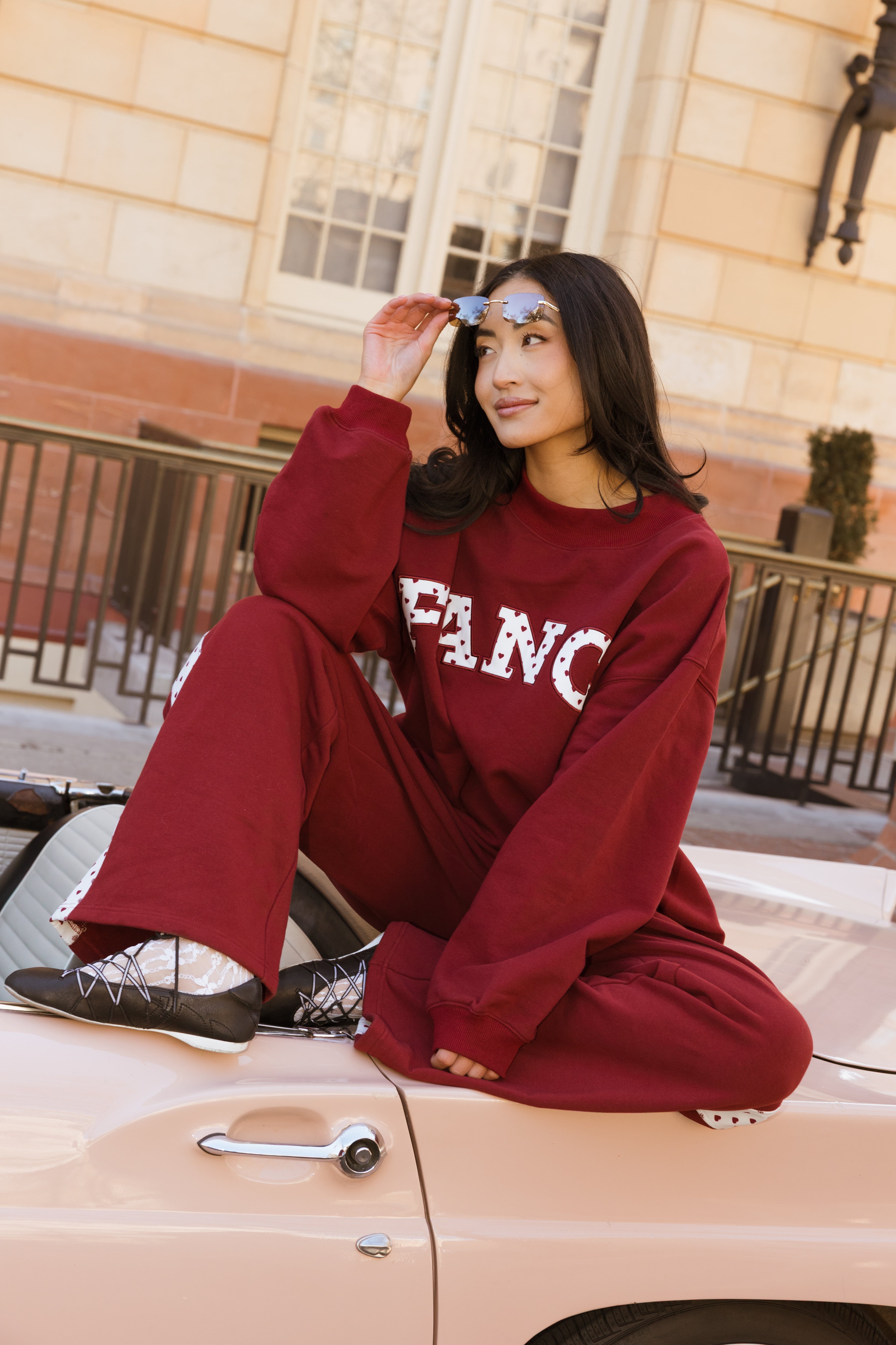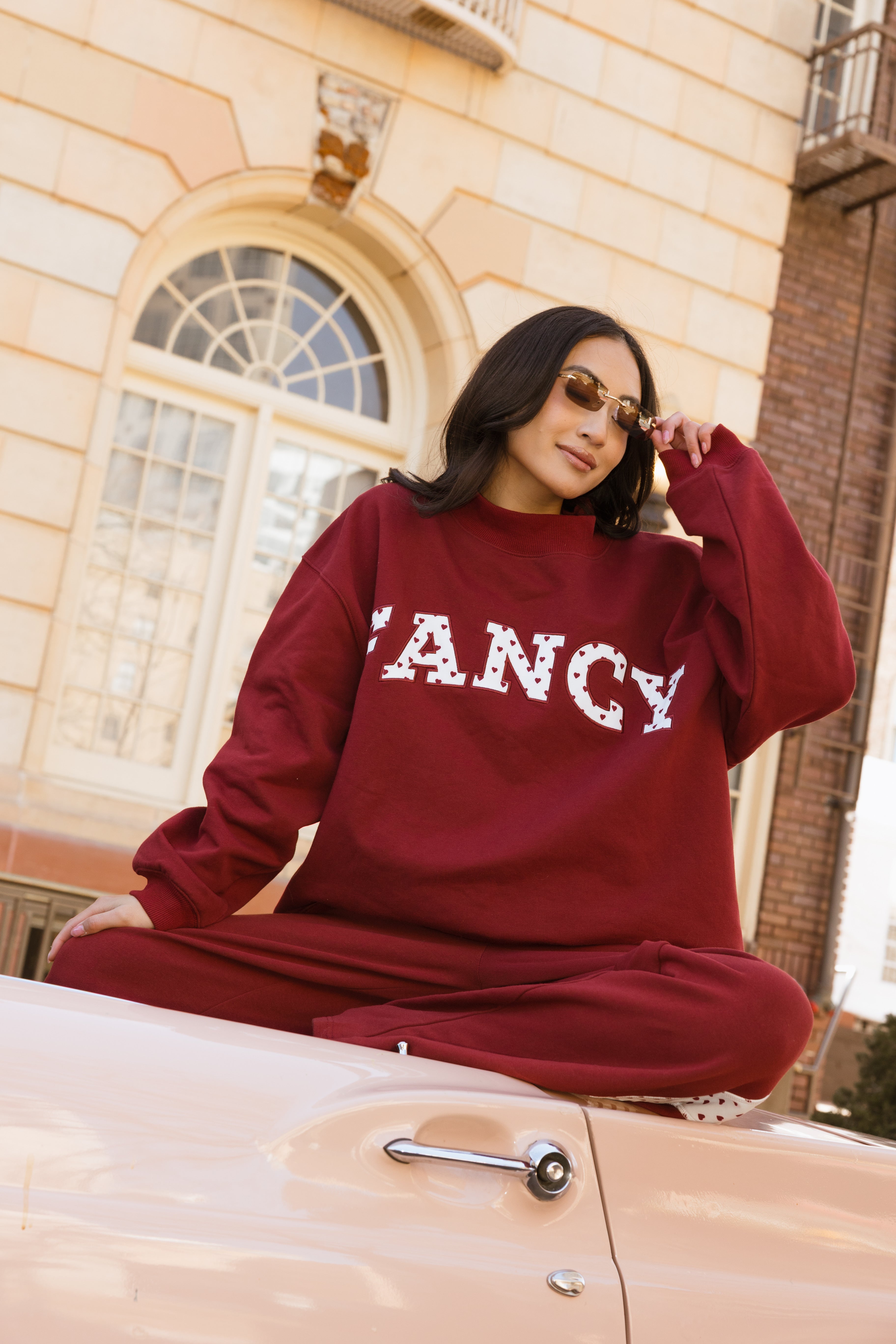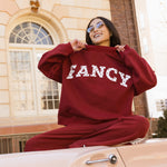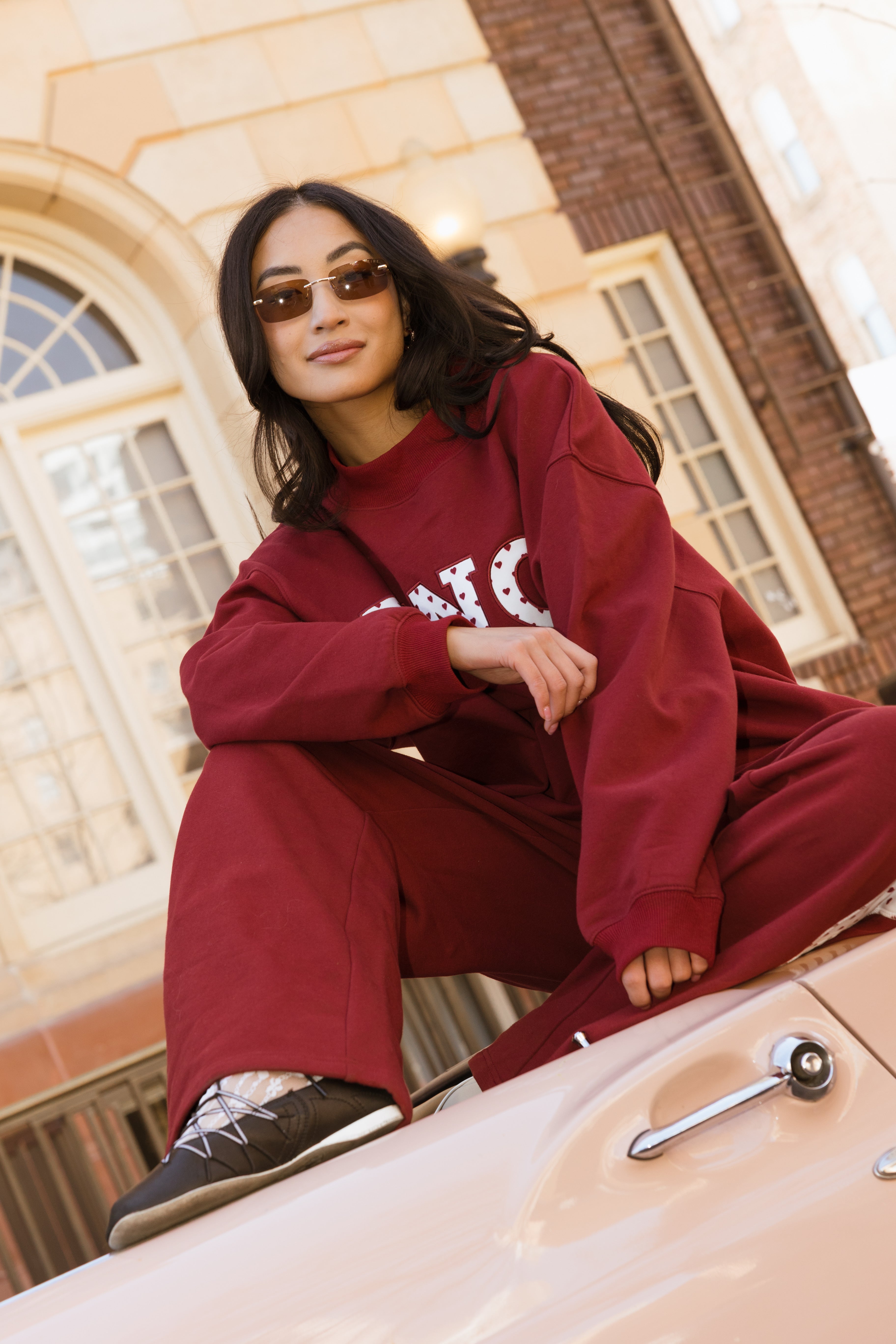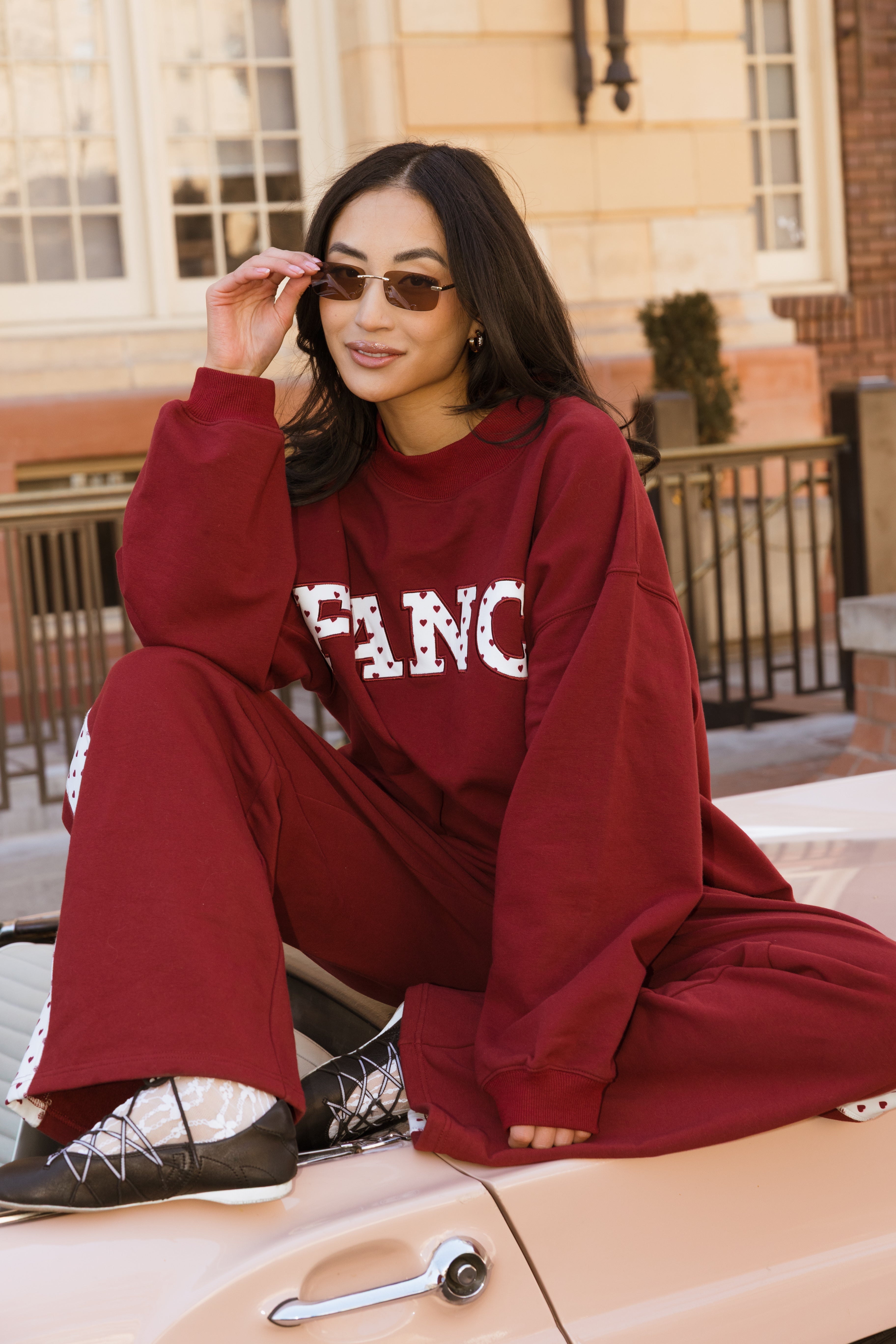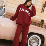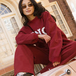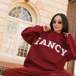 Fancy Oversized Fleece Heart Letters Mockneck - Black Cherry