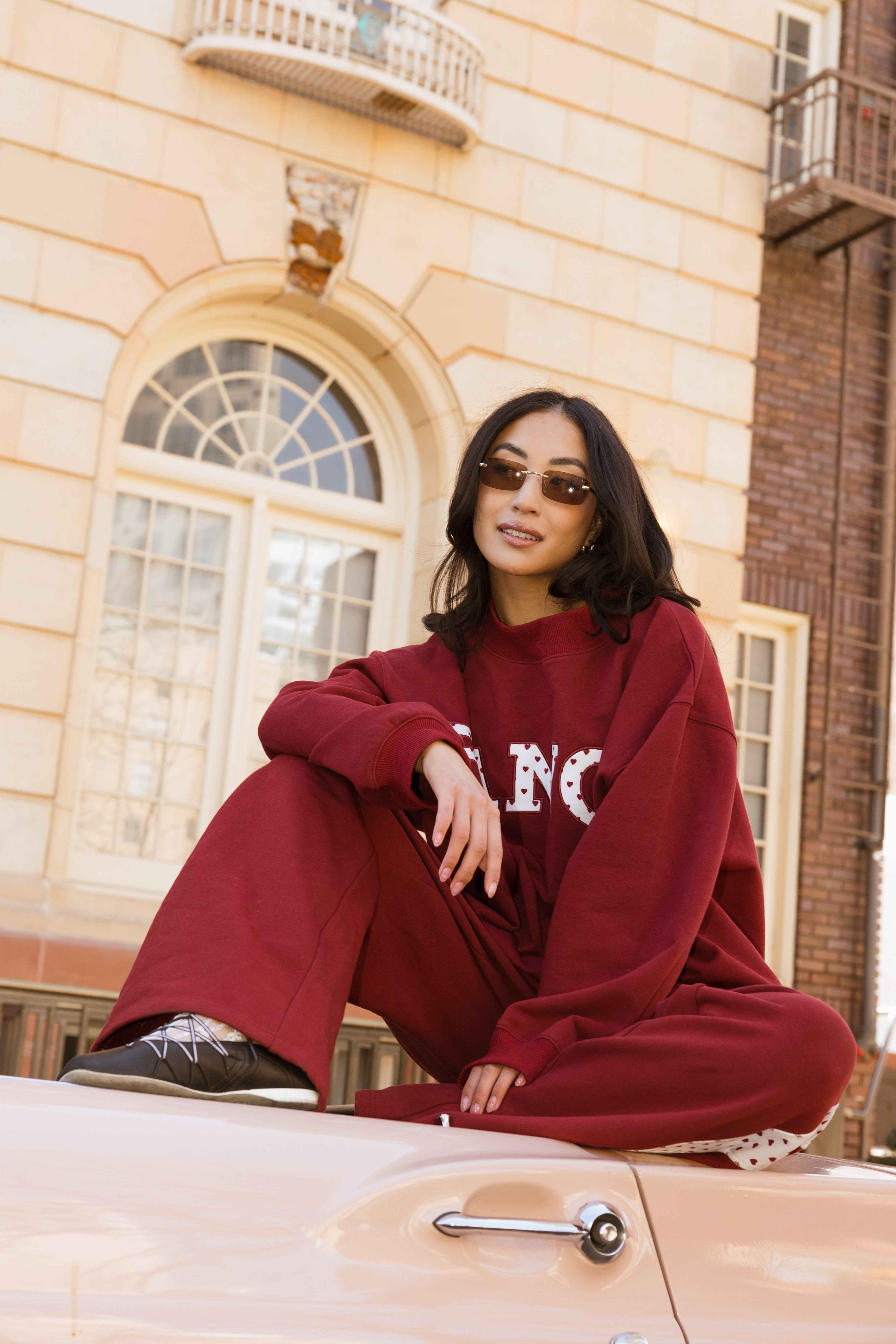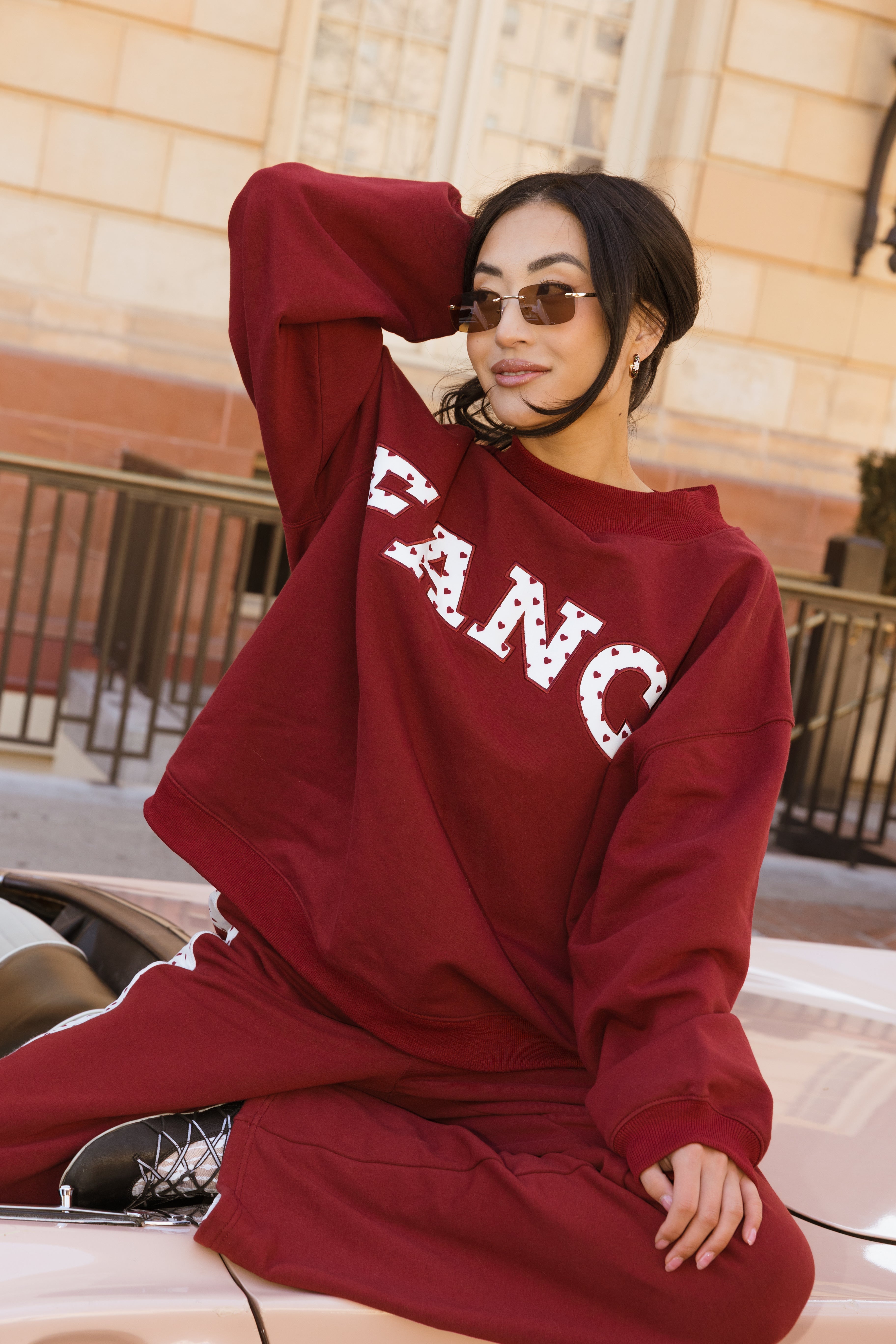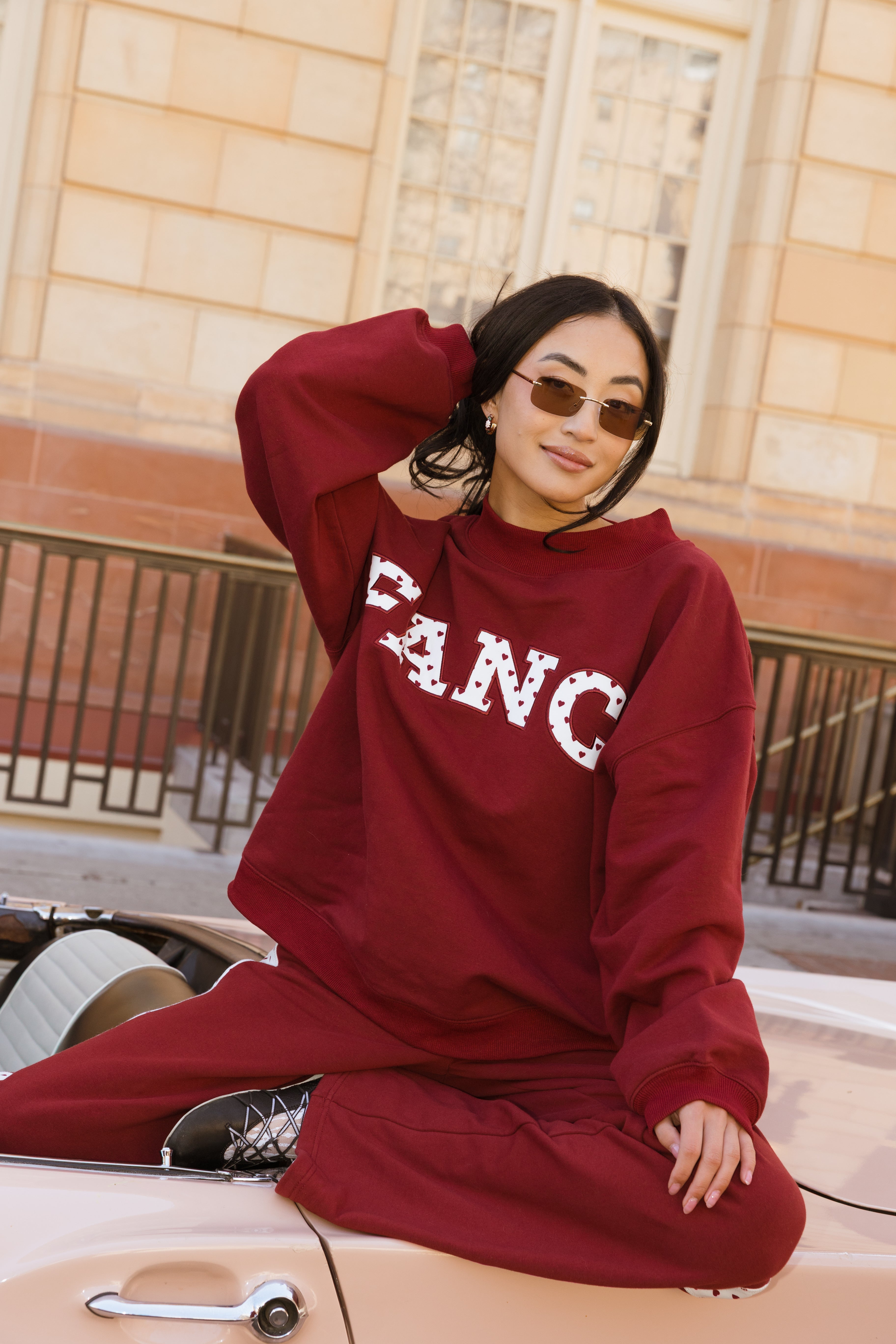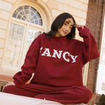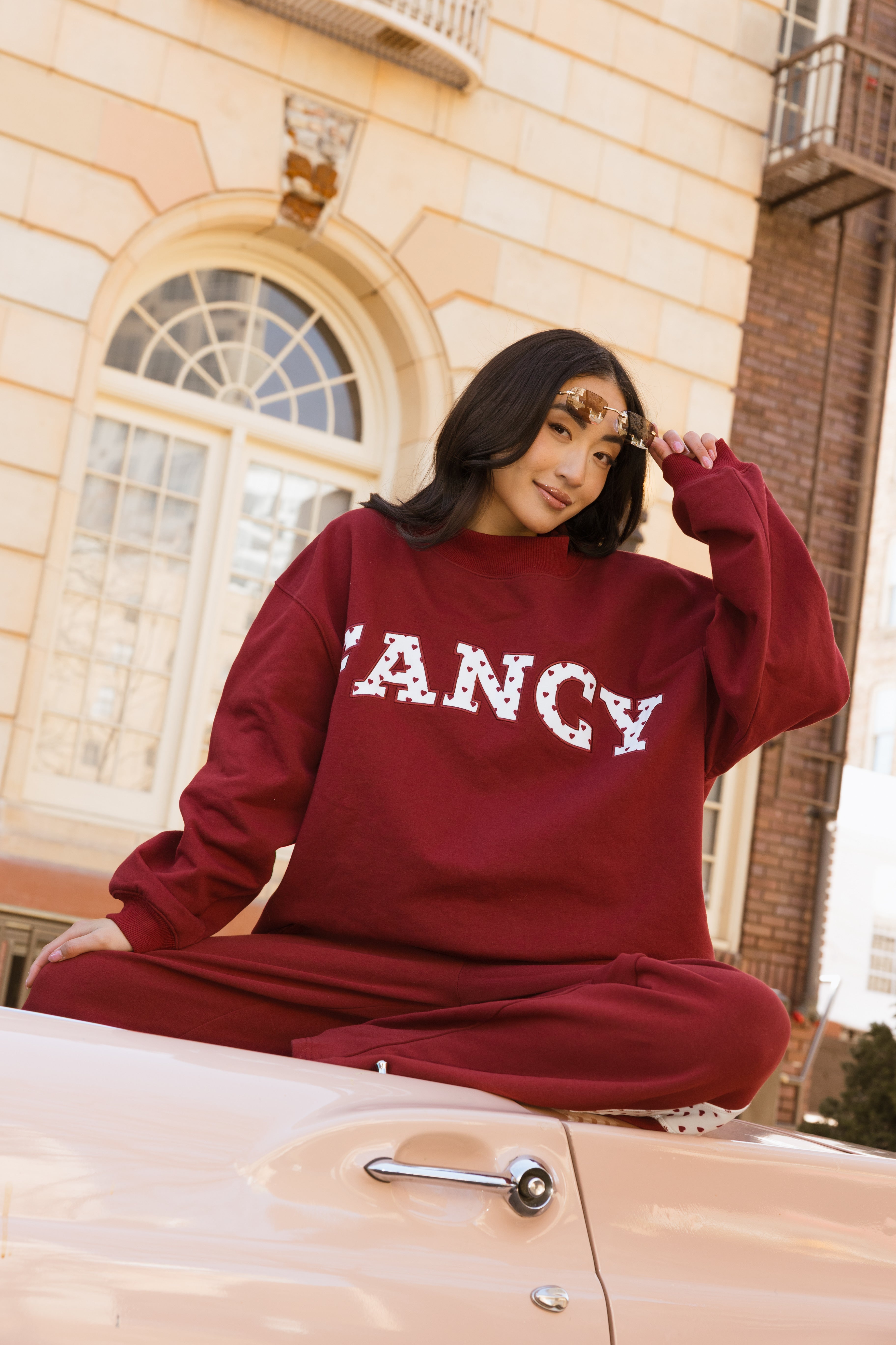 Fancy Oversized Fleece Heart Letters Mockneck - Black Cherry