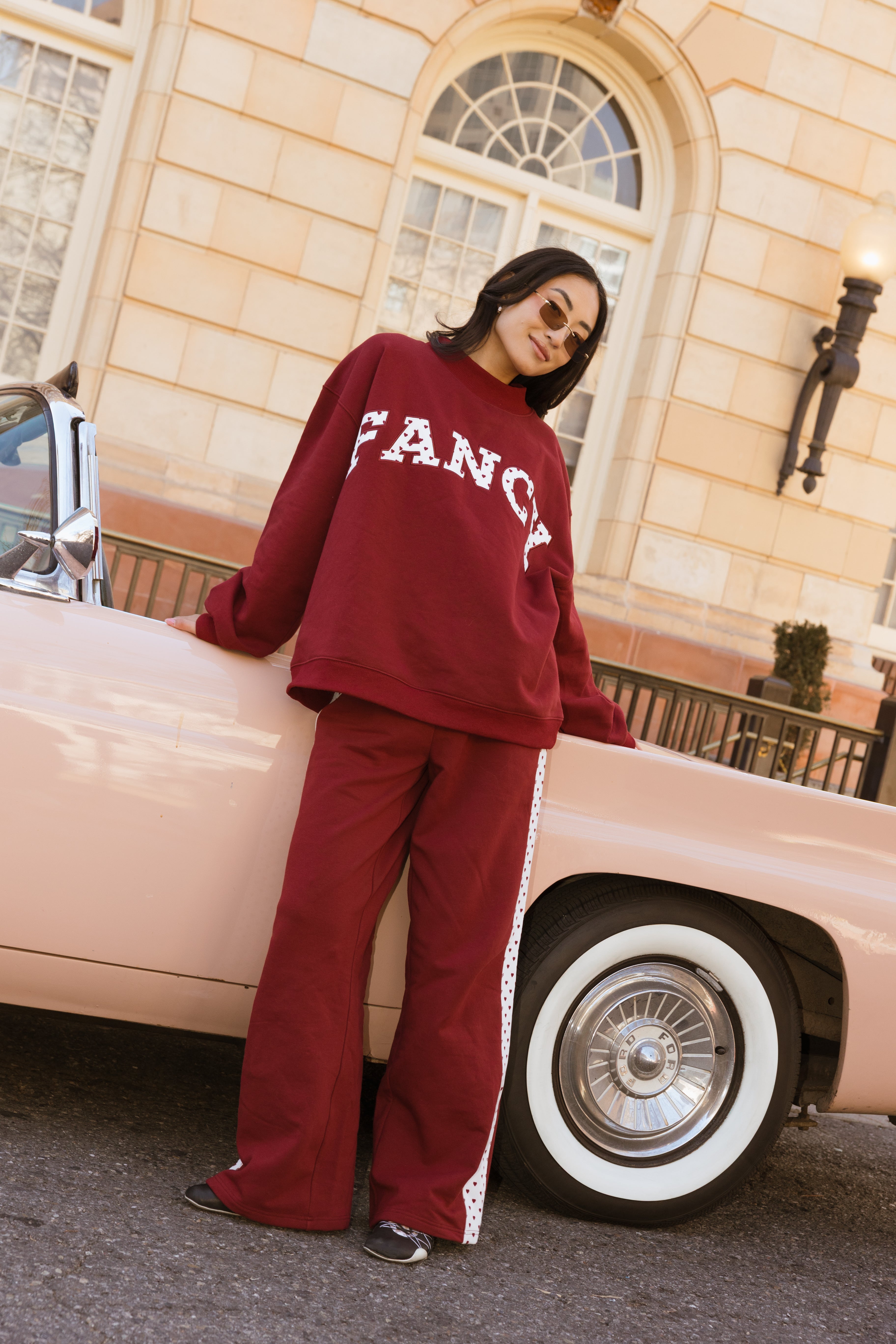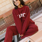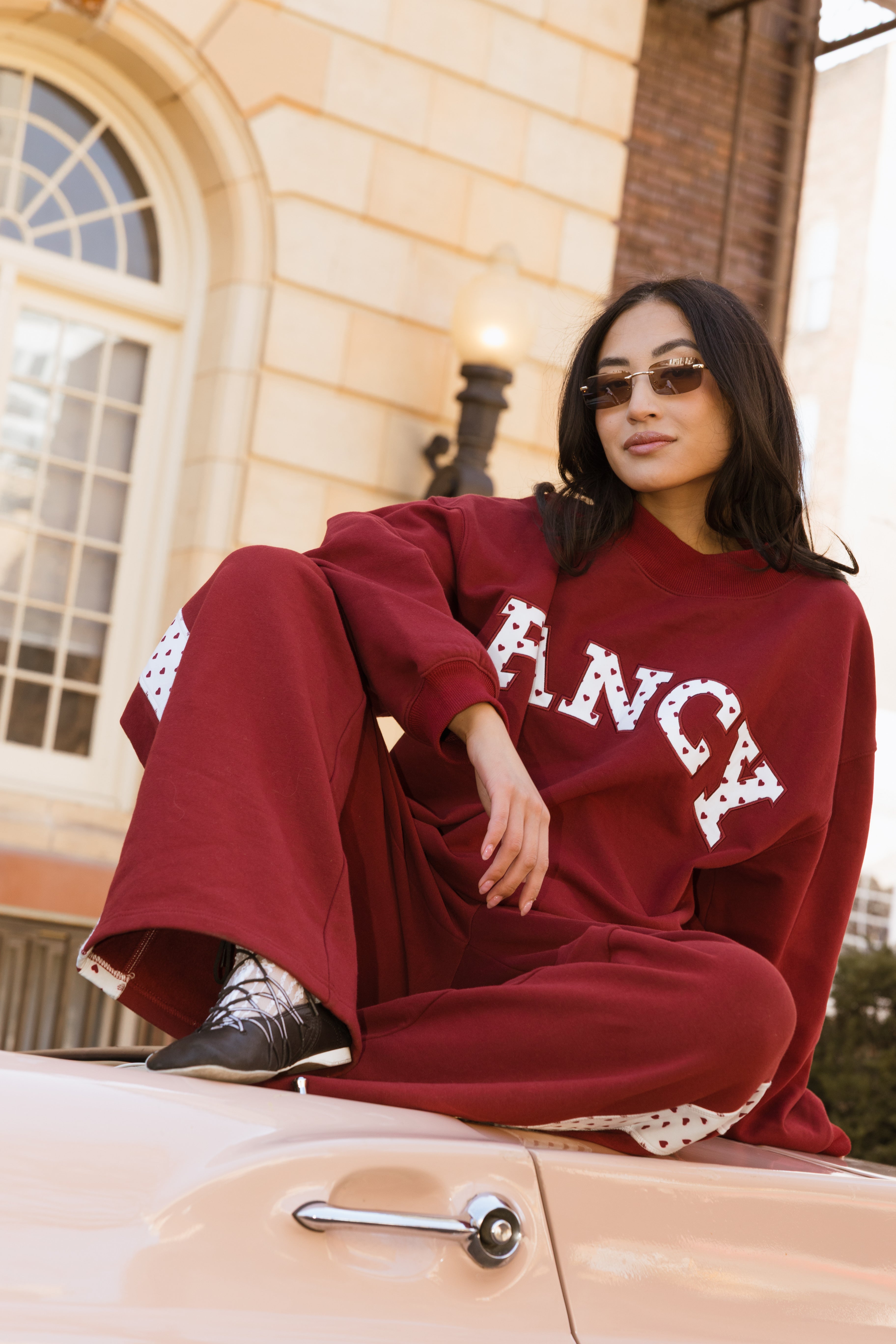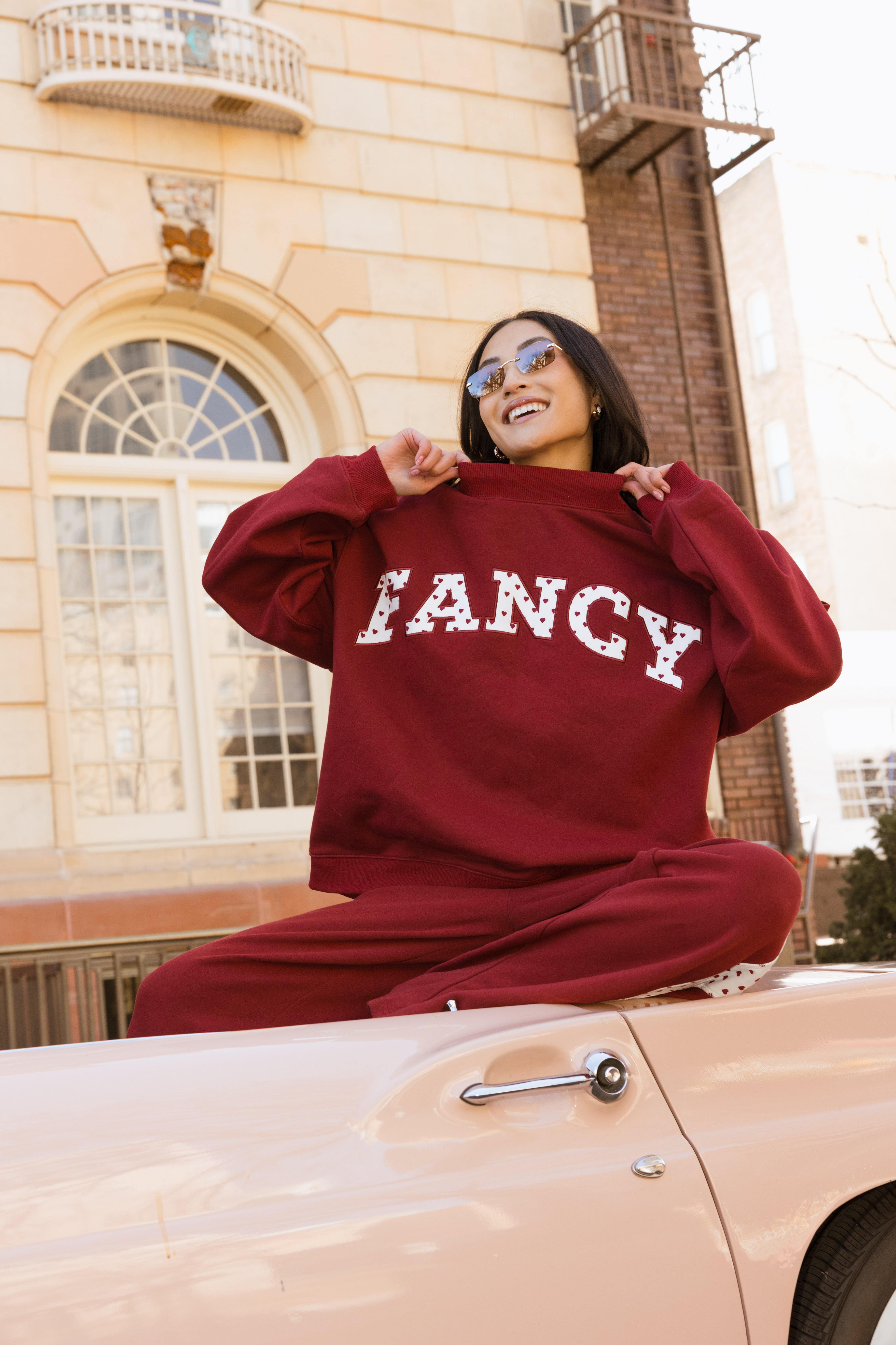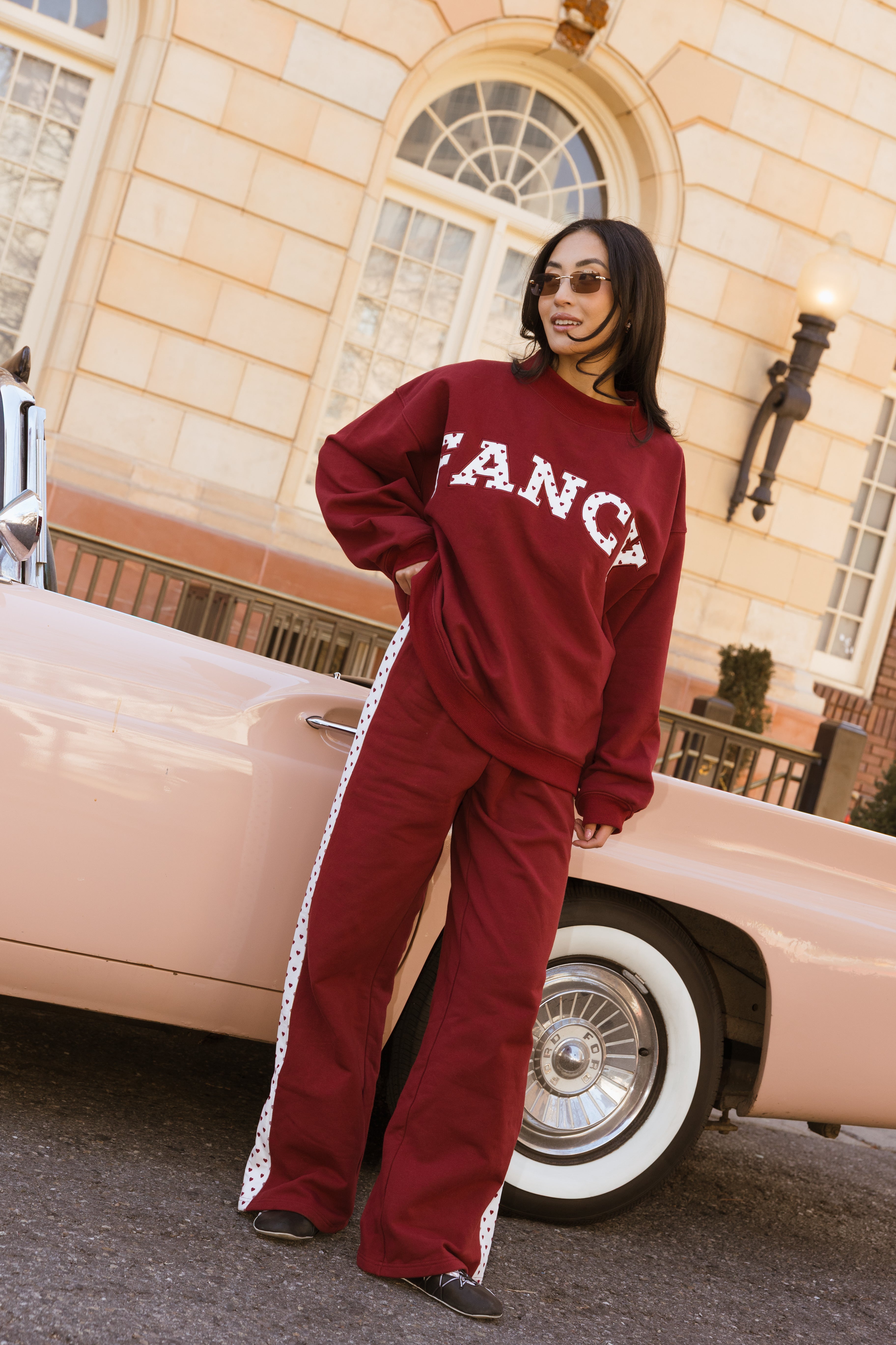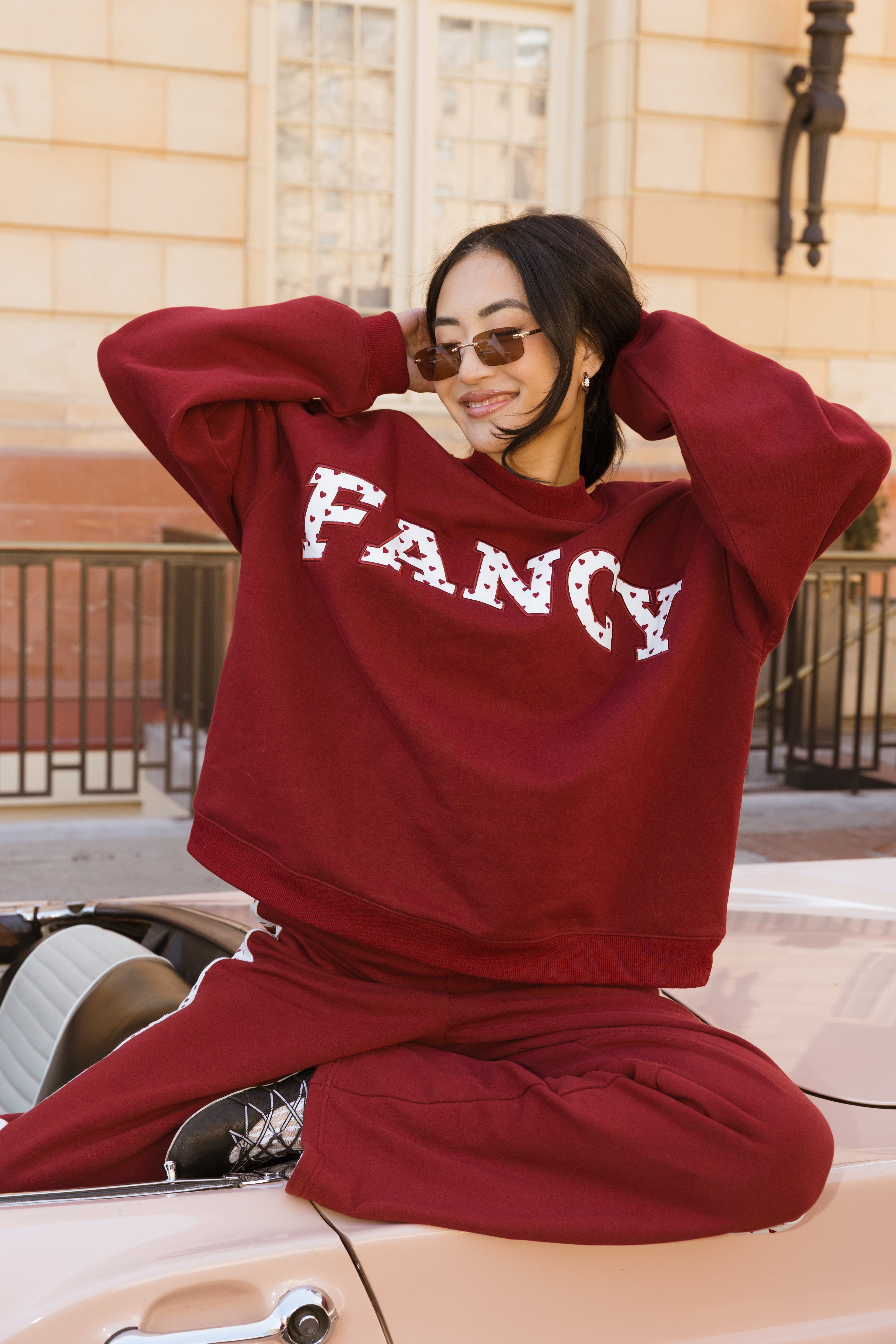 Fancy Oversized Fleece Heart Letters Mockneck - Black Cherry