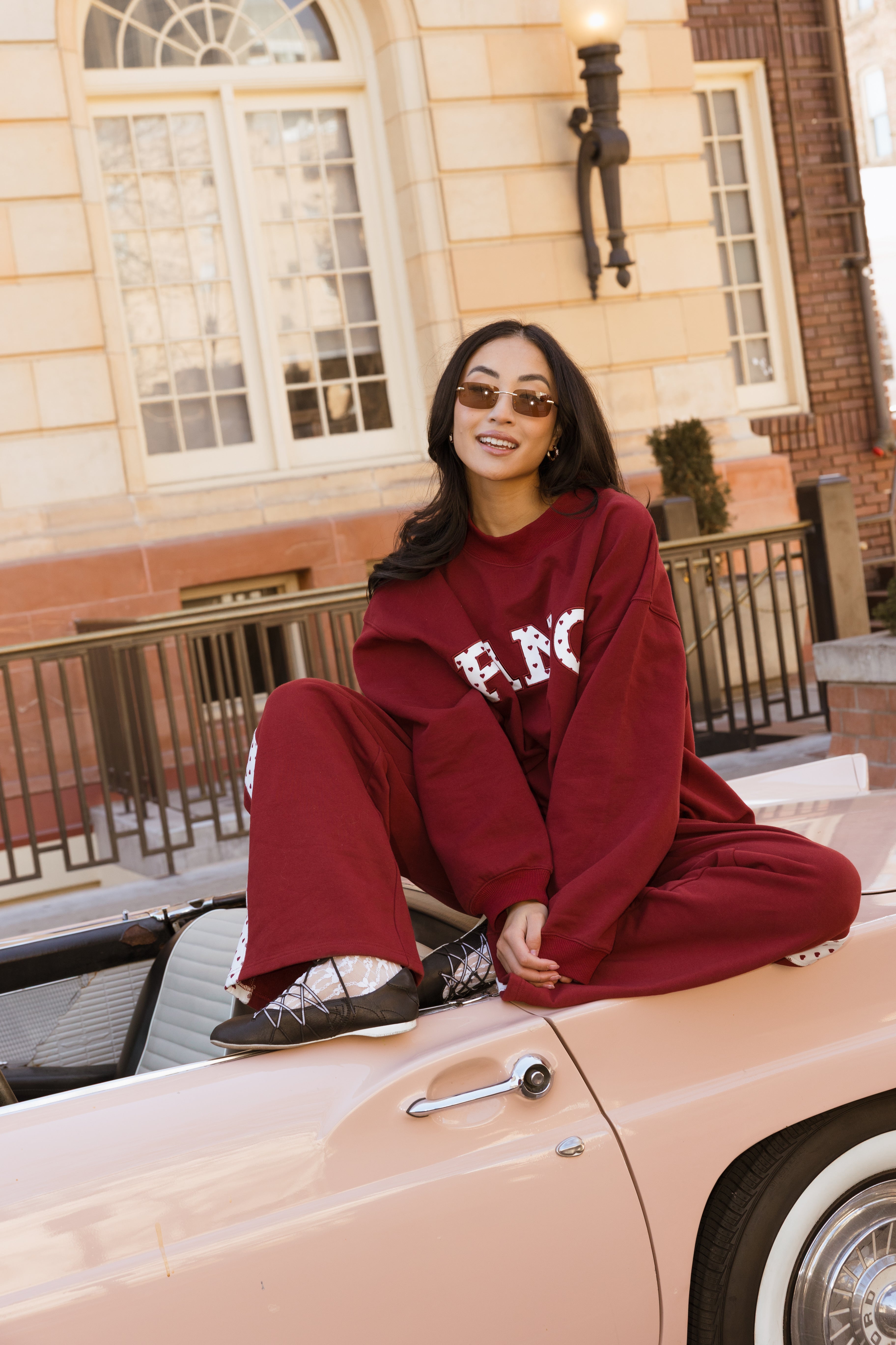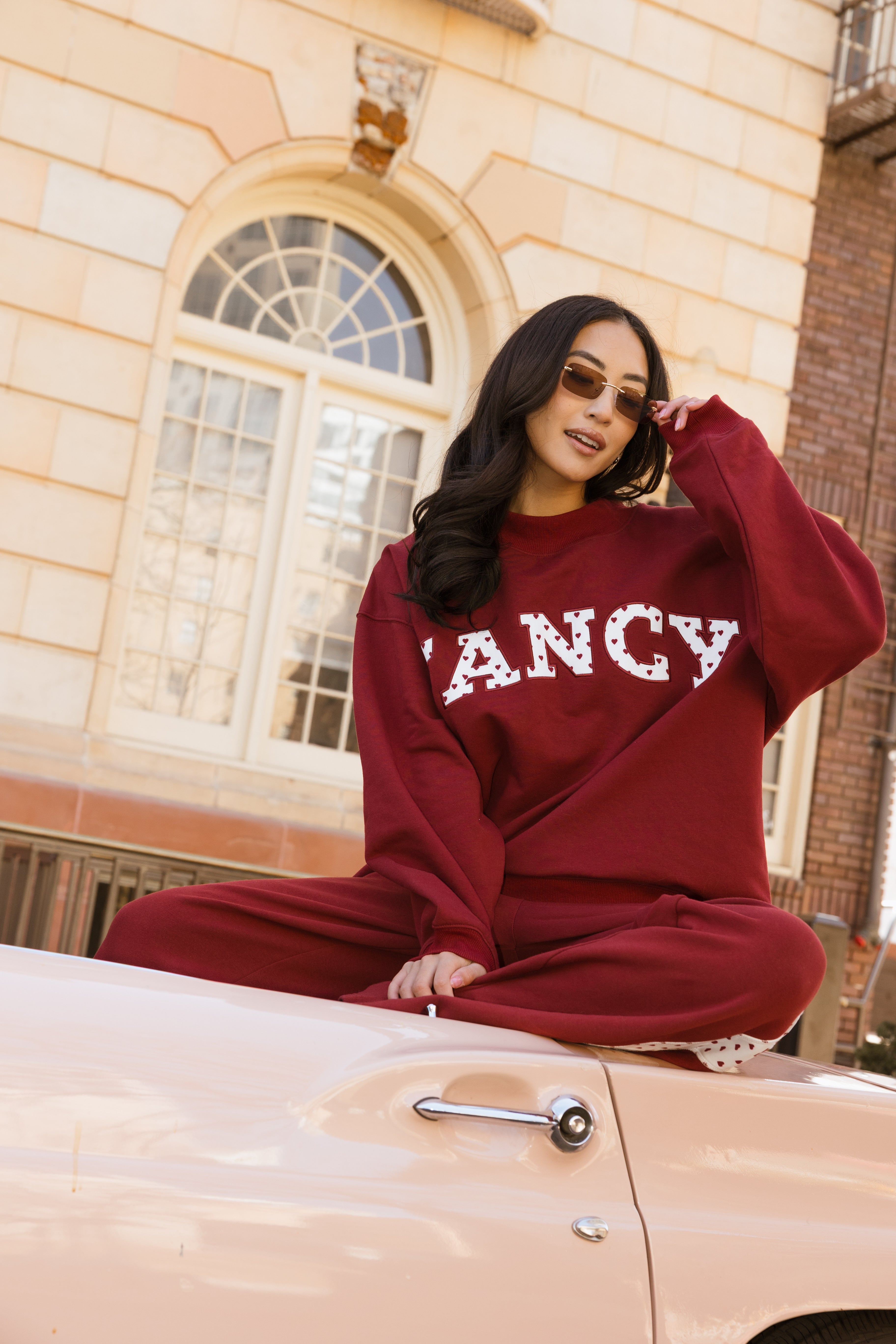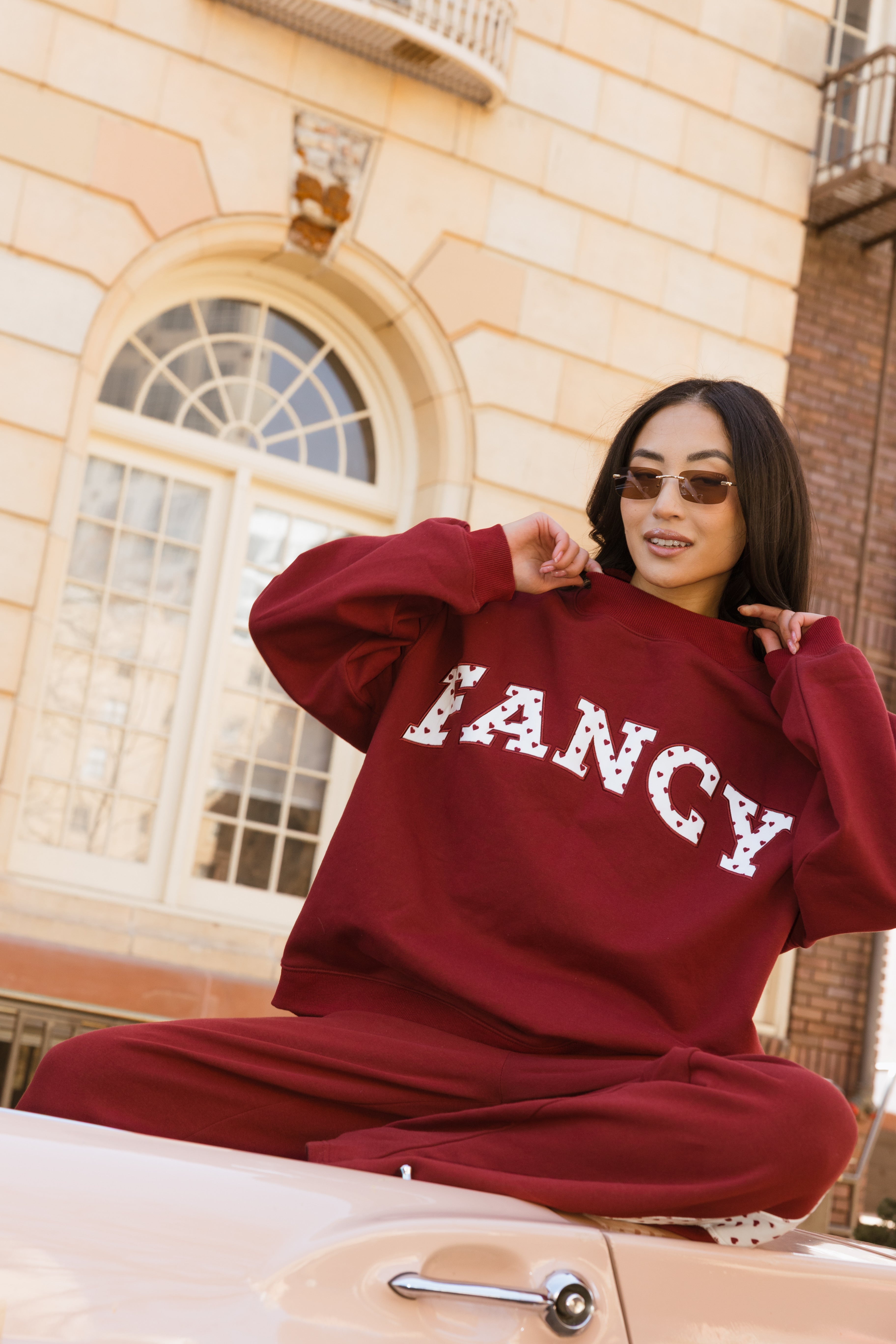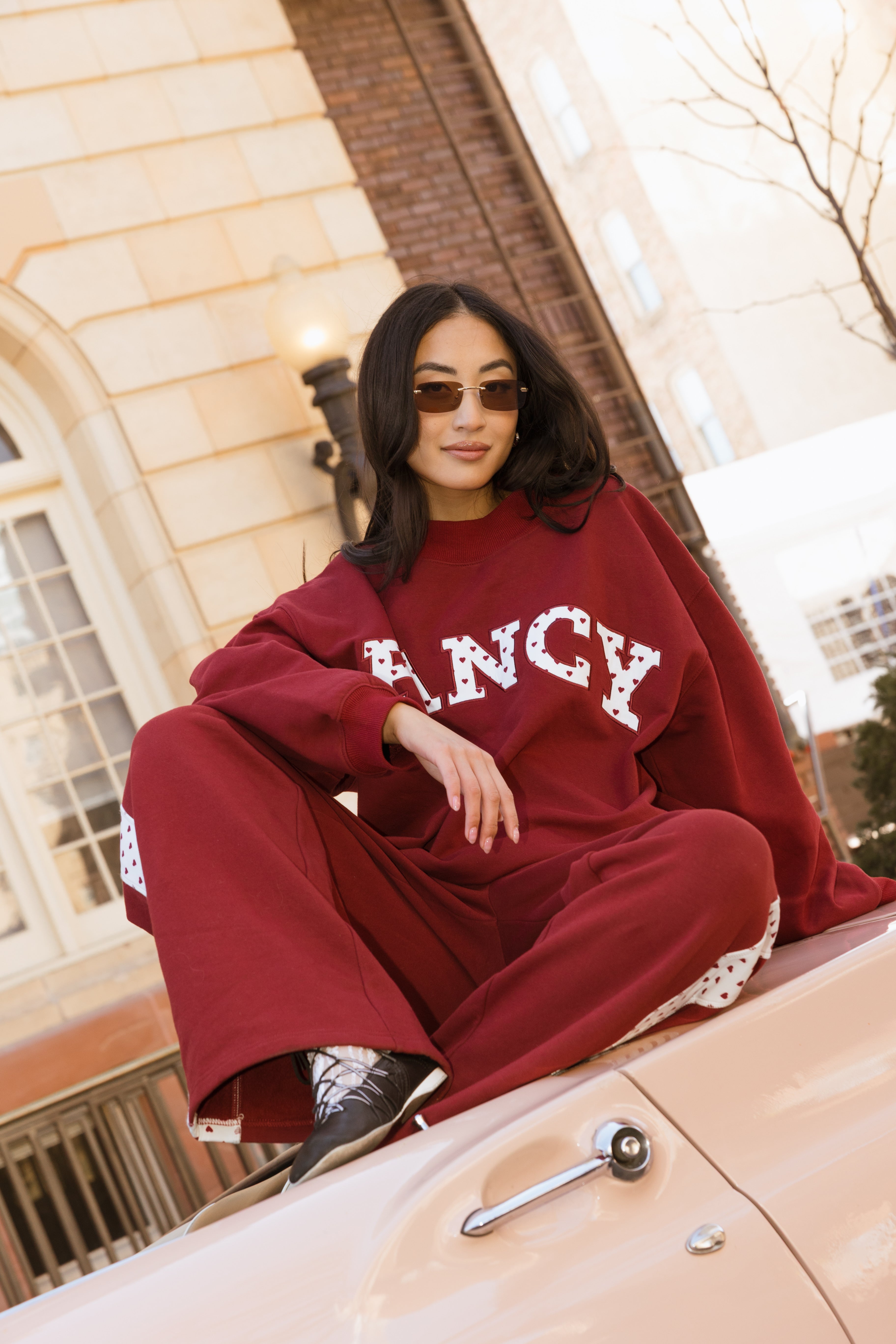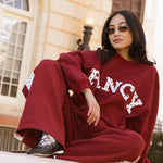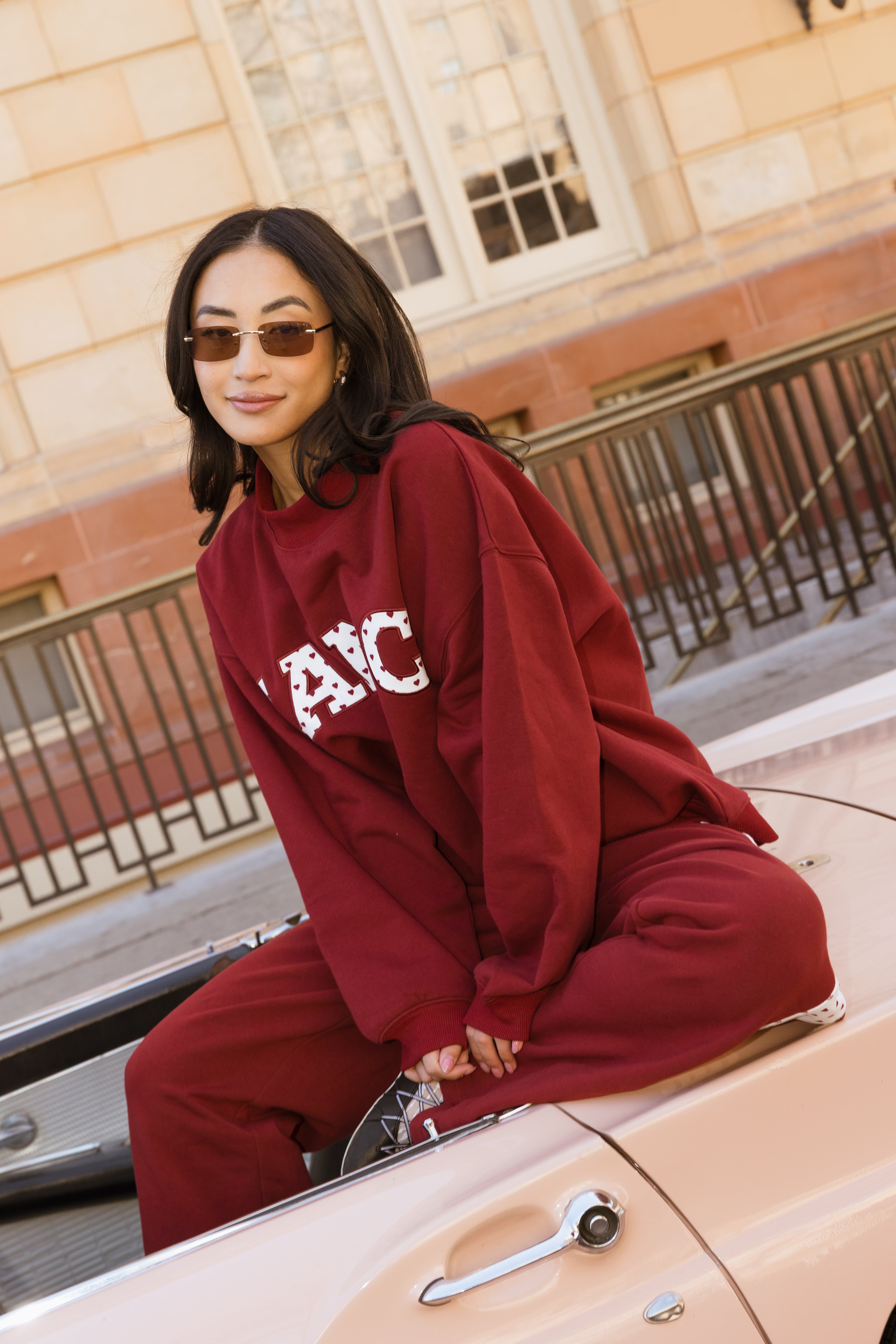 Fancy Oversized Fleece Heart Letters Mockneck - Black Cherry