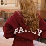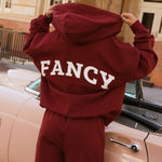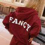 Introducing our newest essential—the Fancy Split Zip Hoodie. This modern, timeless piece transitions seamlessly through every season with its innovative double zipper design, allowing you to customize your coverage and ventilation. The "Fancy" emblem graces the chest while our signature branding adorns the back, creating a look that's distinctly you. Versatile, stylish, and built for year-round wear, this hoodie becomes the foundation of effortless layering.