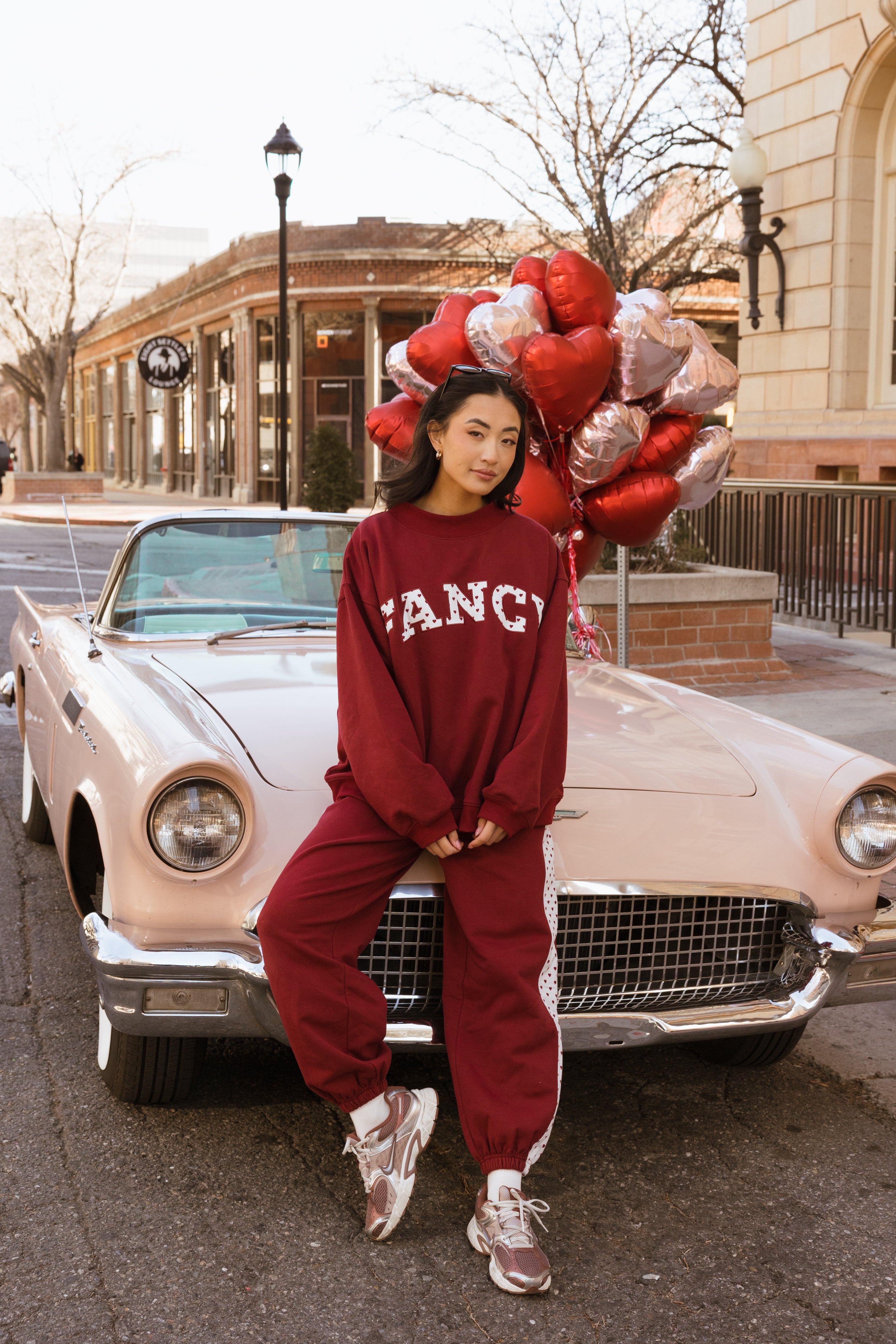 Fancy Fleece Heartline Cuffed Leg Sweatpants – Black Cherry