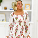 Aislinn Smocked Mini Dress - White/Pink Floral