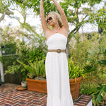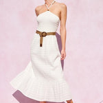 Elevate your summer wardrobe with our Arden Belted Midi Dress. The halter neckline and bear ruffle sleeves add a charming touch, while the waist belt accentuates your figure. Perfect for any occasion, this midi dress will keep you looking stylish and comfortable all day long.