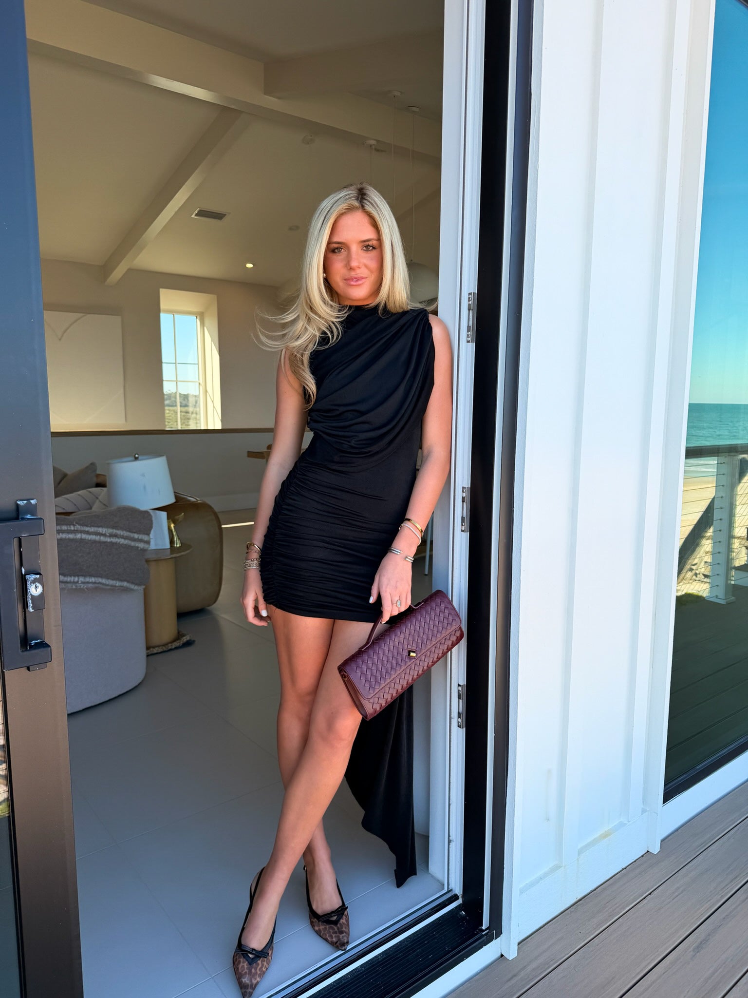 Ariana Ruched Mini Dress - Black